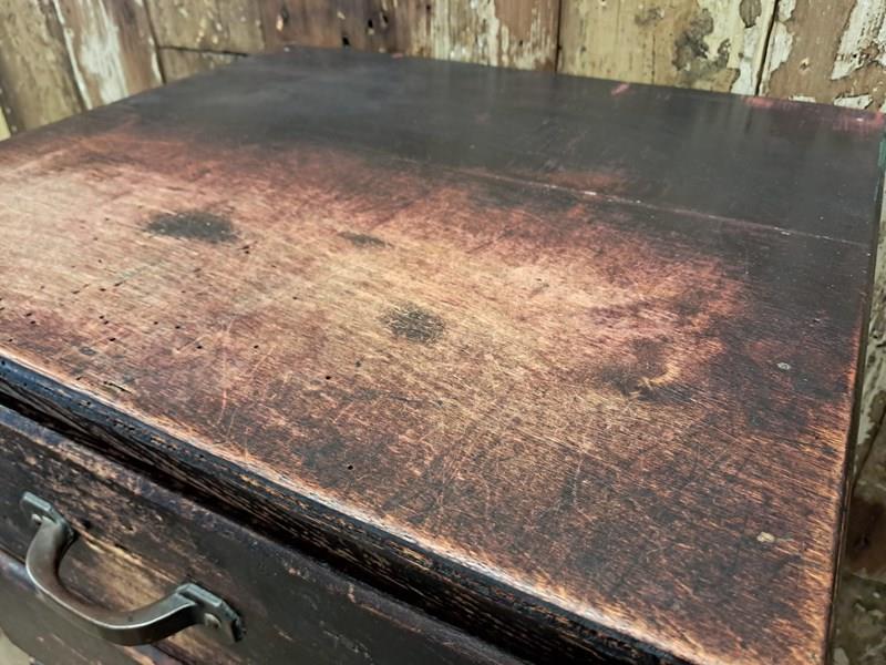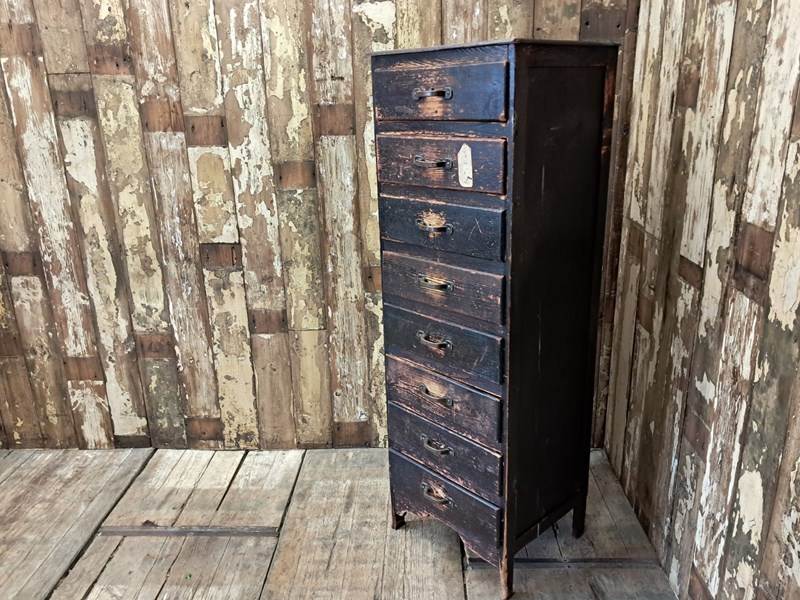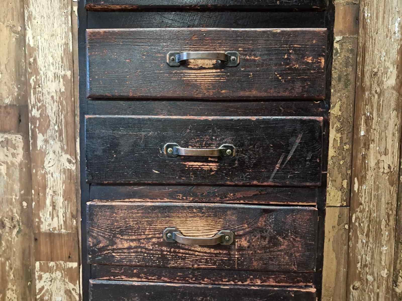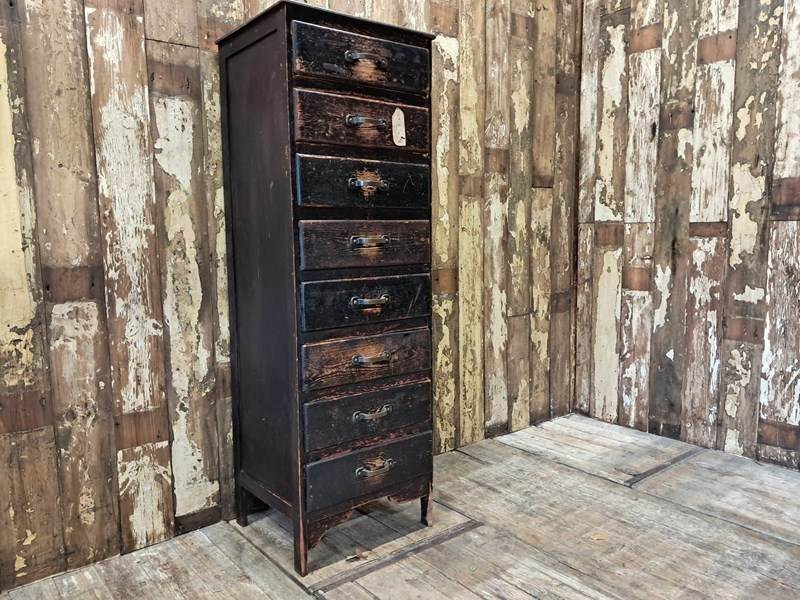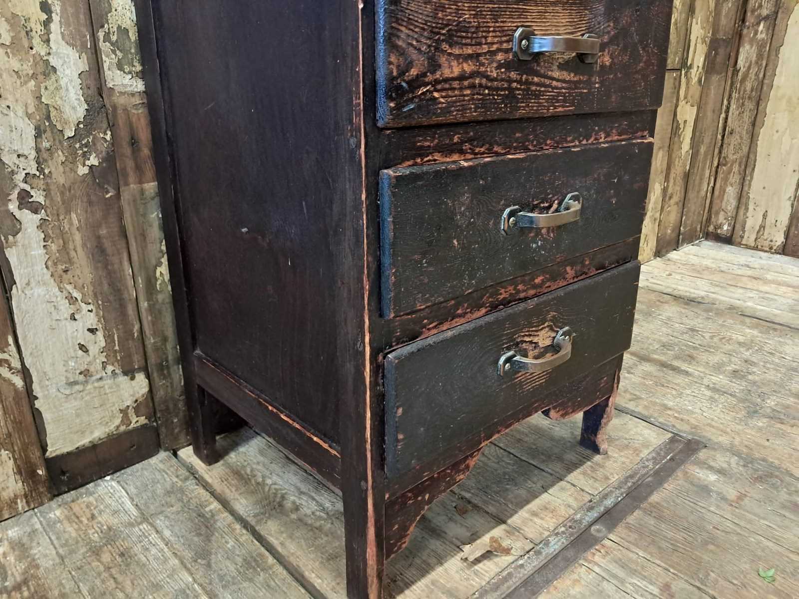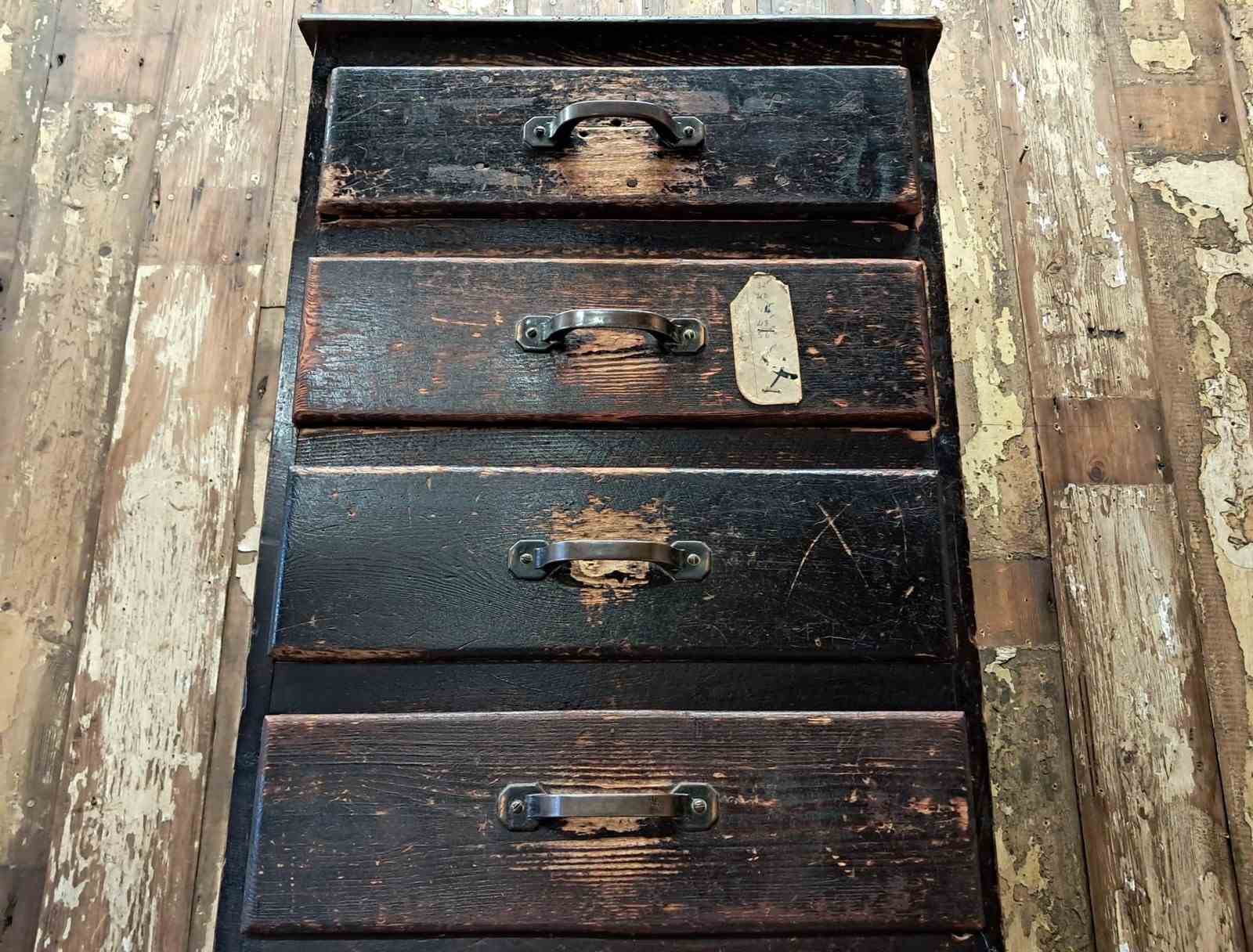 A very simple design with 8 generous drawers and a lovely, incredibly well worn ebonised patina.
