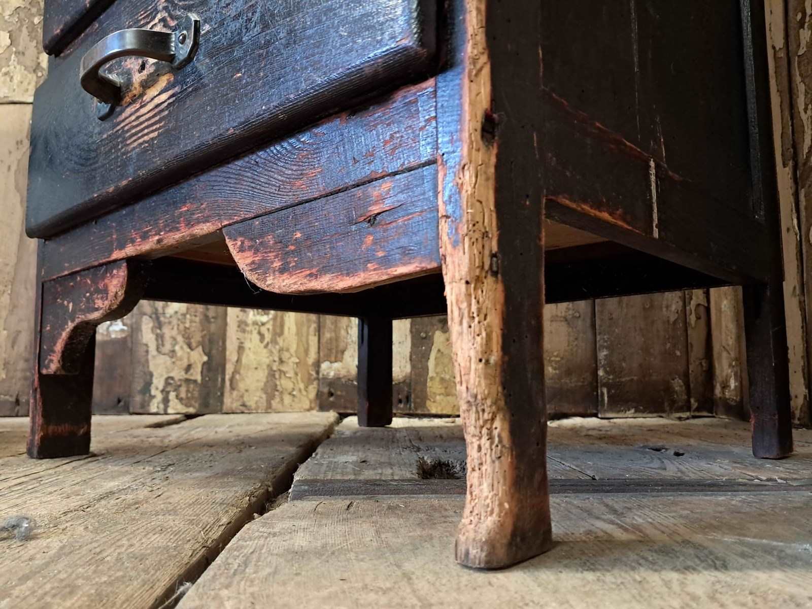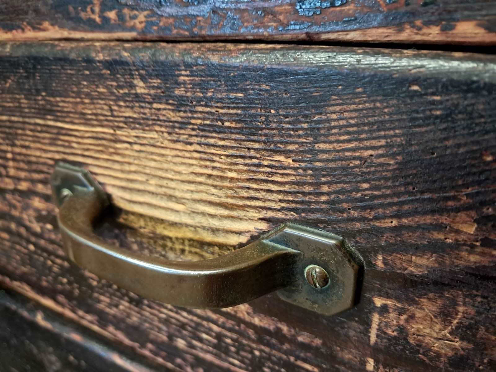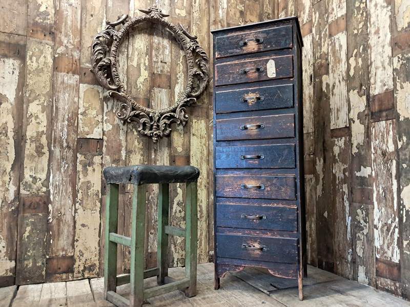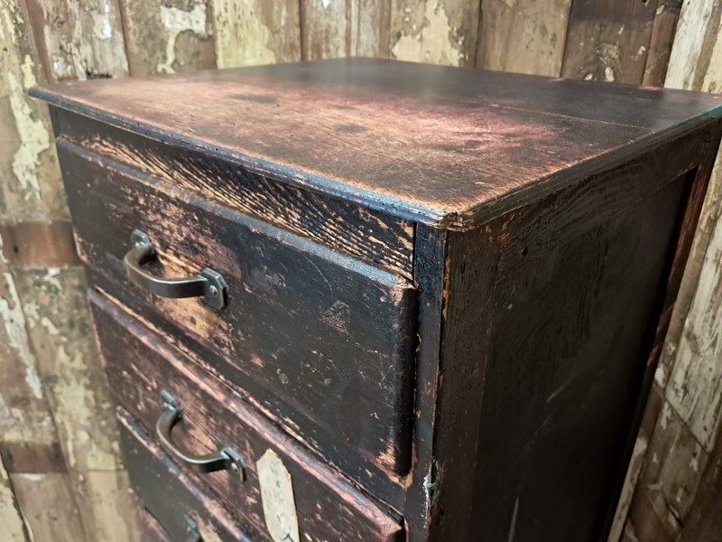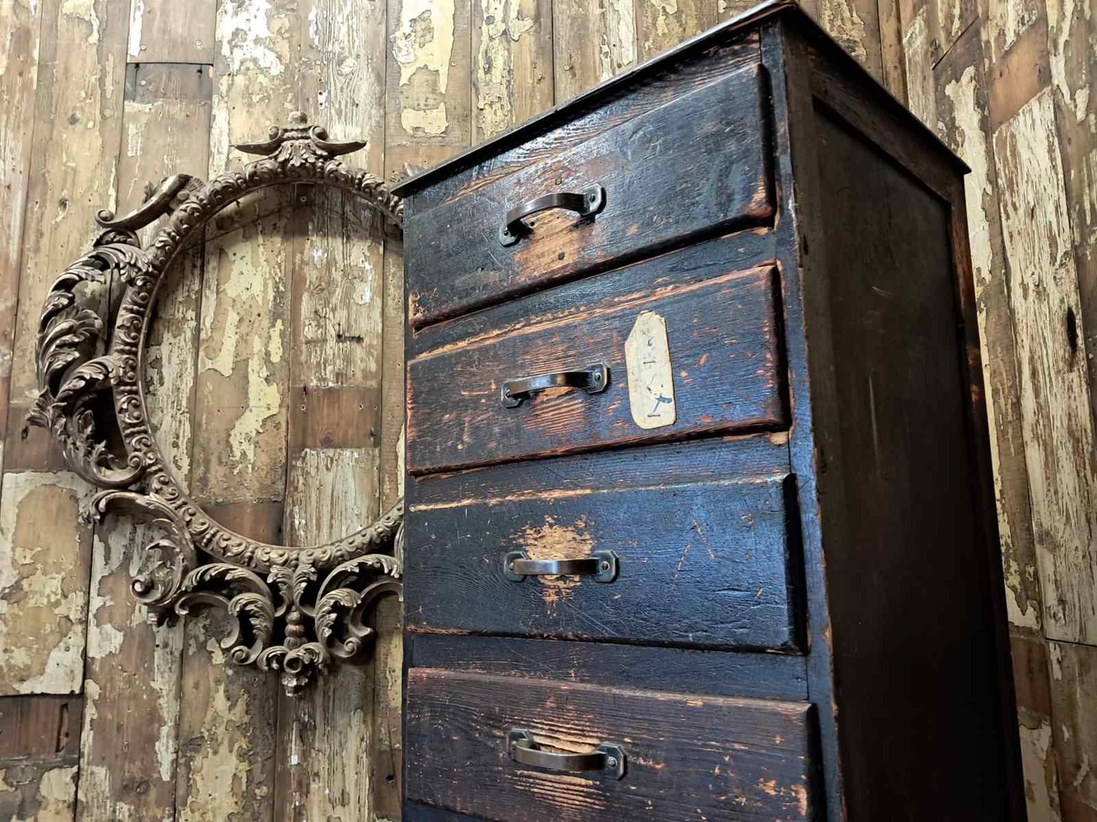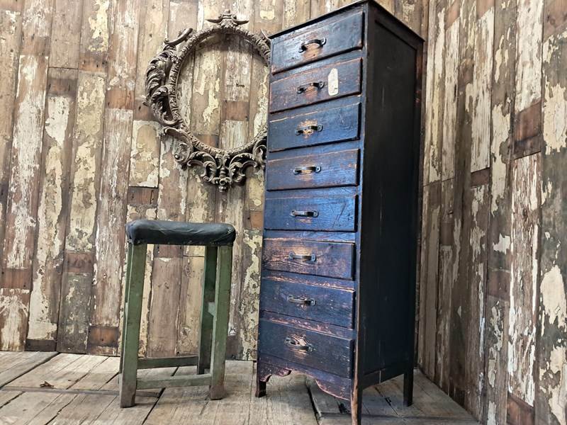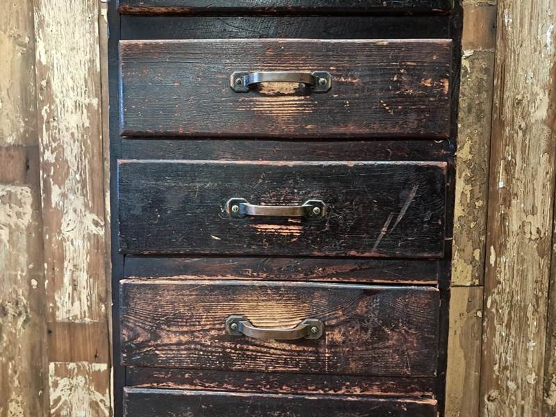 A very simple design with 8 generous drawers and a lovely, incredibly well worn ebonised patina.