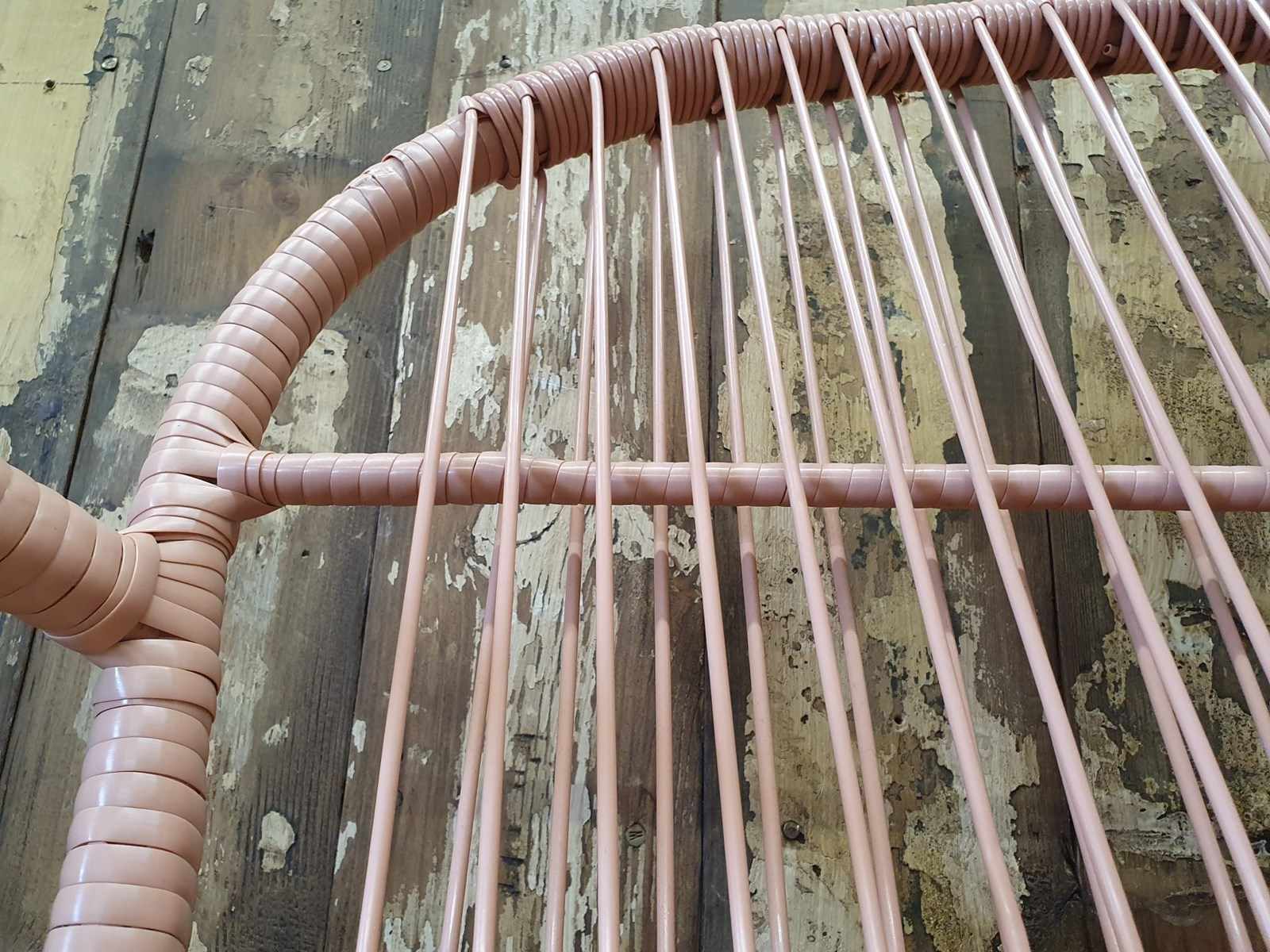Finished in a lovely powder pink with matching seat cushion pad.