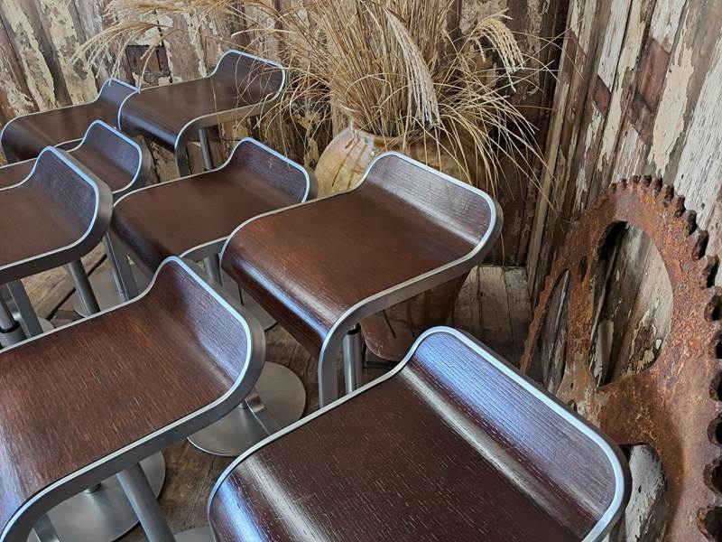 A collection of vintage Lapalma Lem bar stools. An iconic, award winning design known for its sleek, minimalist silhouette and exceptional comfort.