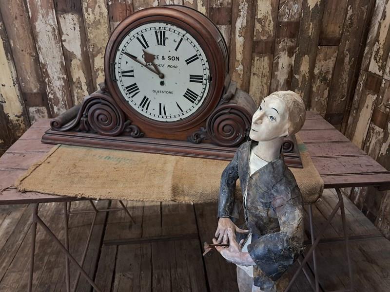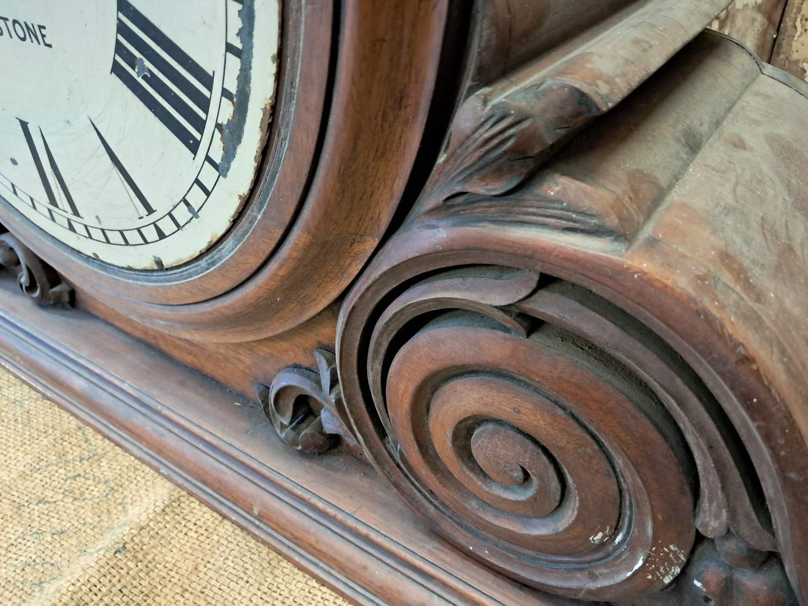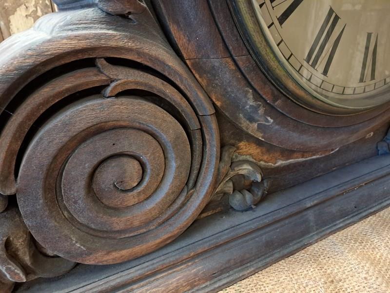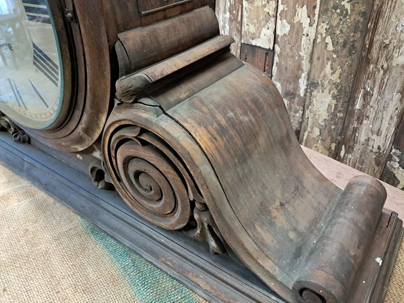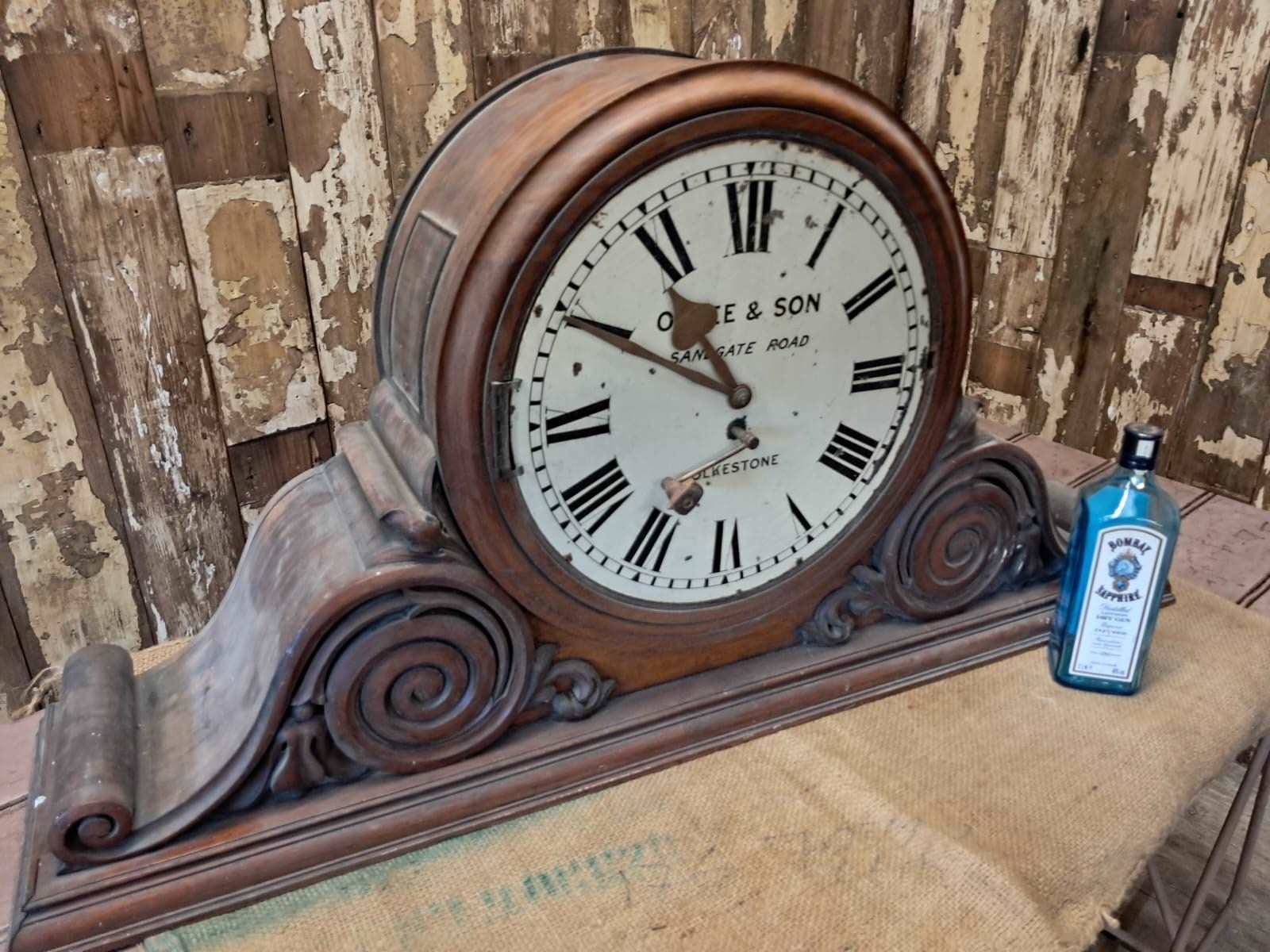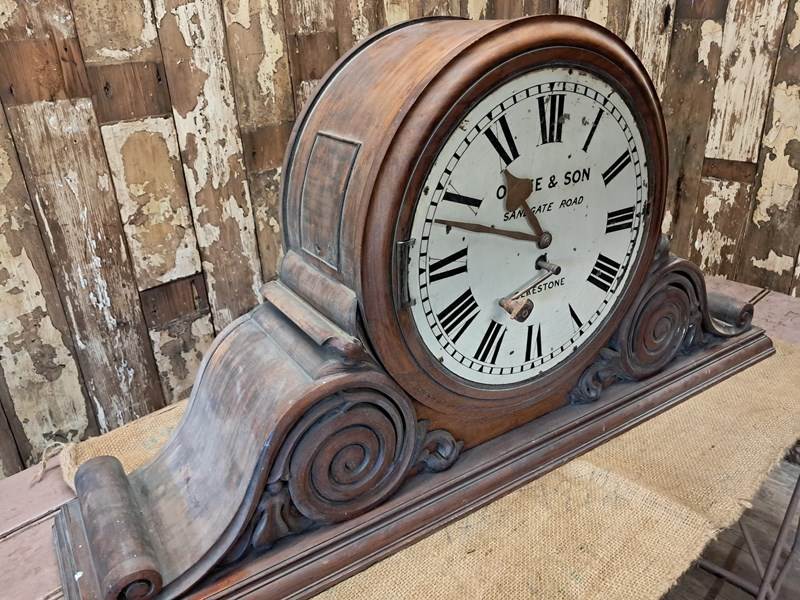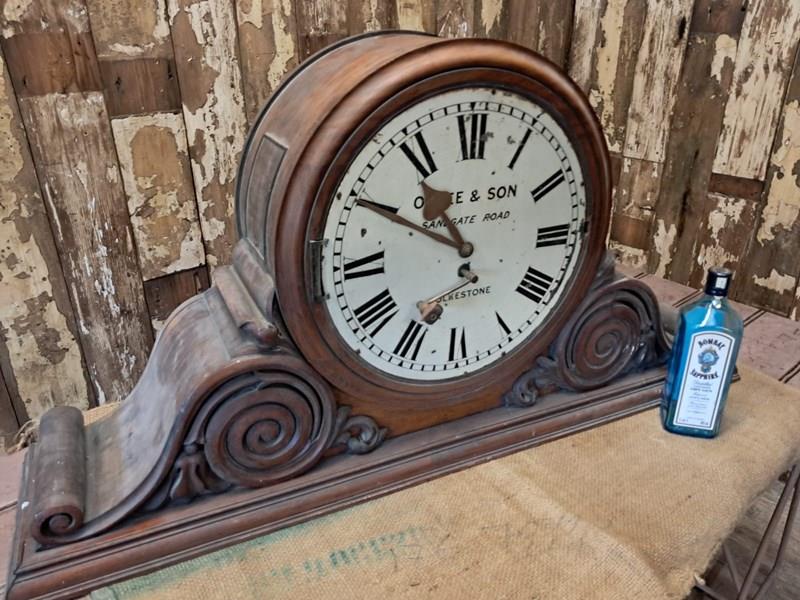 This double-sided clock is made from mahogany with wonderful decorative carved detail.
