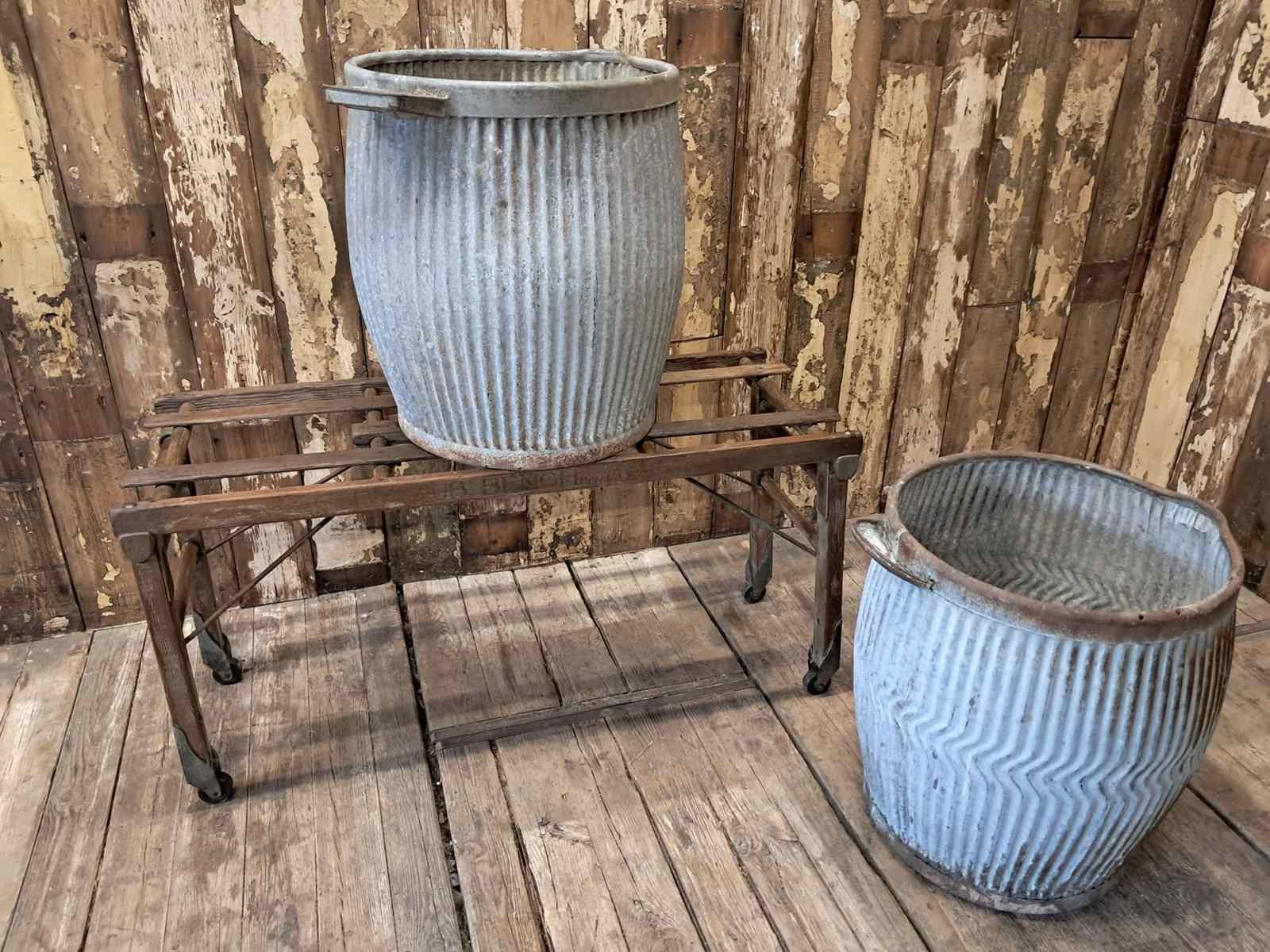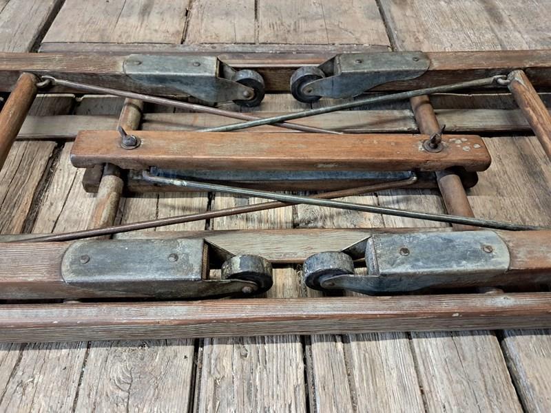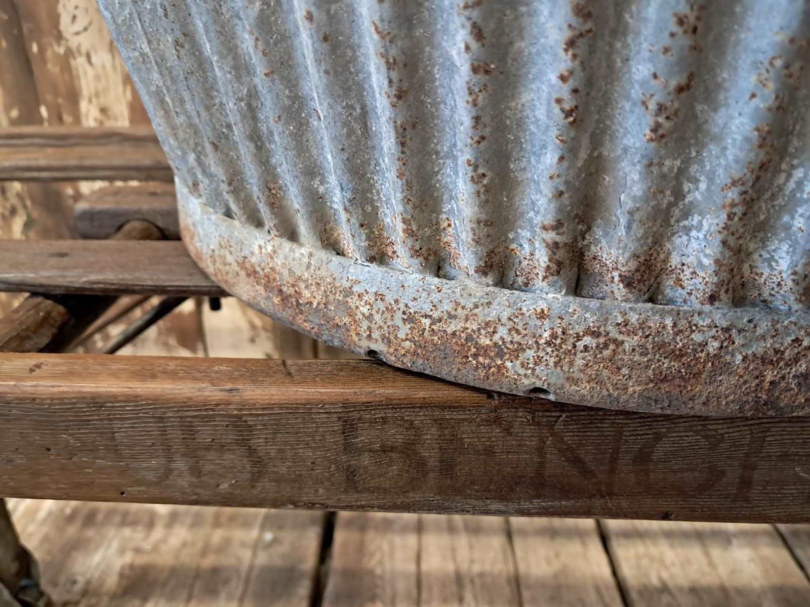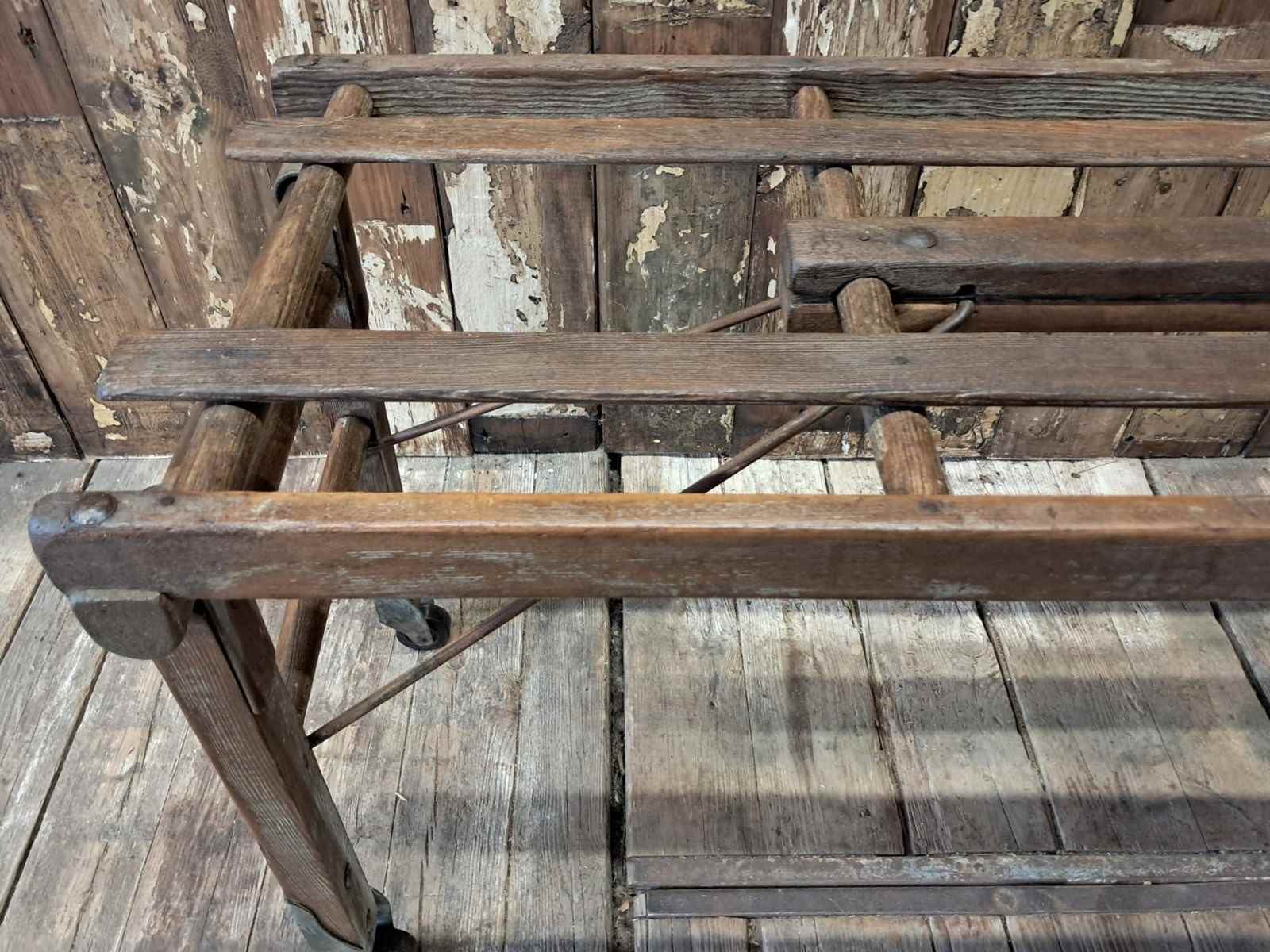 Original castors give ease of movement and storage is made easy as it folds flat – complete with original branding ‘BT Tub Bench patented 1923’.