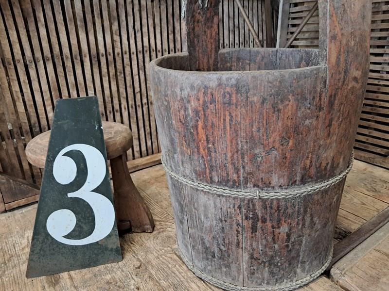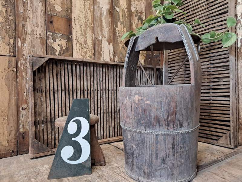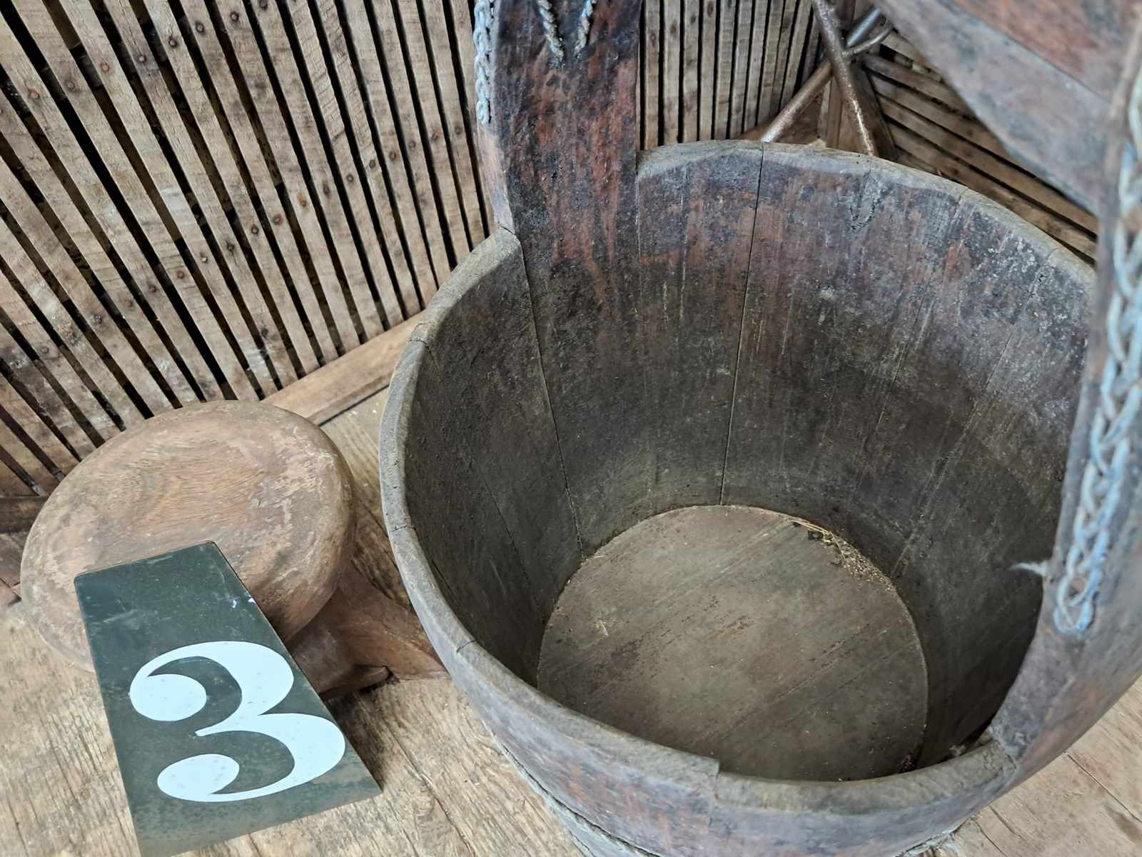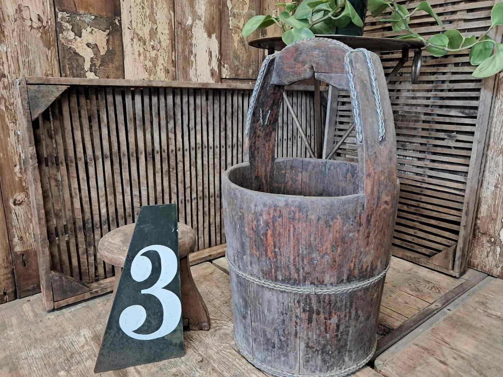 An antique Chinese, wooden well bucket with handle circa early 20th century.