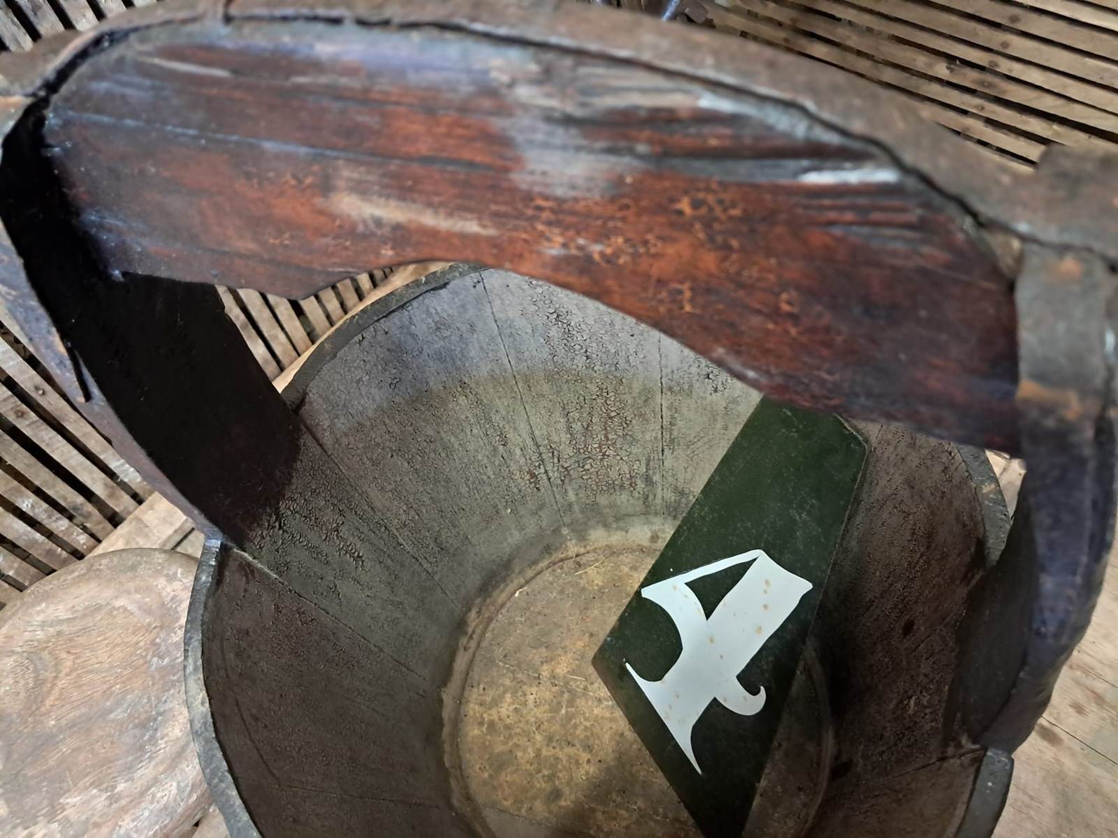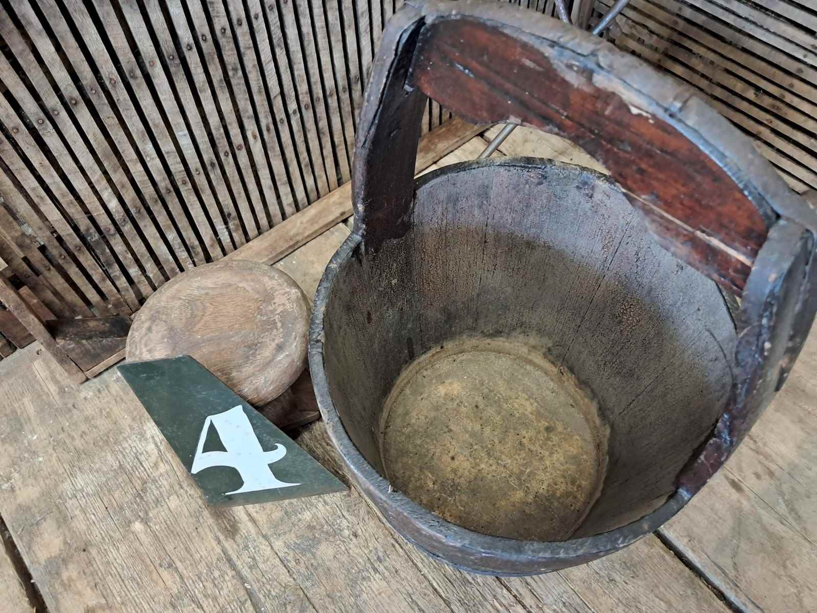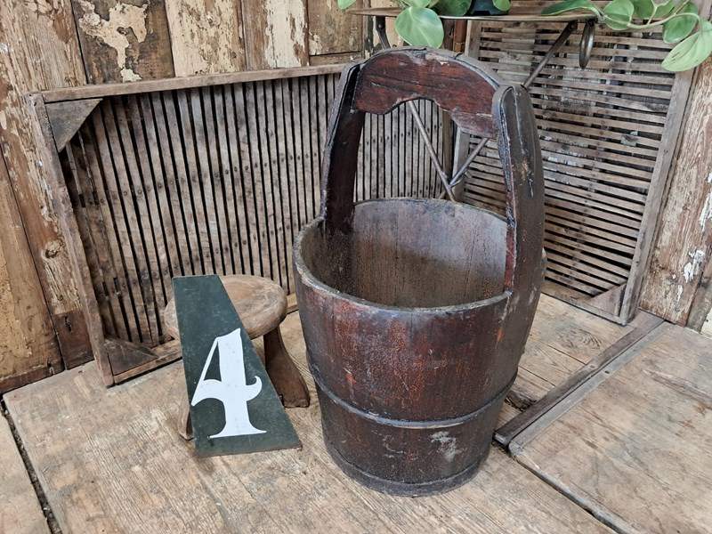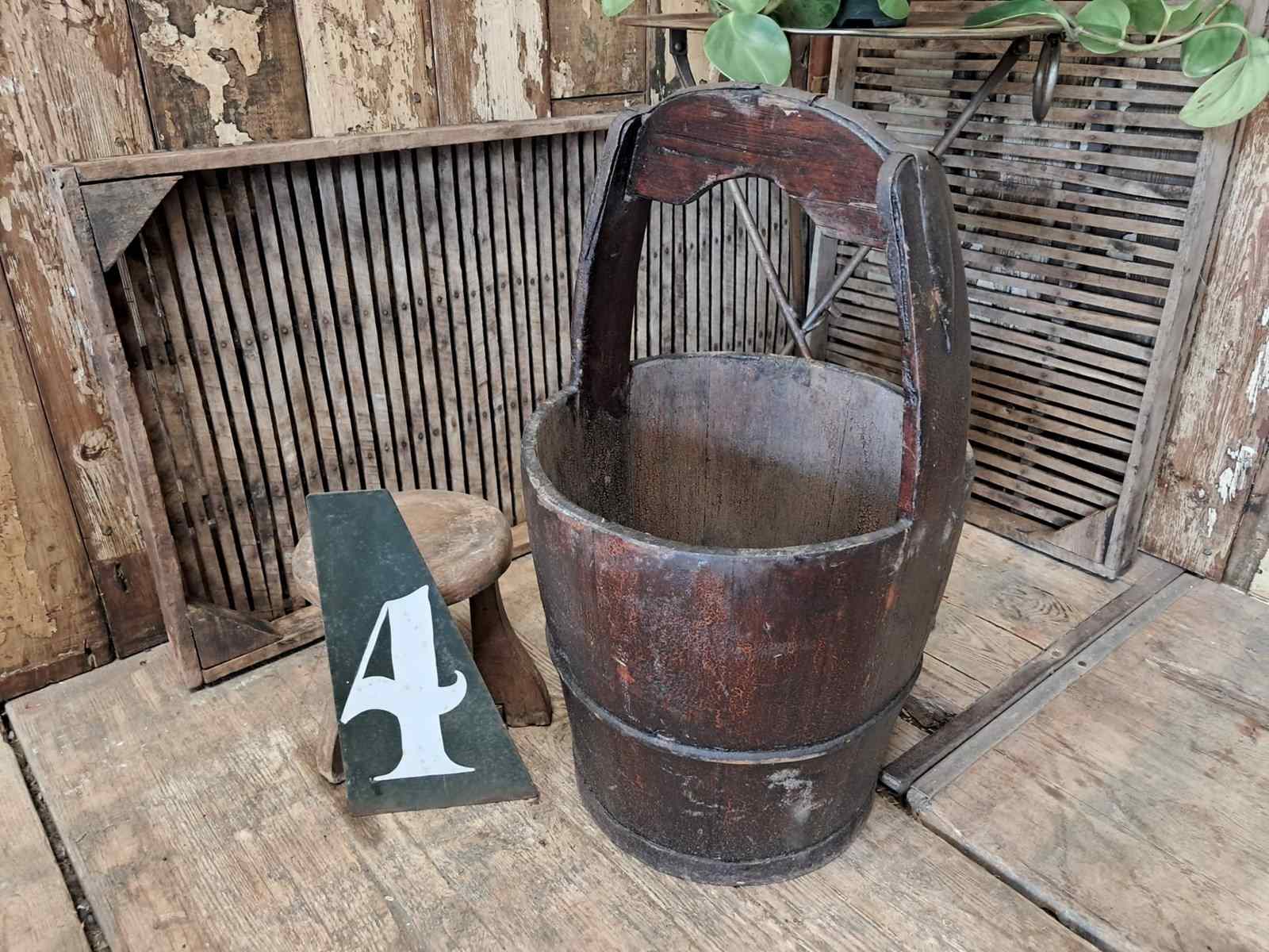An antique Chinese, wooden well bucket with handle circa early 20th century.