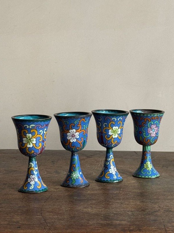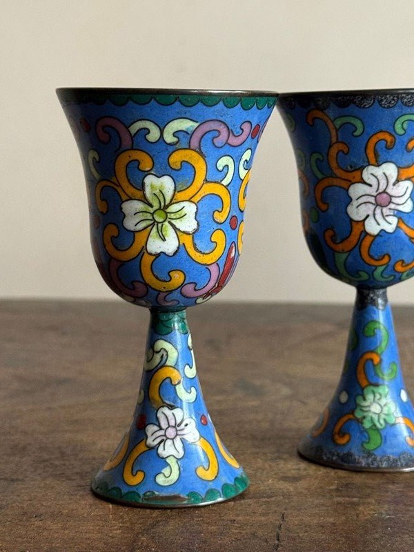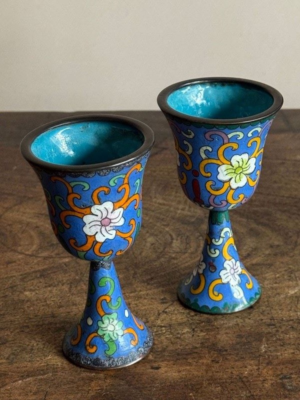 Cloisonné Enamel Ewes And Stem Cups