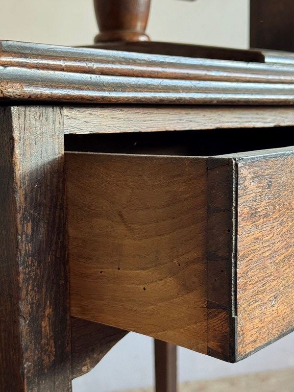 A useful, well drawn side table with single drawer and press top, originally used for books or maps etc. The screw and press frame is made from fine grained walnut. Some minor losses to the ebony stringing around the drawer.