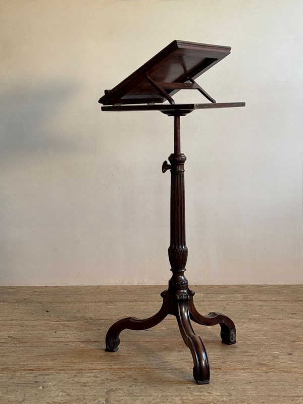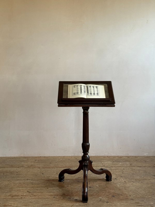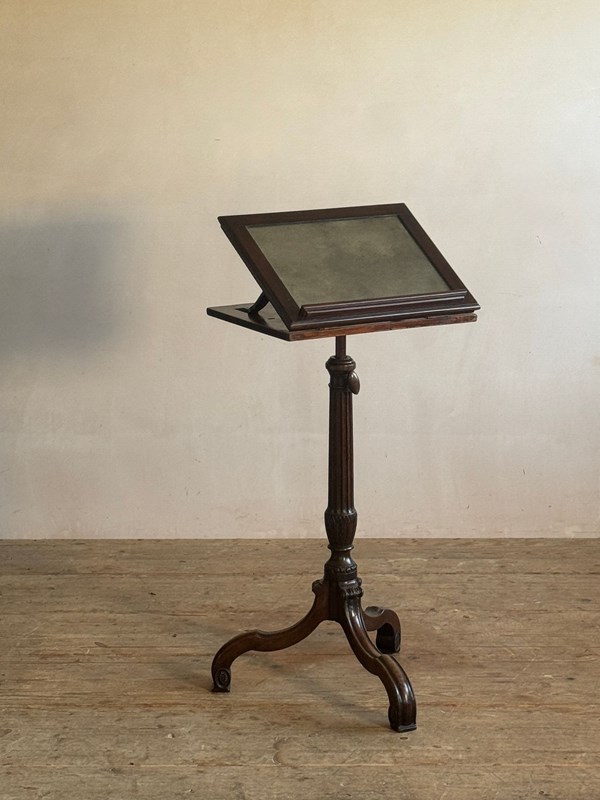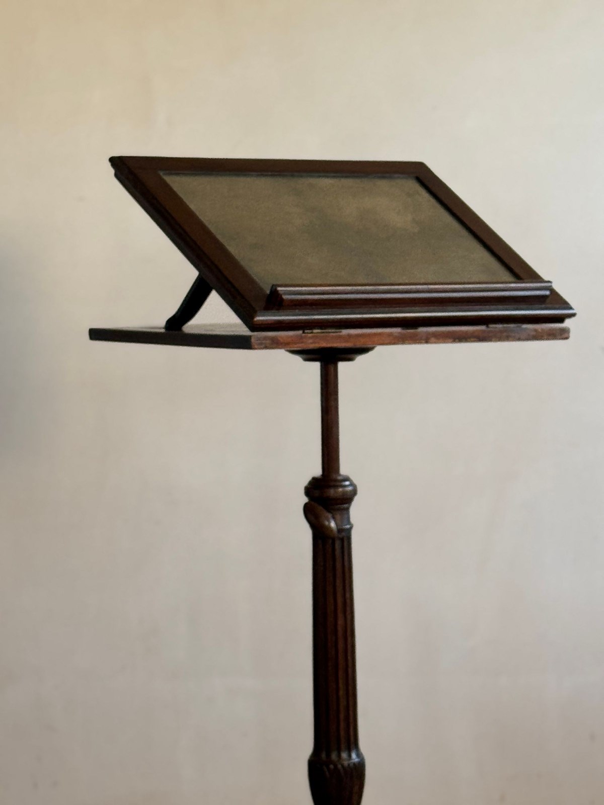 18thC mahogany reading or music stand. In the Hepplewhite / Adam manner. With an unusual original mirrored top.
