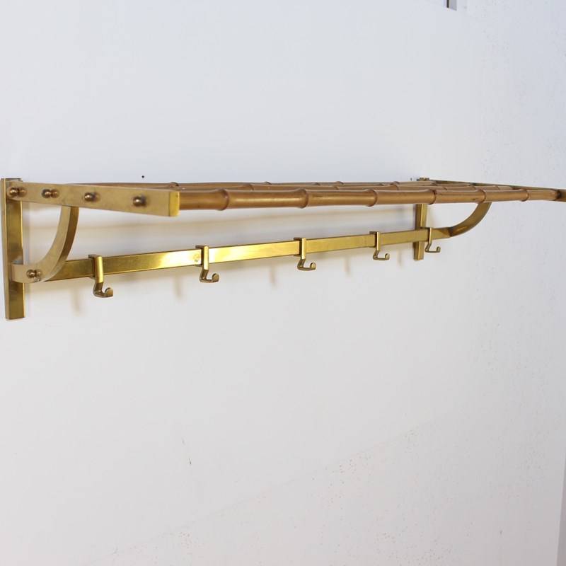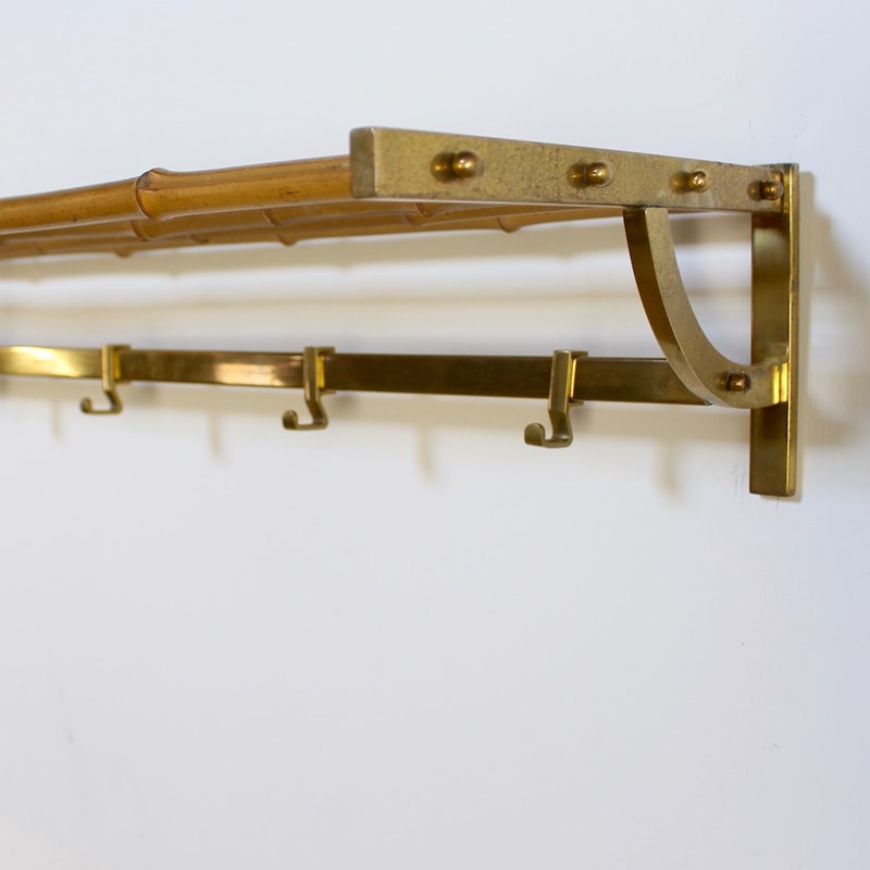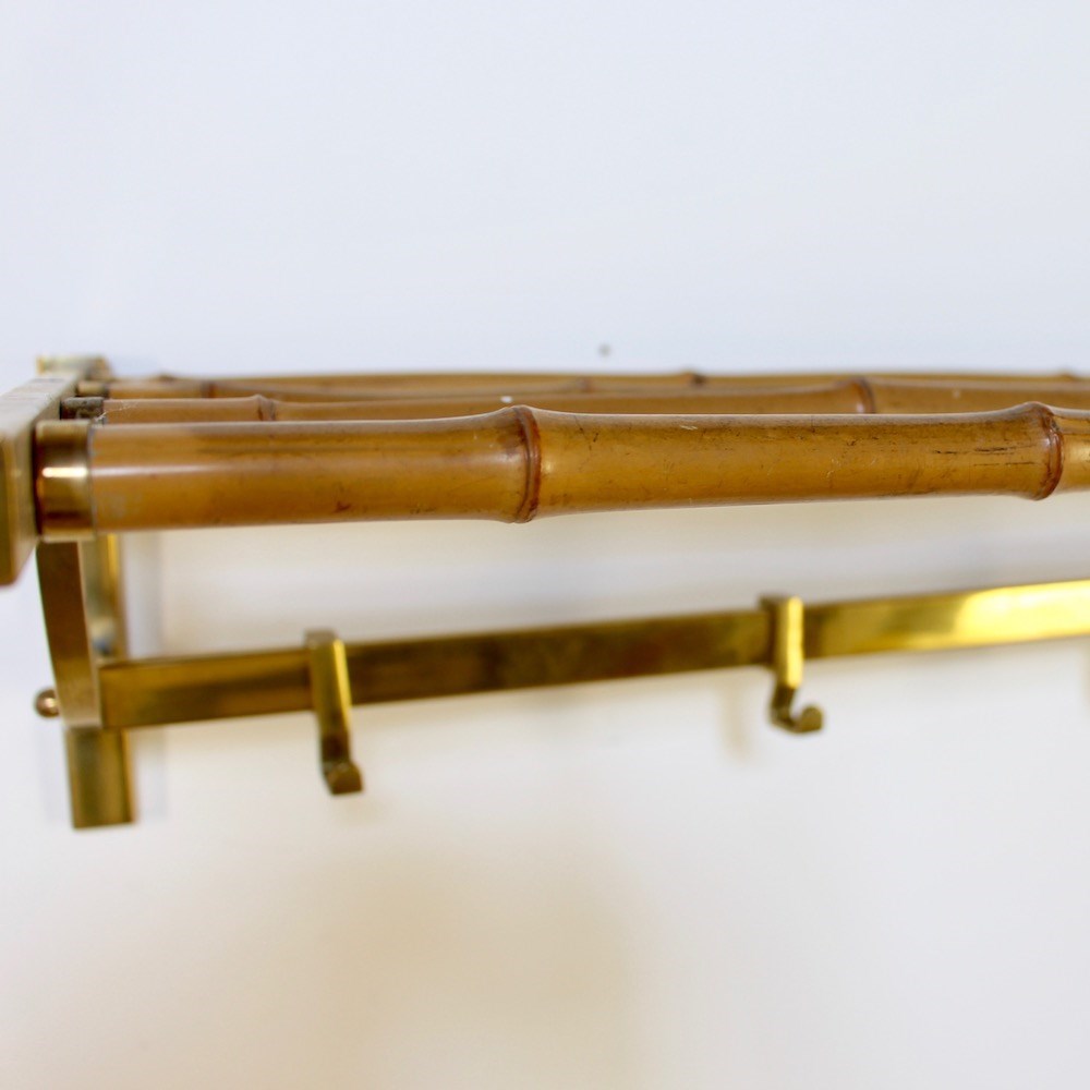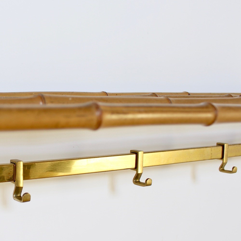 Large Vintage Brass And Bamboo Wallmounted Coat Rack
