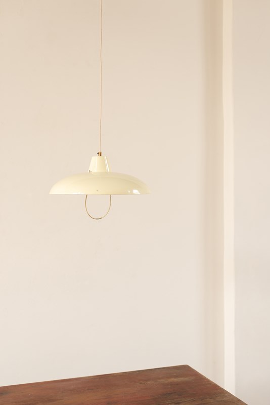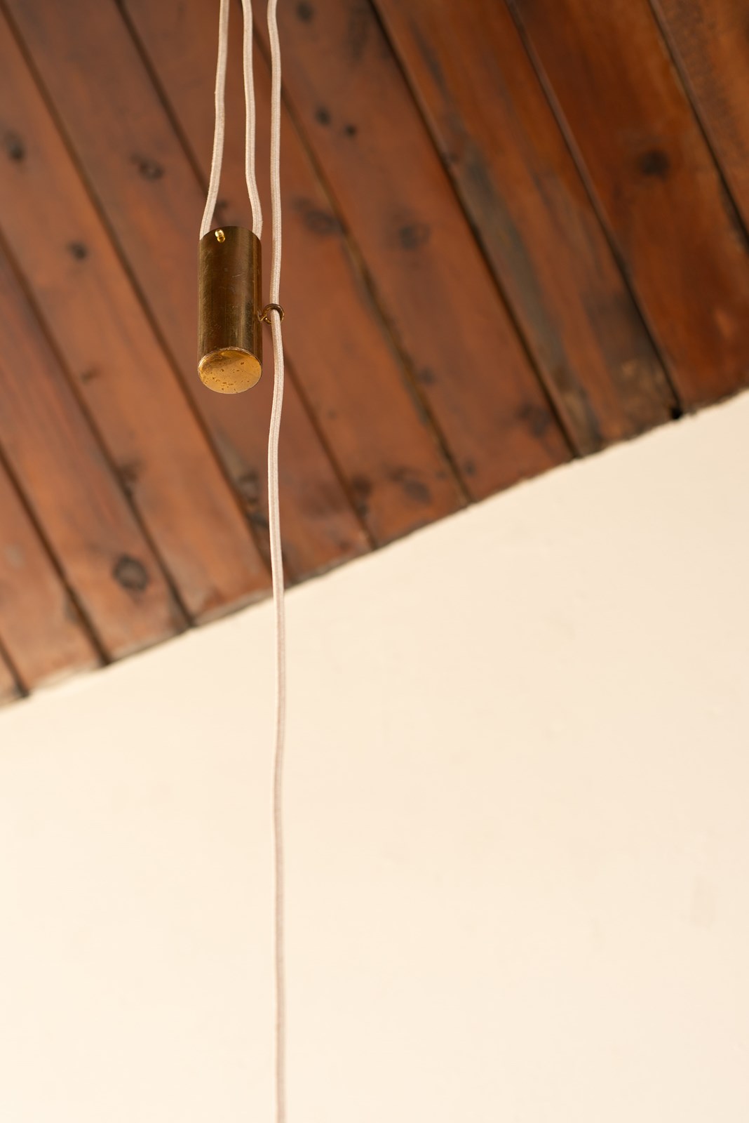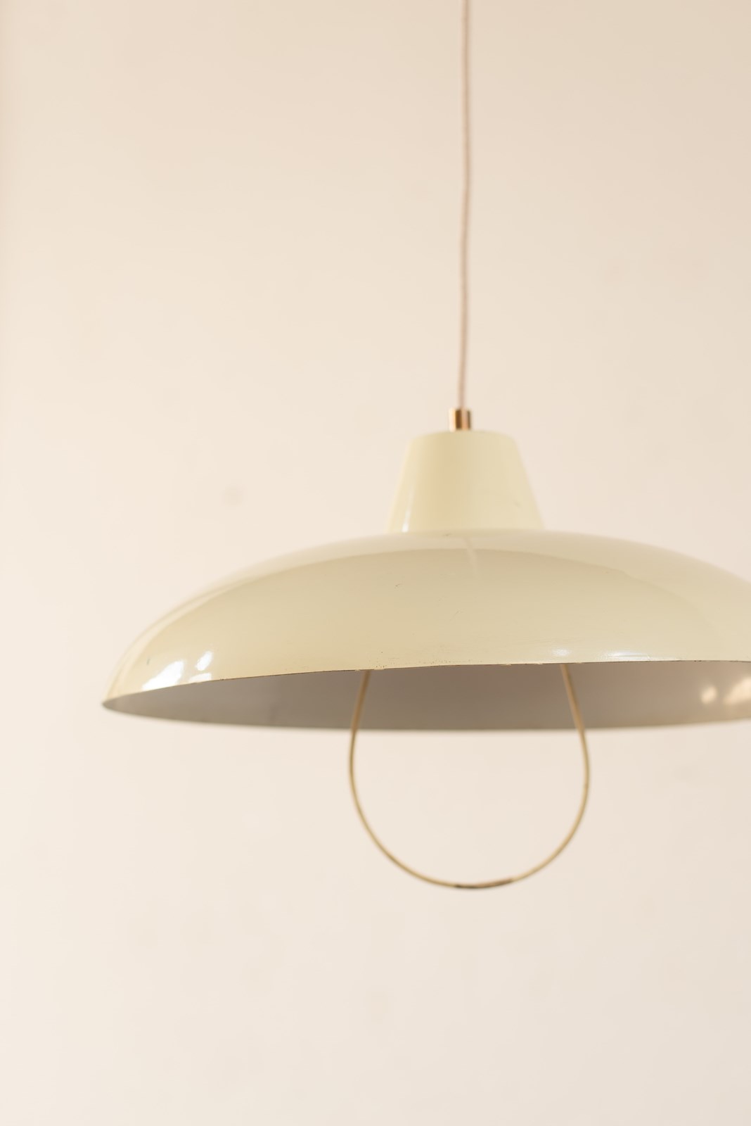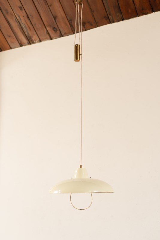 1950S Italian Off White Metal And Brass Counter Balance Ceiling Pendant