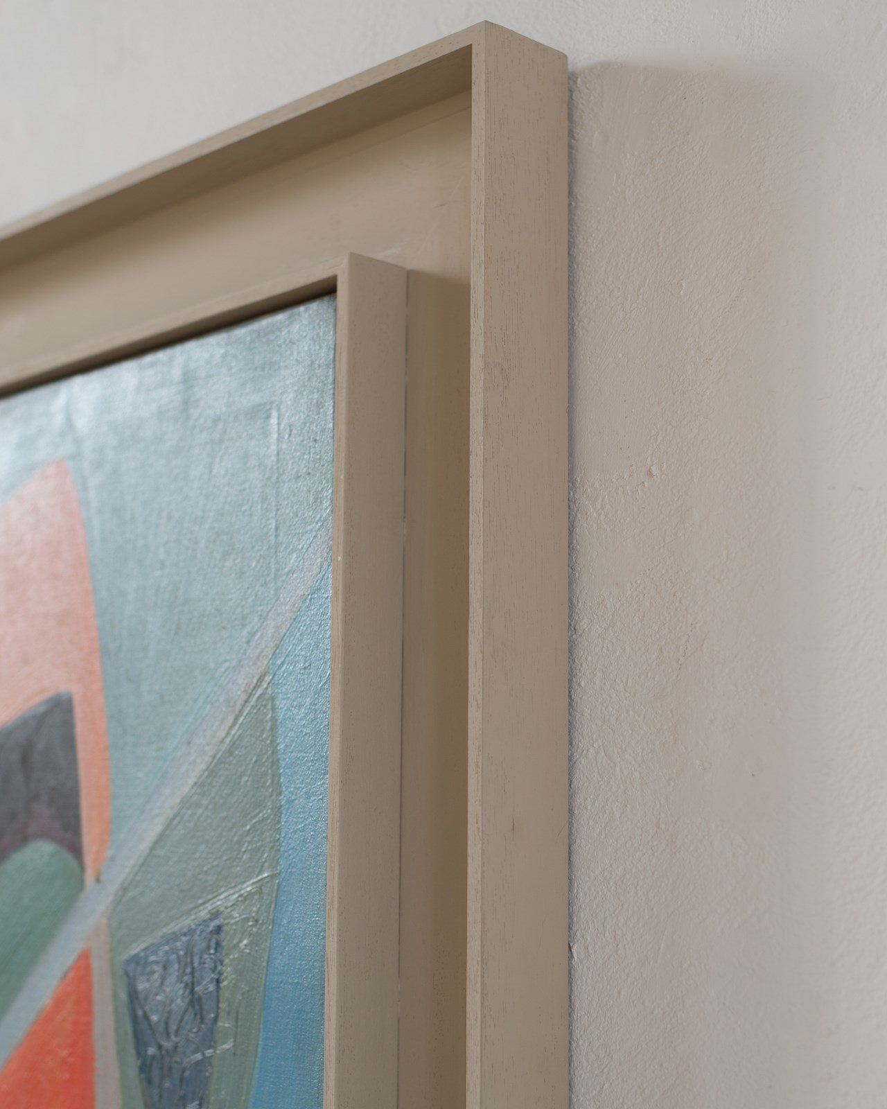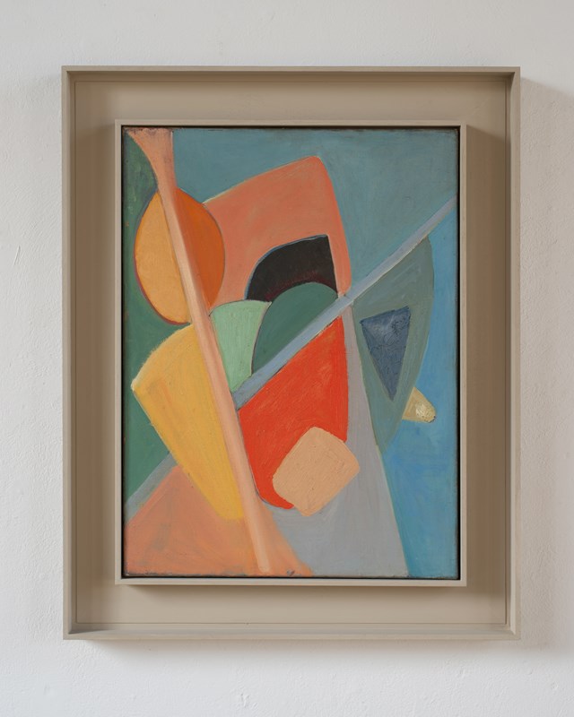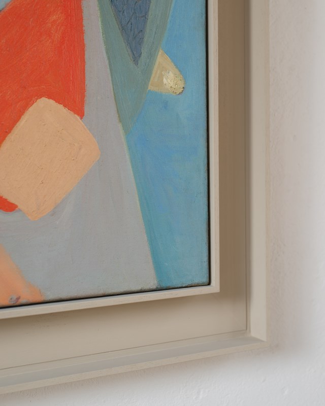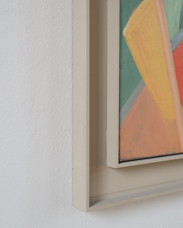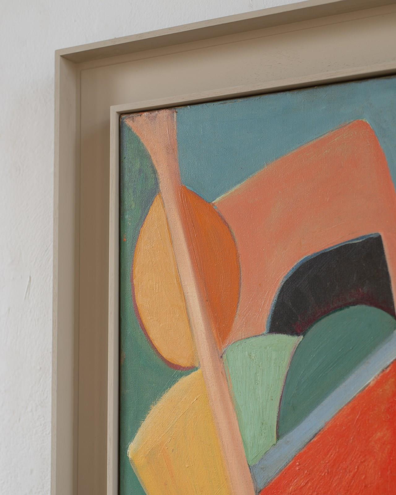 ' Abstract Composition ' Oil on Canvas Painting by Halima Nalecz (1914 - 2008). Signed Verso, C1950. Nalecz saw colour as medicine, which is exemplified by this work with its exquisite palette of bold secondary tones. Presented within a hand-painted wooden triple-frame.