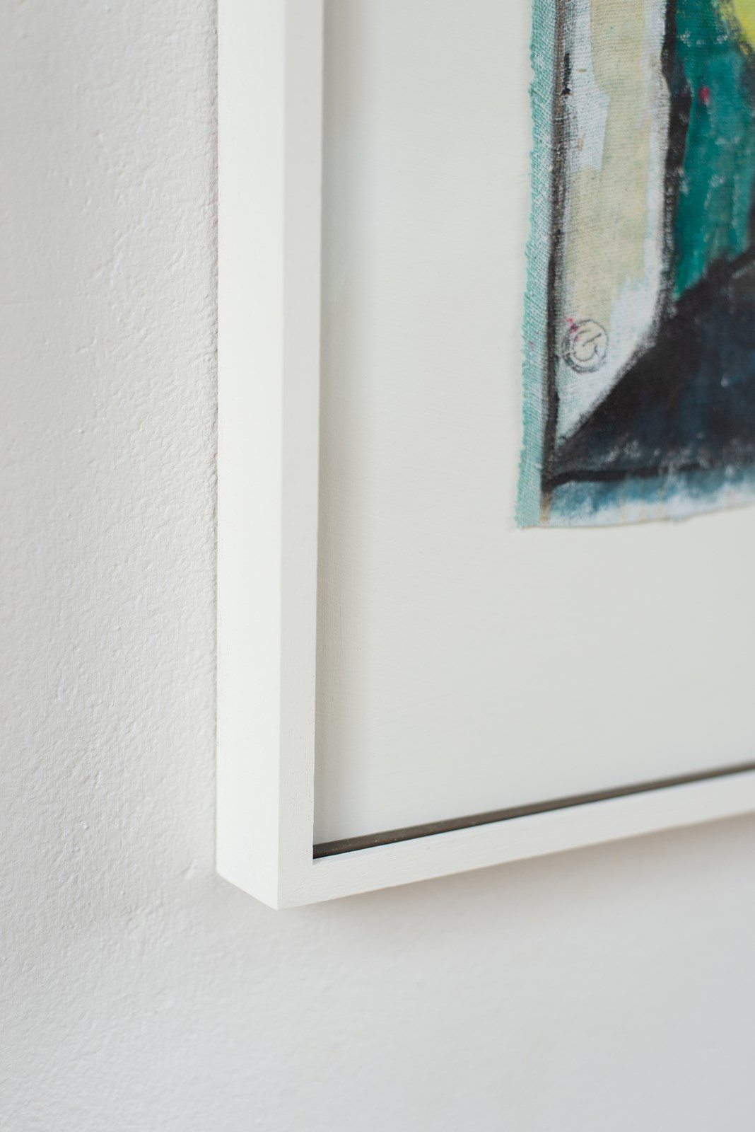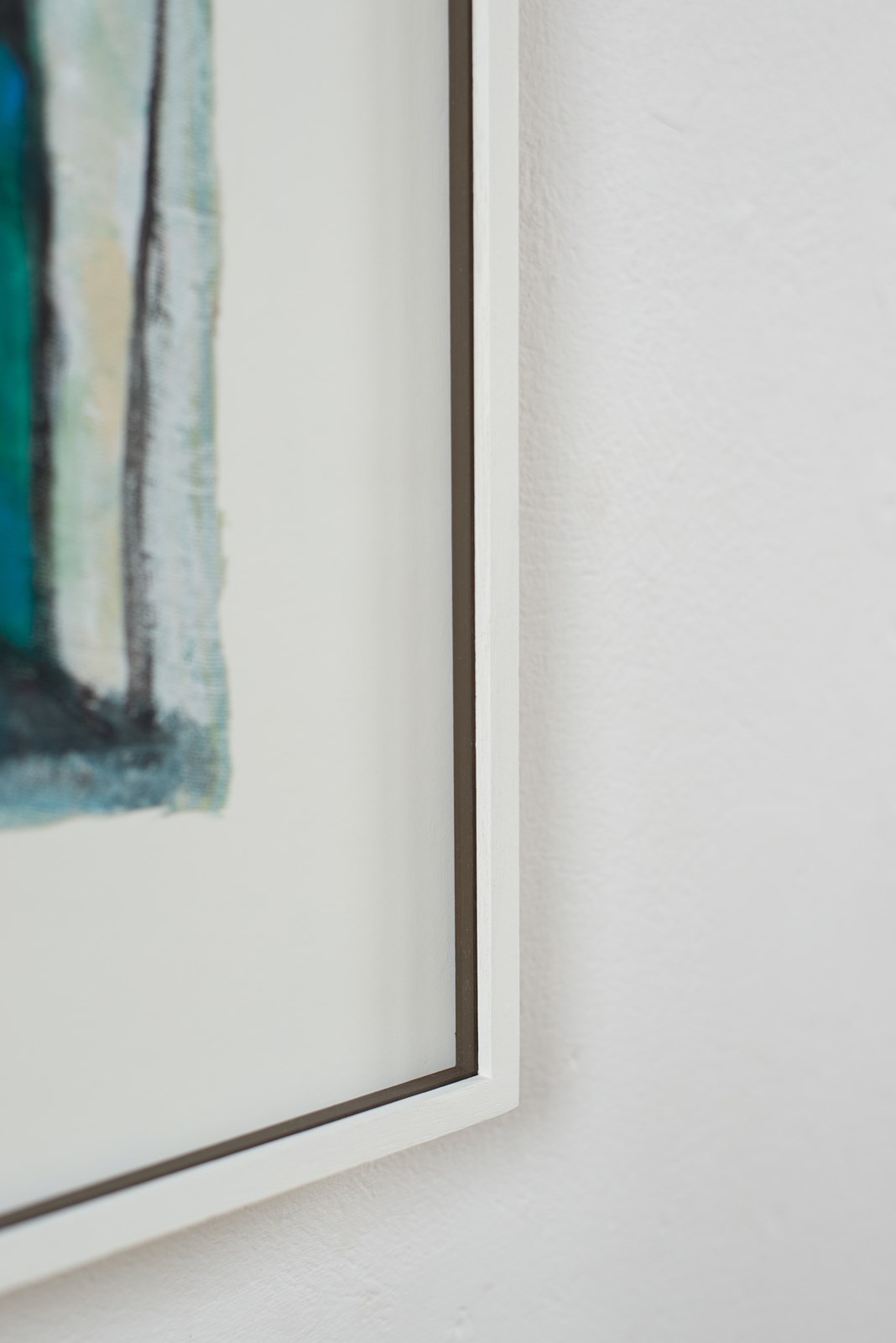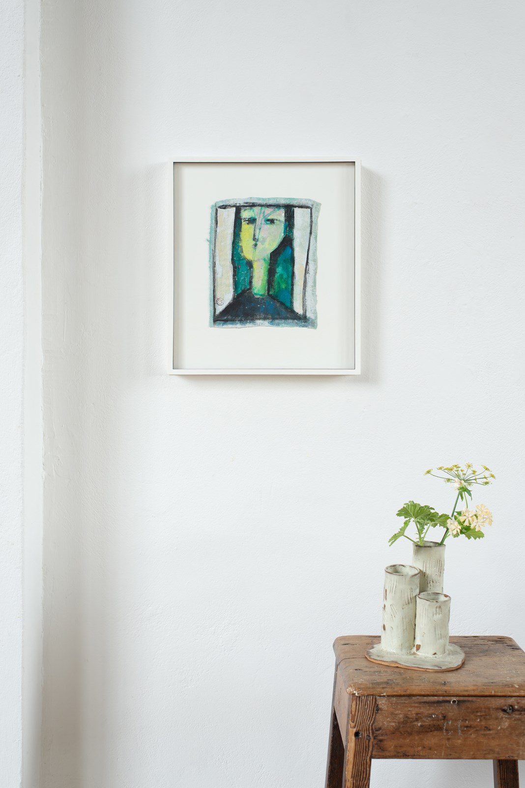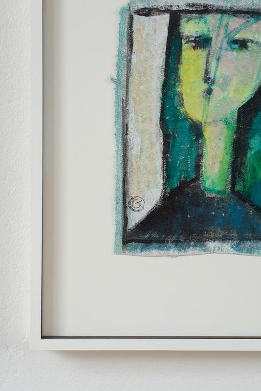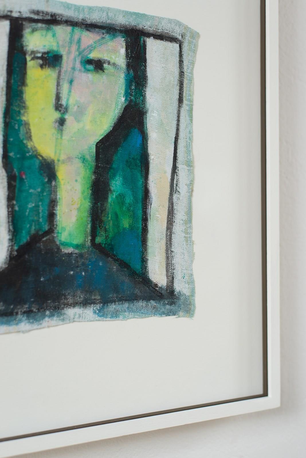 A Florentine abstract portrait in acrylic on canvas, signed by the artist, C1980.  The artist uses bold colour and a few confident brushstrokes to define the sitter.  The artwork is presented in a hand-painted frame with contrast-painted fillet and gallery-grade glass.