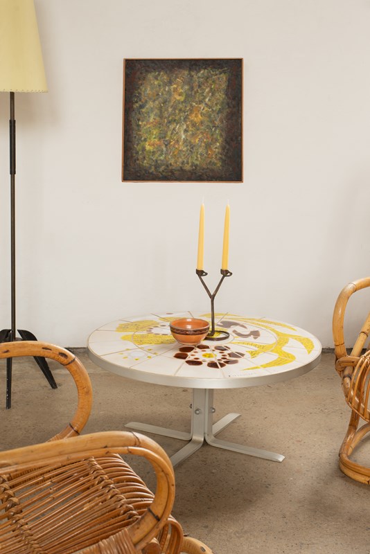 Circular Tile Top Coffee Table By La Fagoterie, Vallauris, C1970