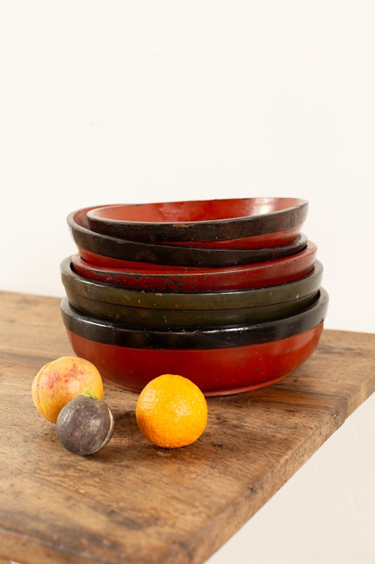 Collection Of Antique Japanese Laquered Wood Bowls, C1900 (Sold Separately)
