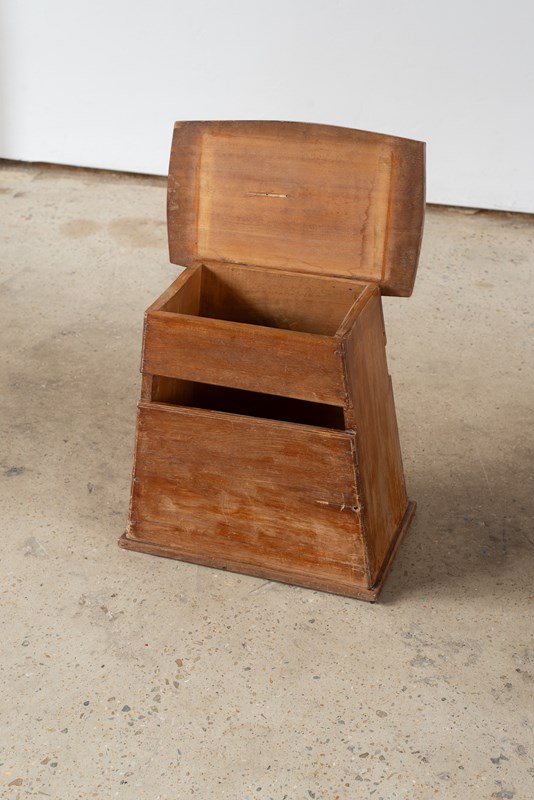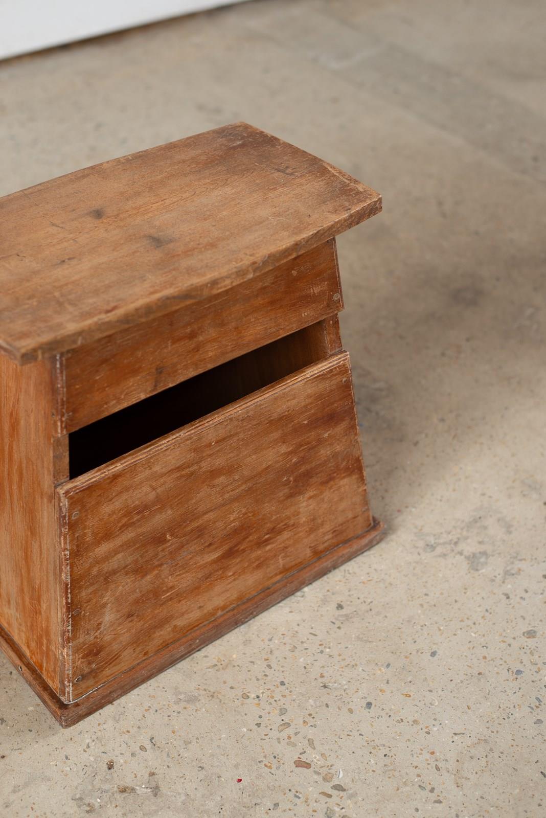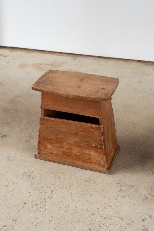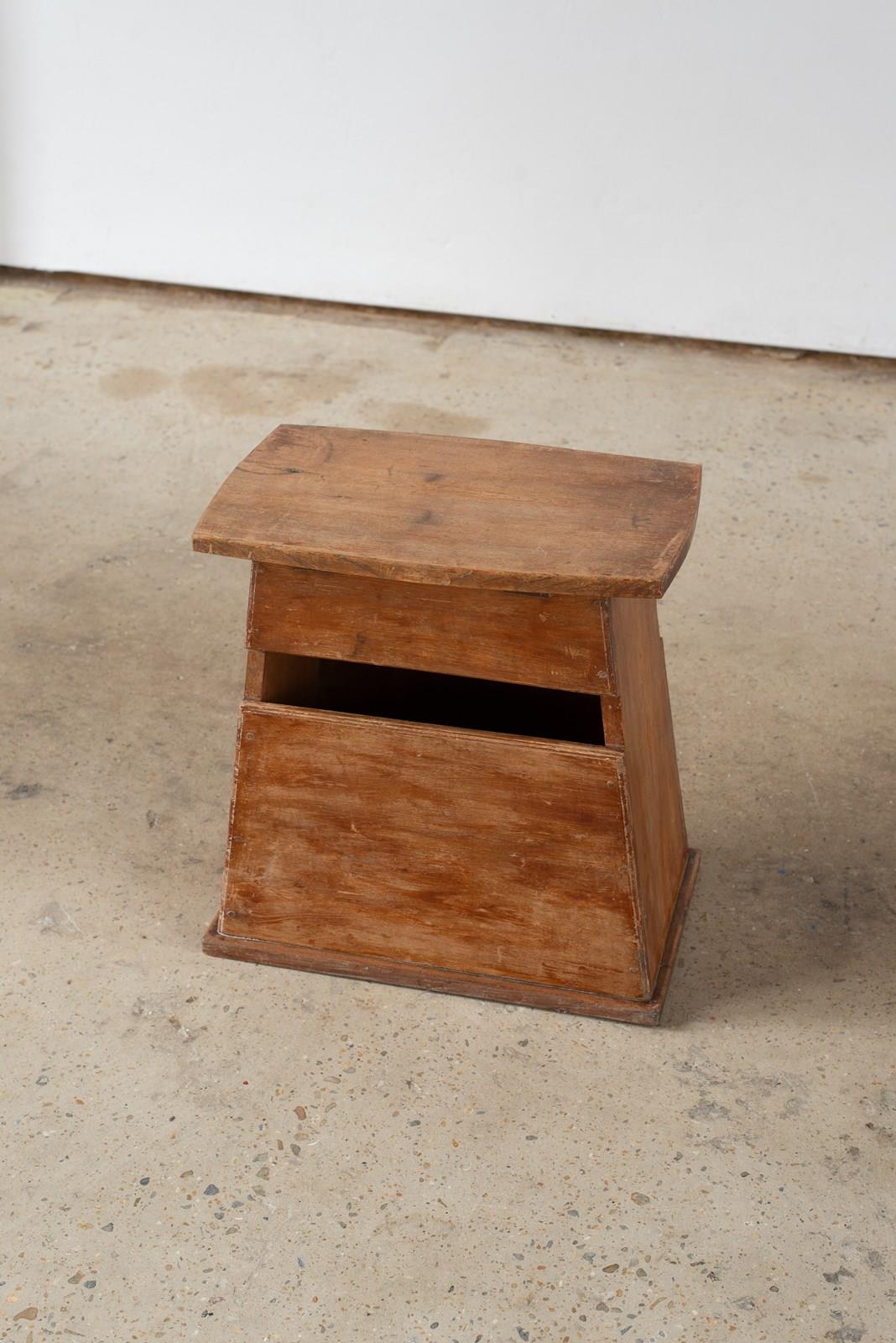 An early 20th century wooden stool from Japan, with a hinged top which lifts to reveal a storage space.  Originally used by street vendors and part of a small collection of these simply-crafted pieces, which we have acquired.  It has a soft patina to the surface, which speaks of its past life.