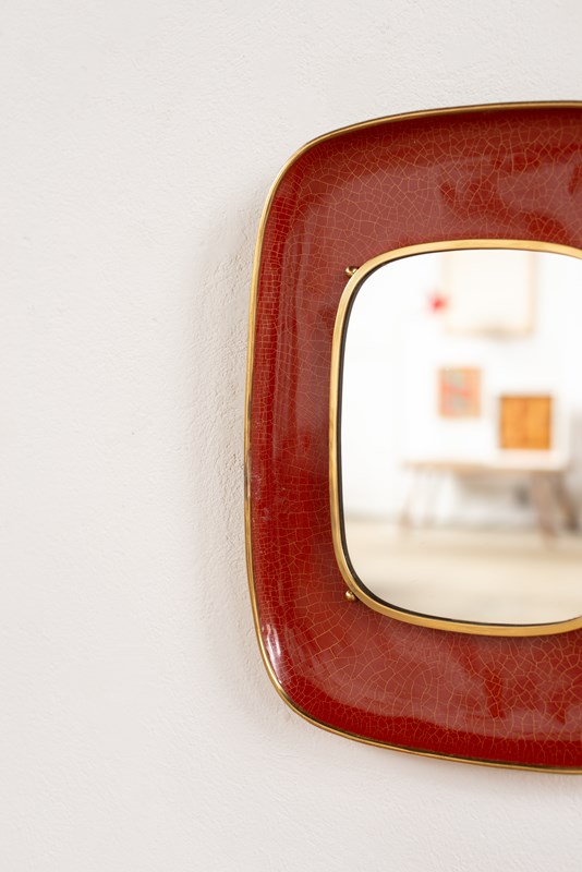 Enamelled Brass Mirror, Germany C1950