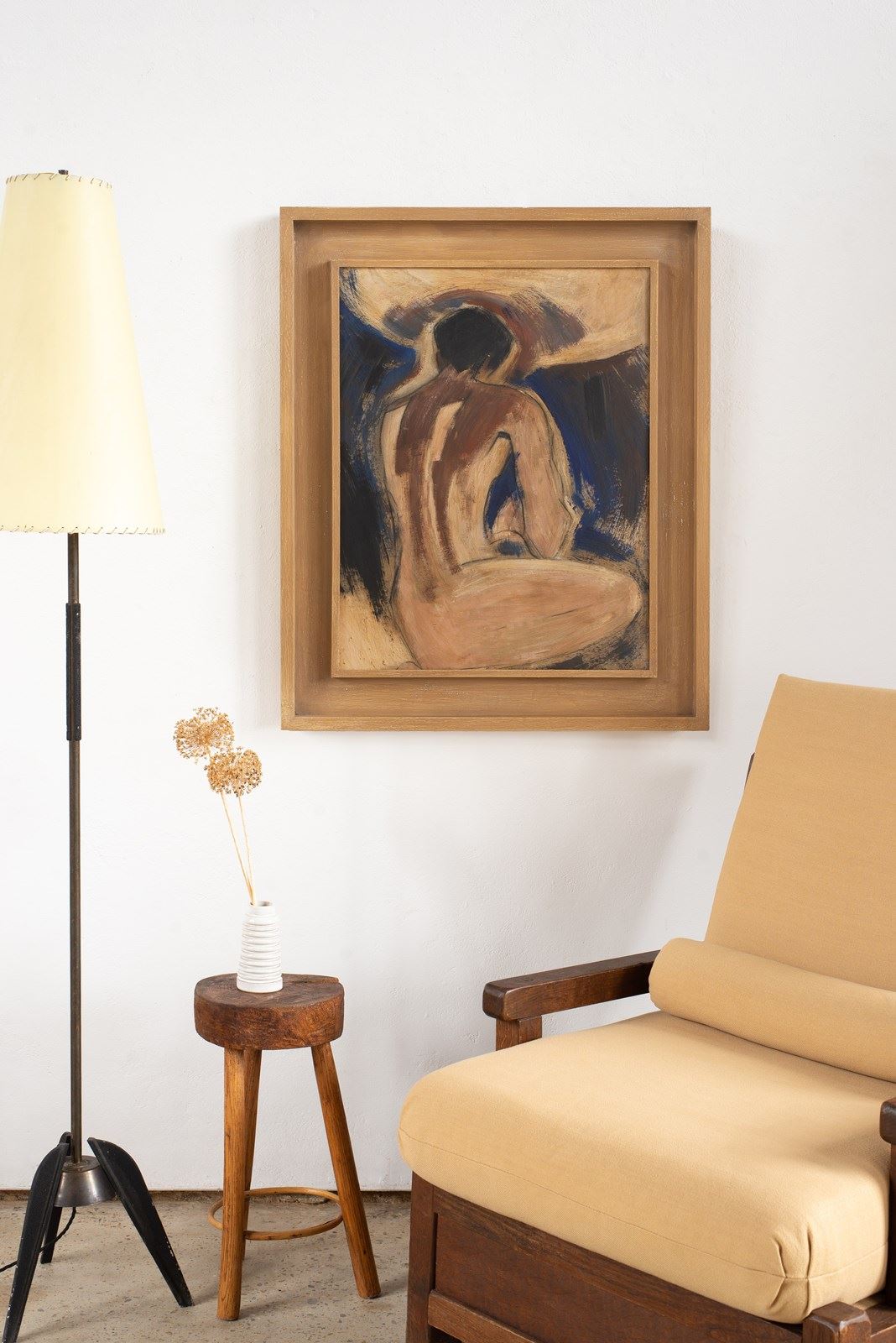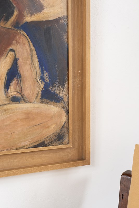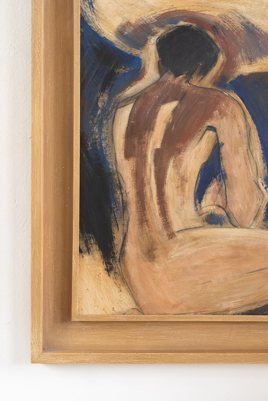 Figurative Painting Of A Back In Blues And Browns