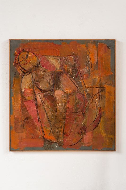 A large-scale cubist work in oil on canvas by German artist Franz Hirsch, signed. Painted in a rich palette of pinks and oranges in thickly applied oil, the piece depicts the top half of a figure in recline. A bold work, presented in its original artist's studio frame.