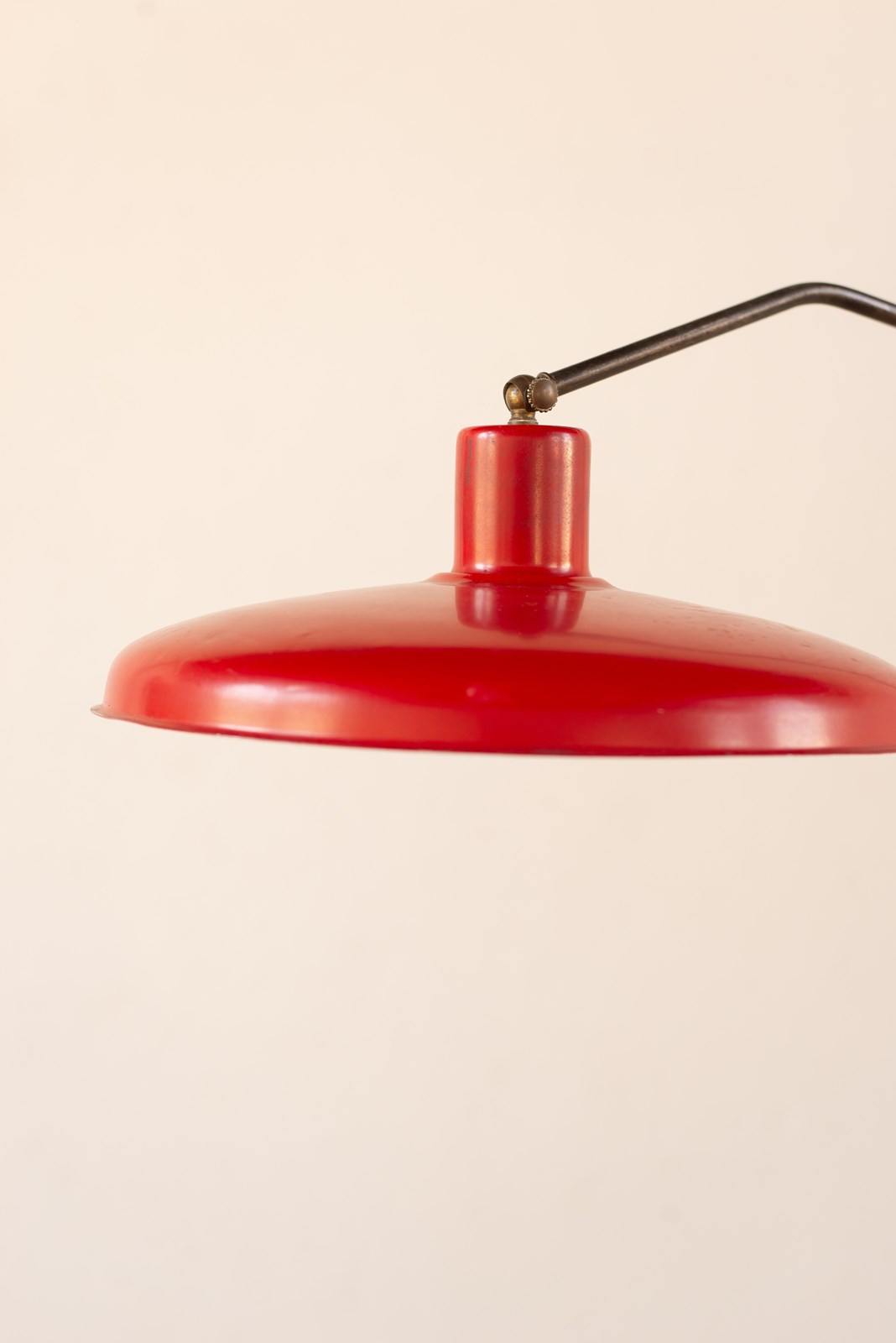 Italian Brass Floor Lamp With Red Metal Shade, C1950