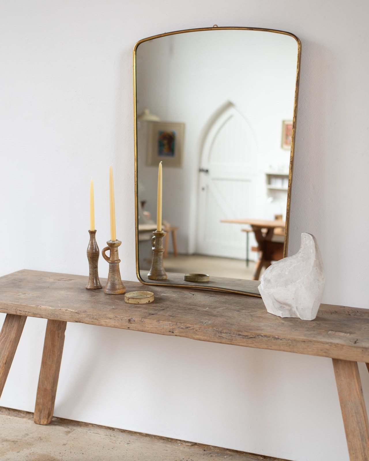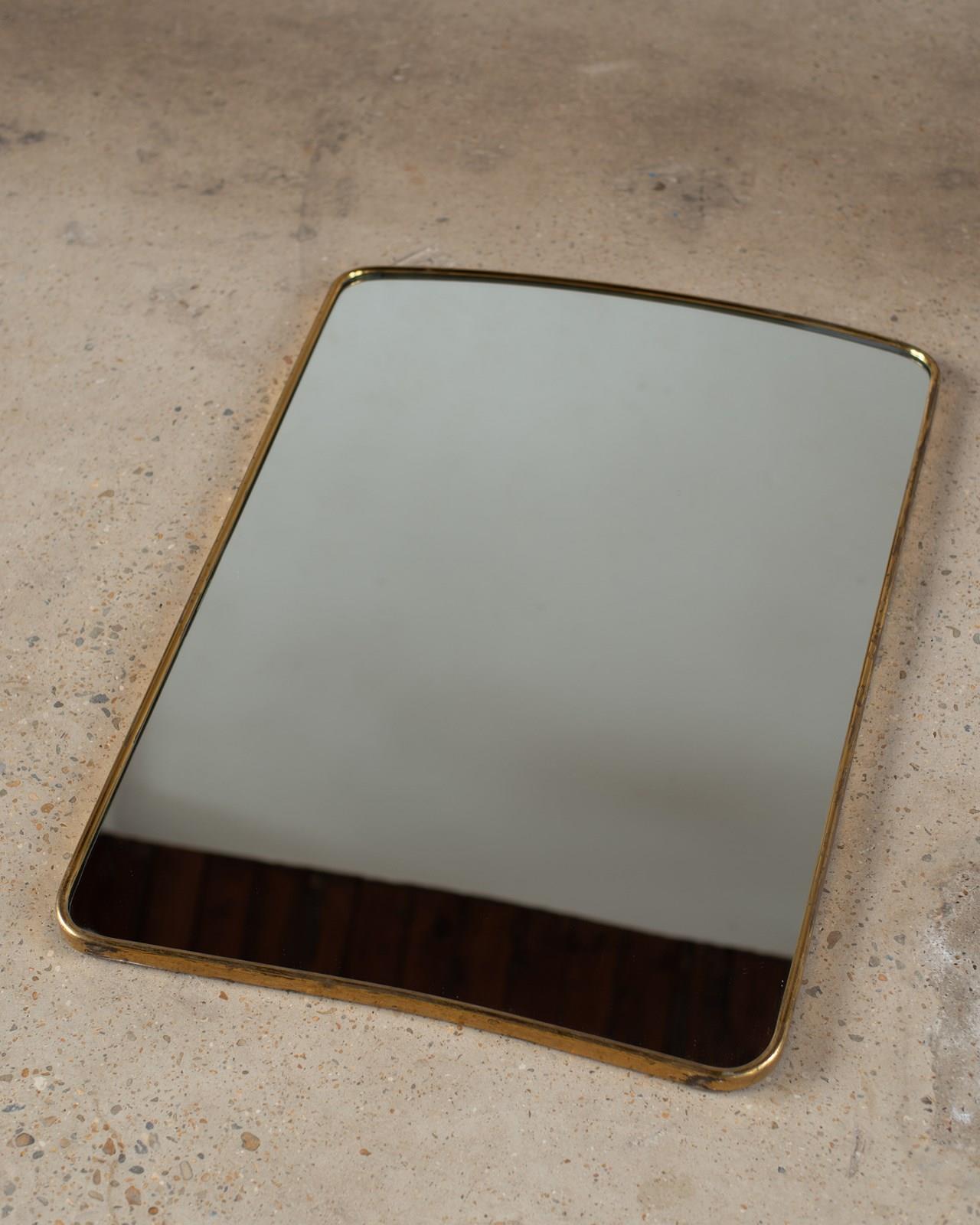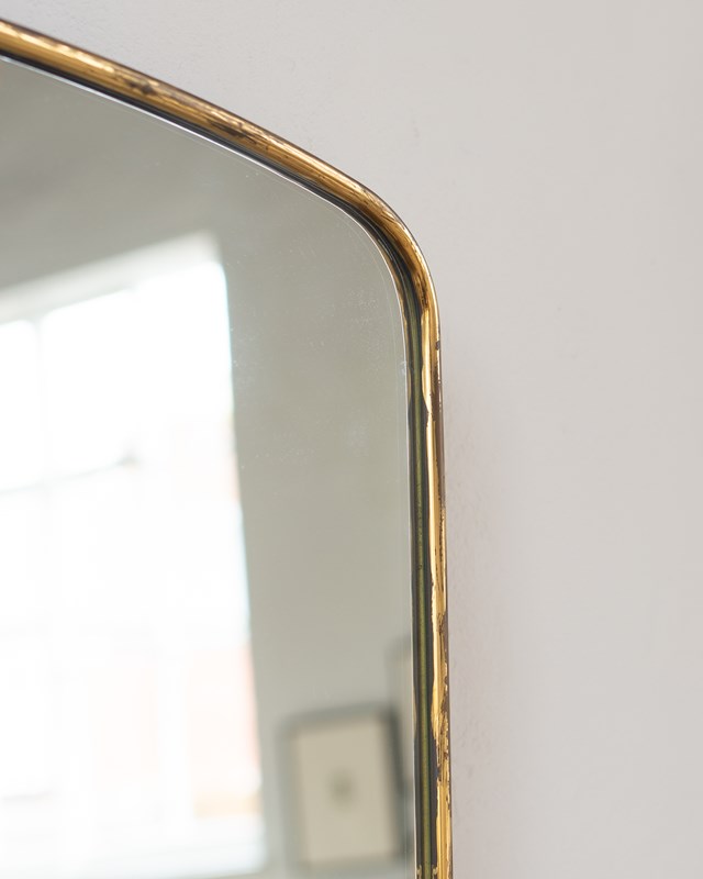 Large 1950S Italian Brass Framed Tapered Rectangular Mirror