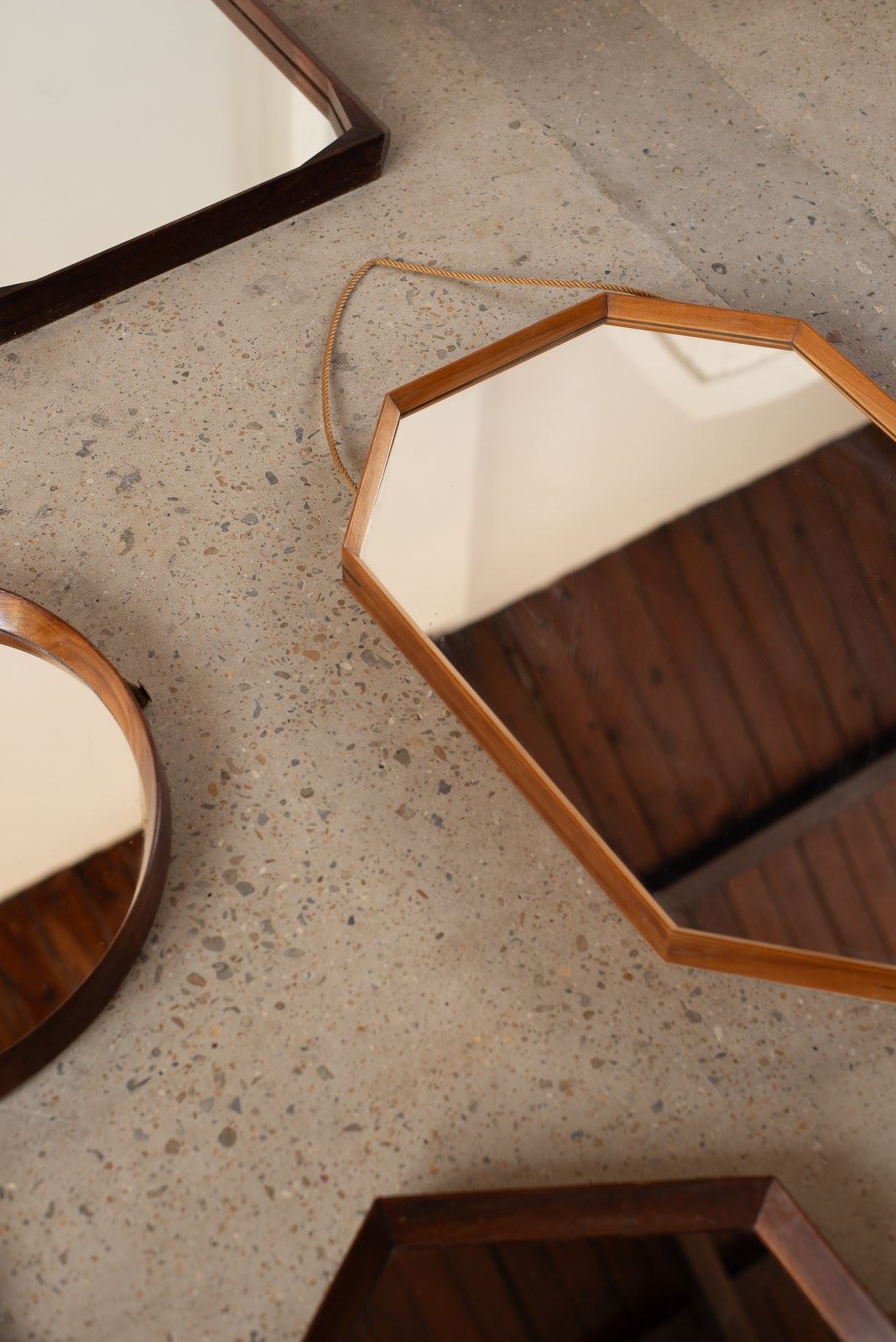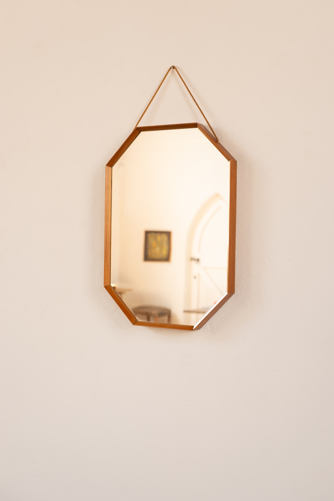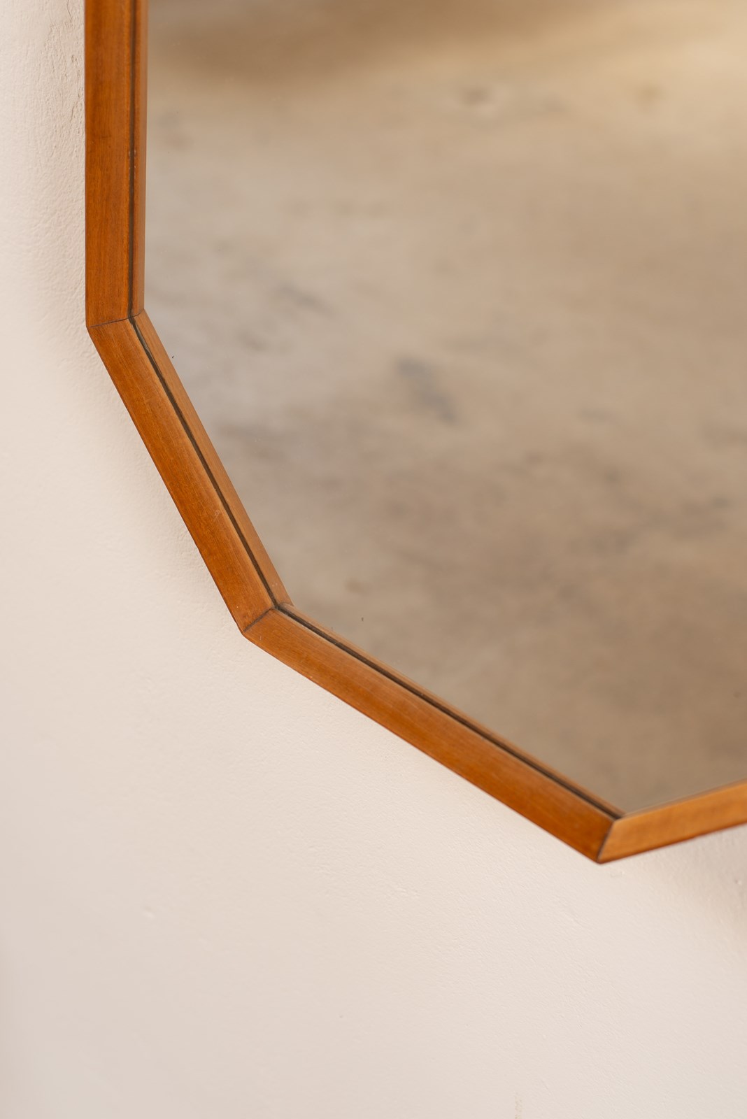 Large Octagonal Italian Mirror In Light Wood C1960.
