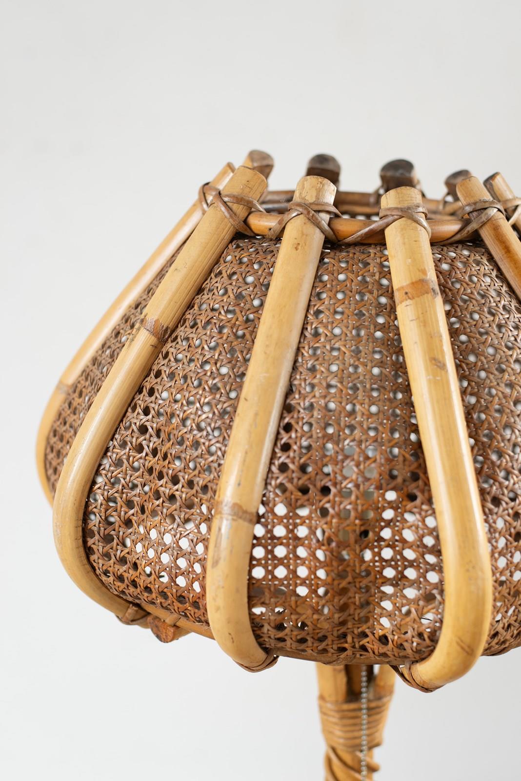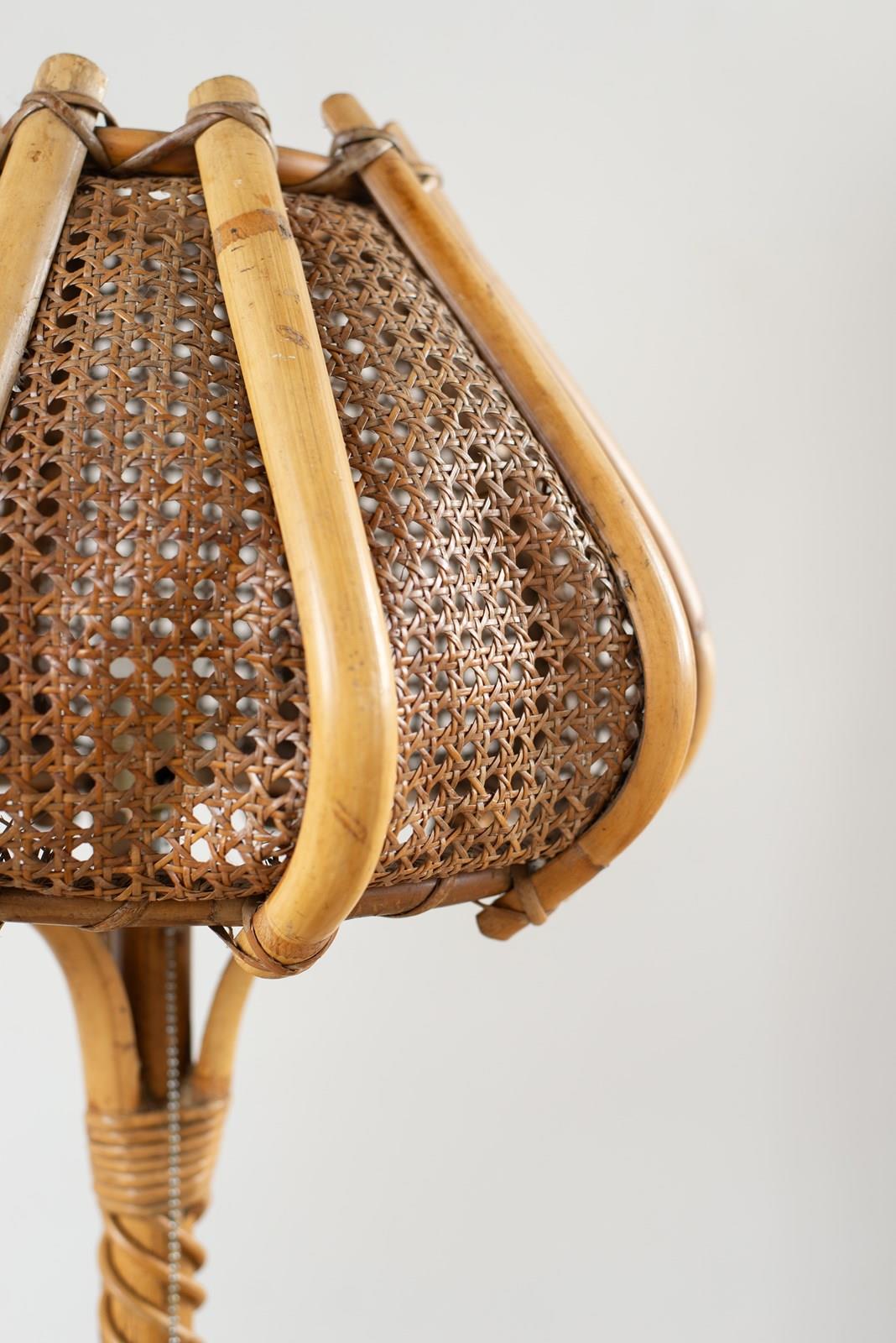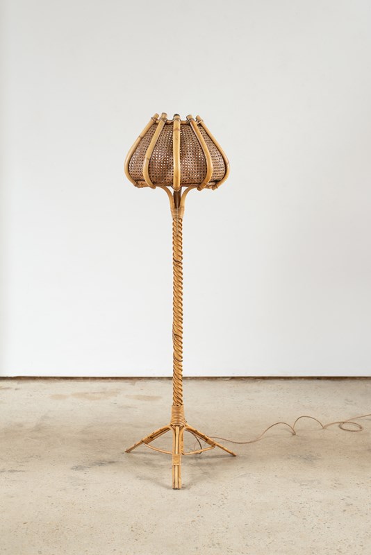 Mid-Century Cane And Rattan Floor Lamp, Spain C1960.