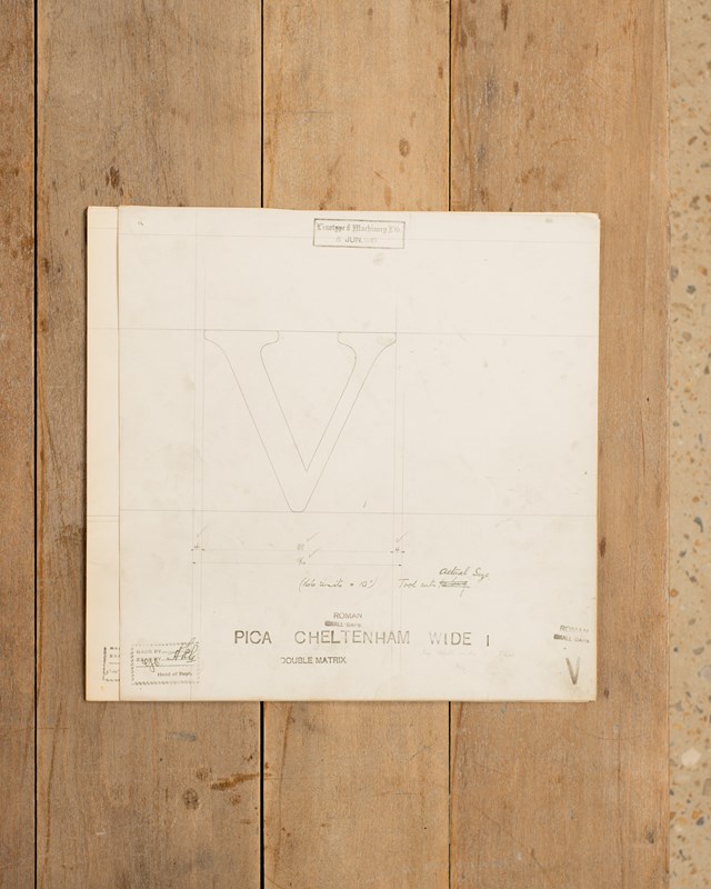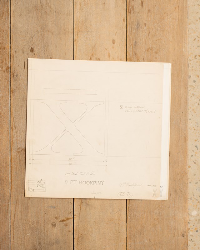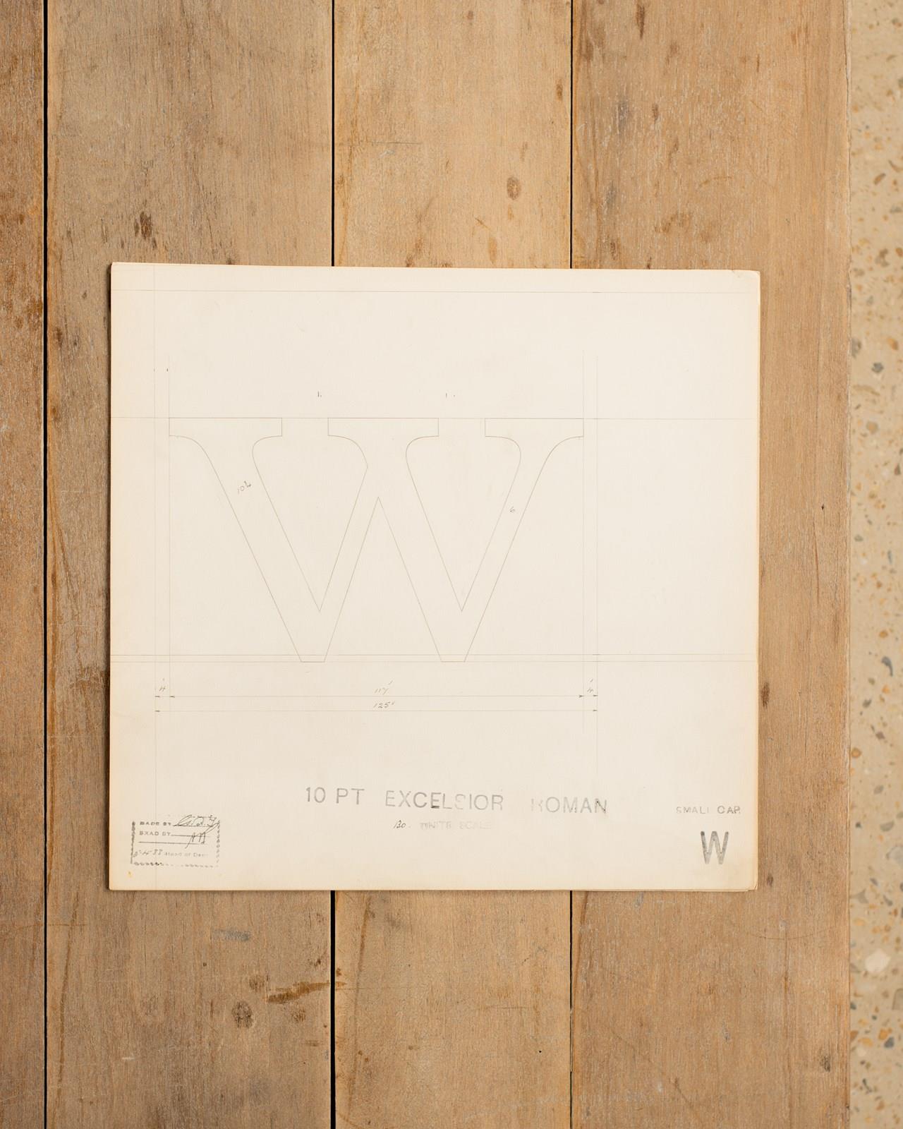 A Collection of original hand rendered master drawings of letters and punctuations, individually dated and originally used as the matrices for making brass moulds at the Linotype Foundry in Manchester, Northern England.
