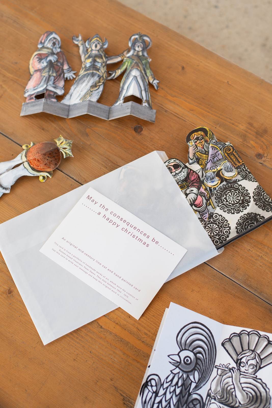 Included is a card inscribed with Owen's original greeting, "May the consequences be a Happy Christmas". It outlines the story of the piece and enables you to write a message to the recipient, meaning this artwork can be reused and kept in circulation . The work comes in a glassine paper envelope.