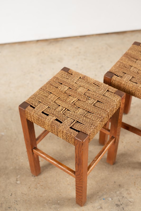 Pair Of Pine Stools With Woven Sisal Cord Seats, C1960