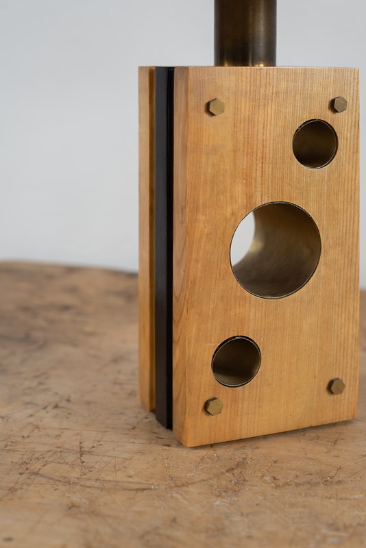 Rectangular Block Italian Wood And Metal Table Lamp, C1970