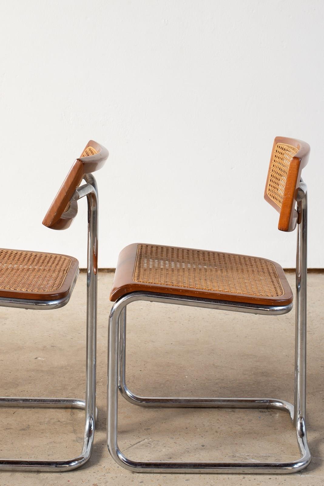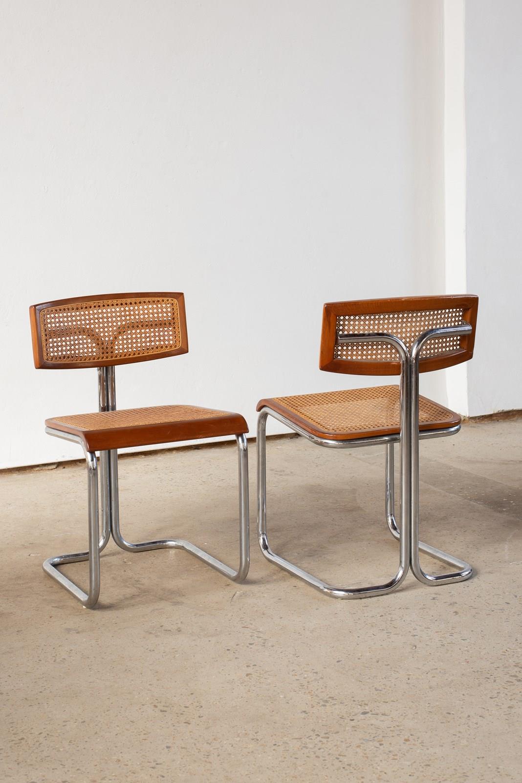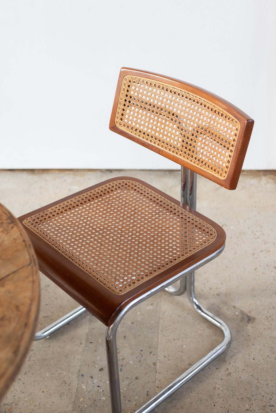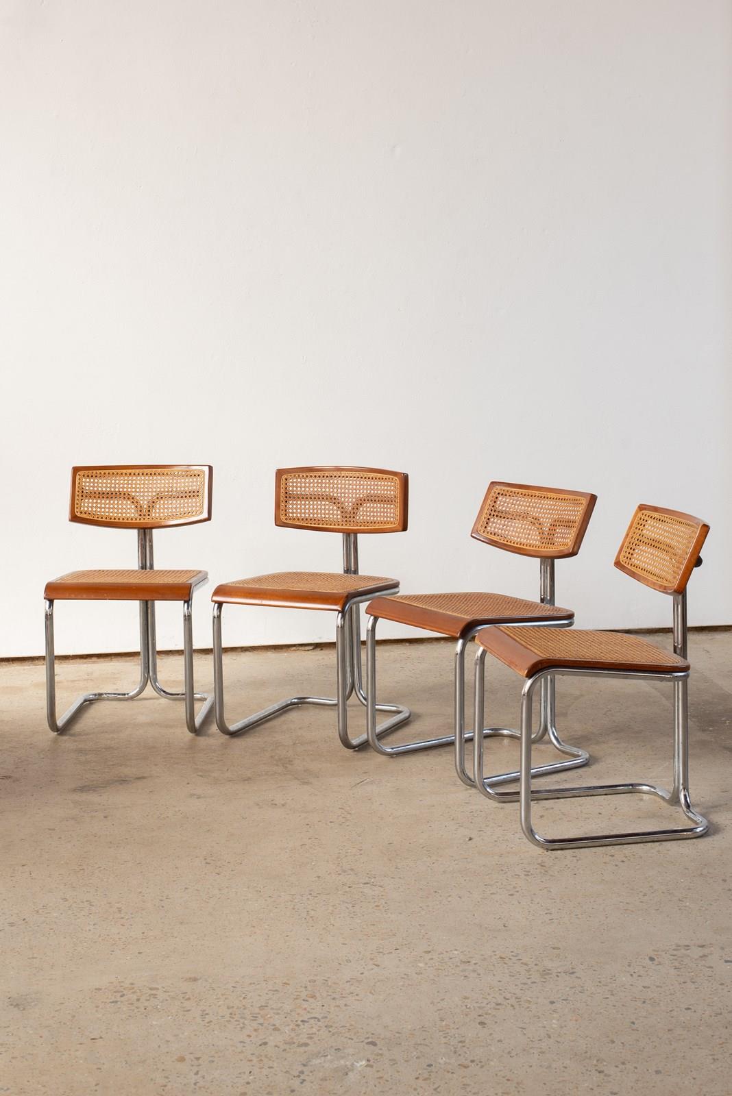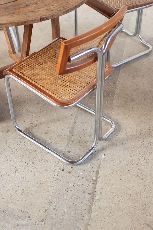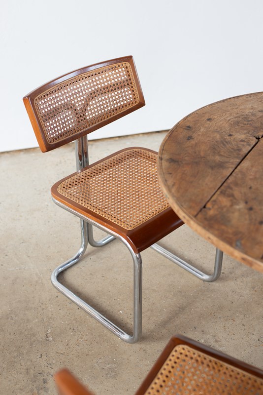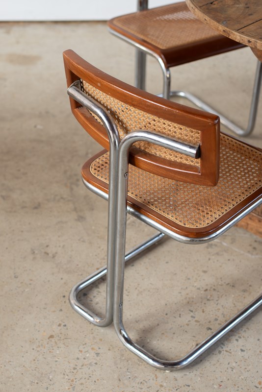 Set Of 4 Italian Cane, Wood And Chrome Cantilever Chairs