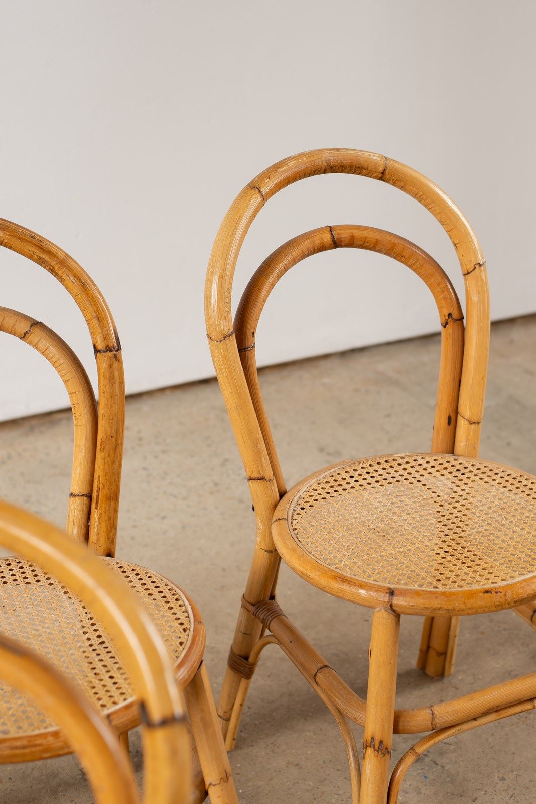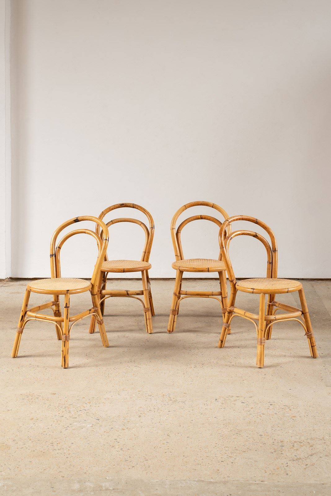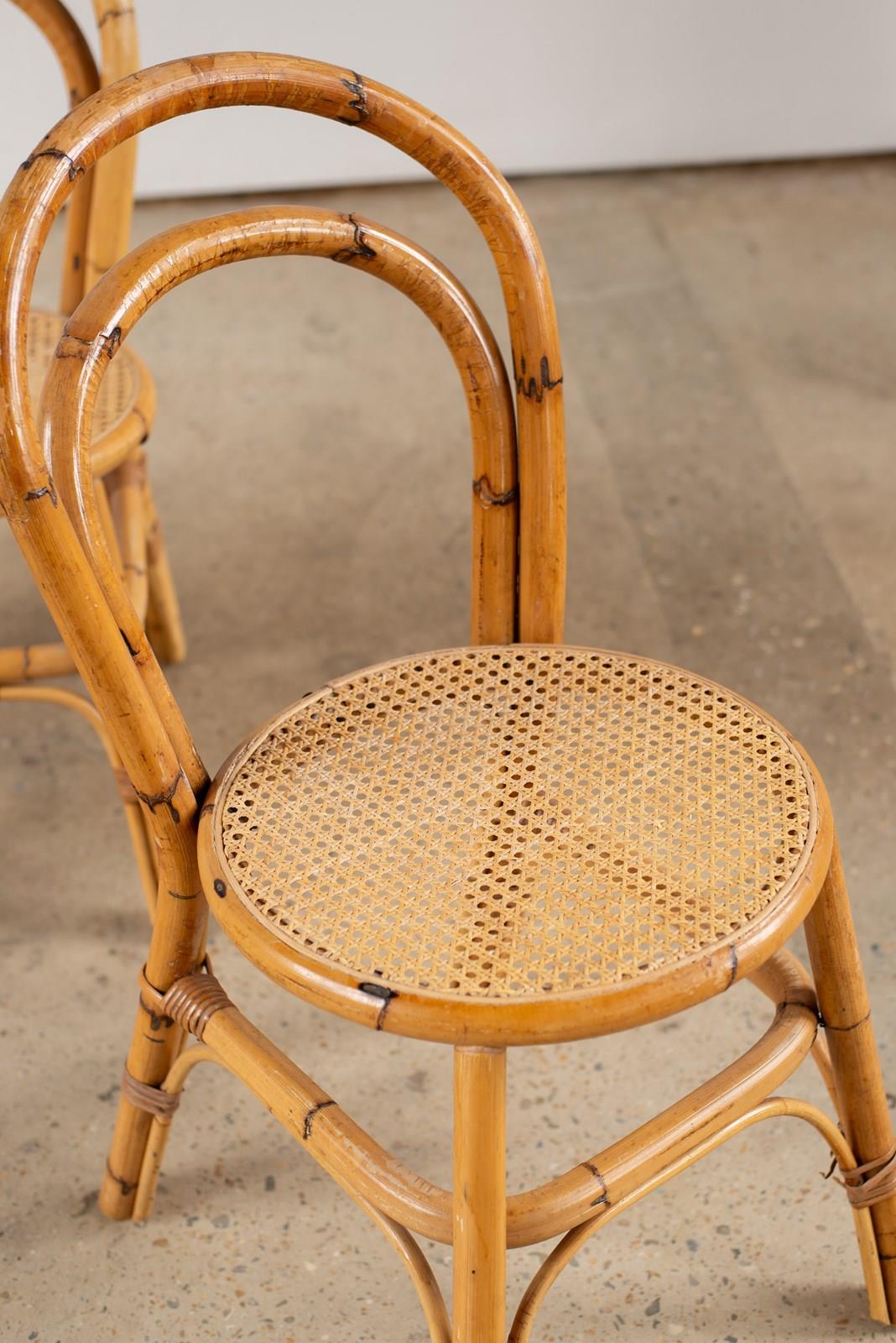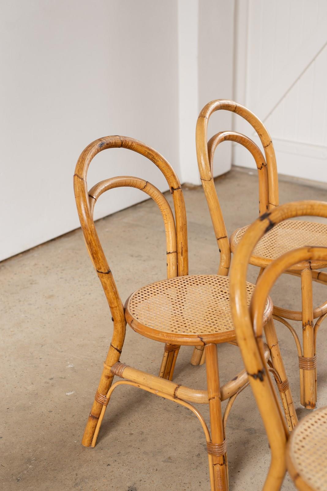 Set Of Four Bamboo And Cane Chairs, Italy C1970