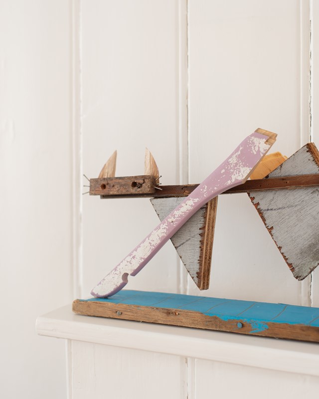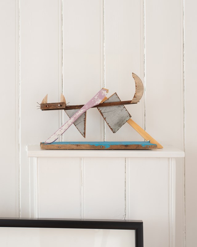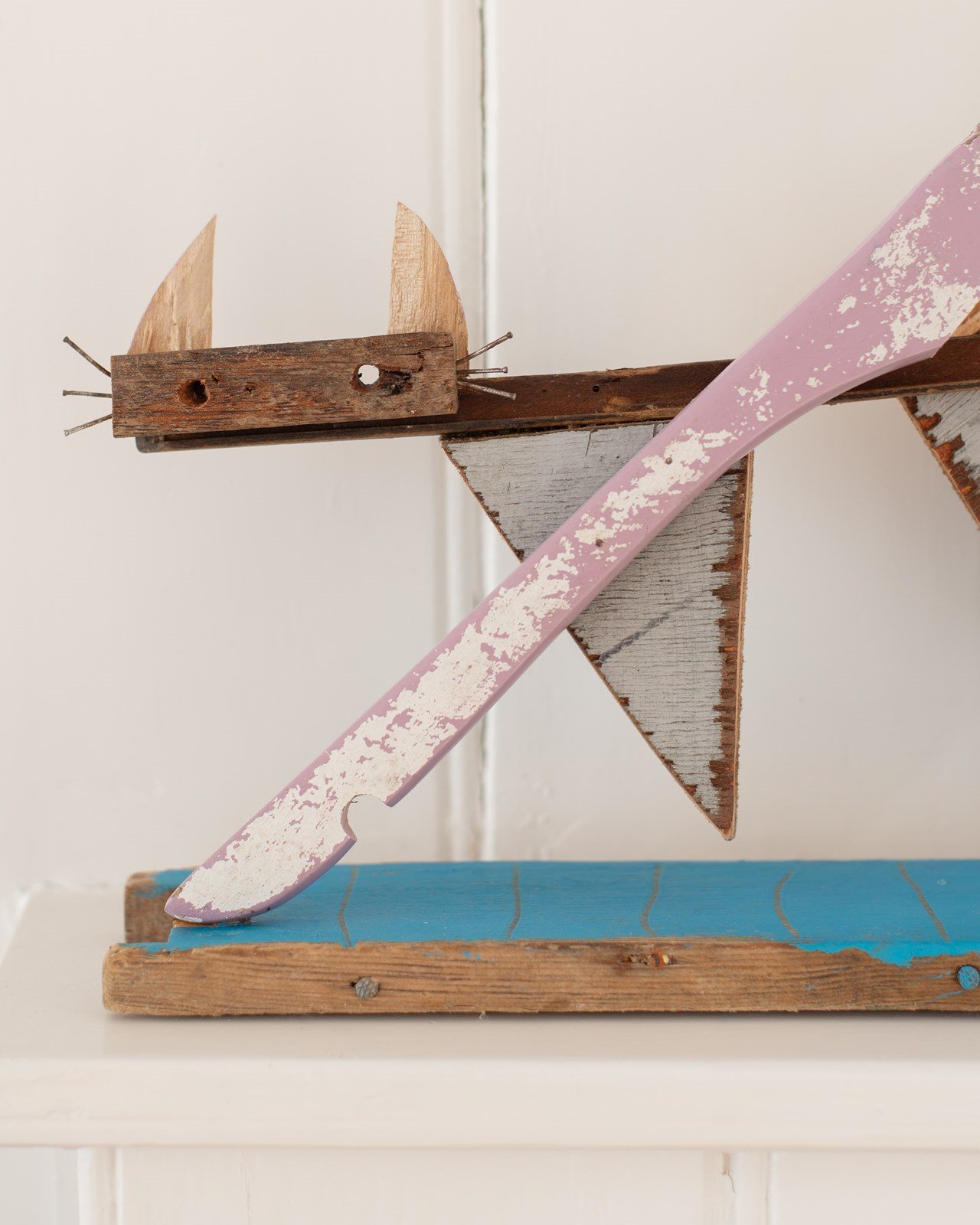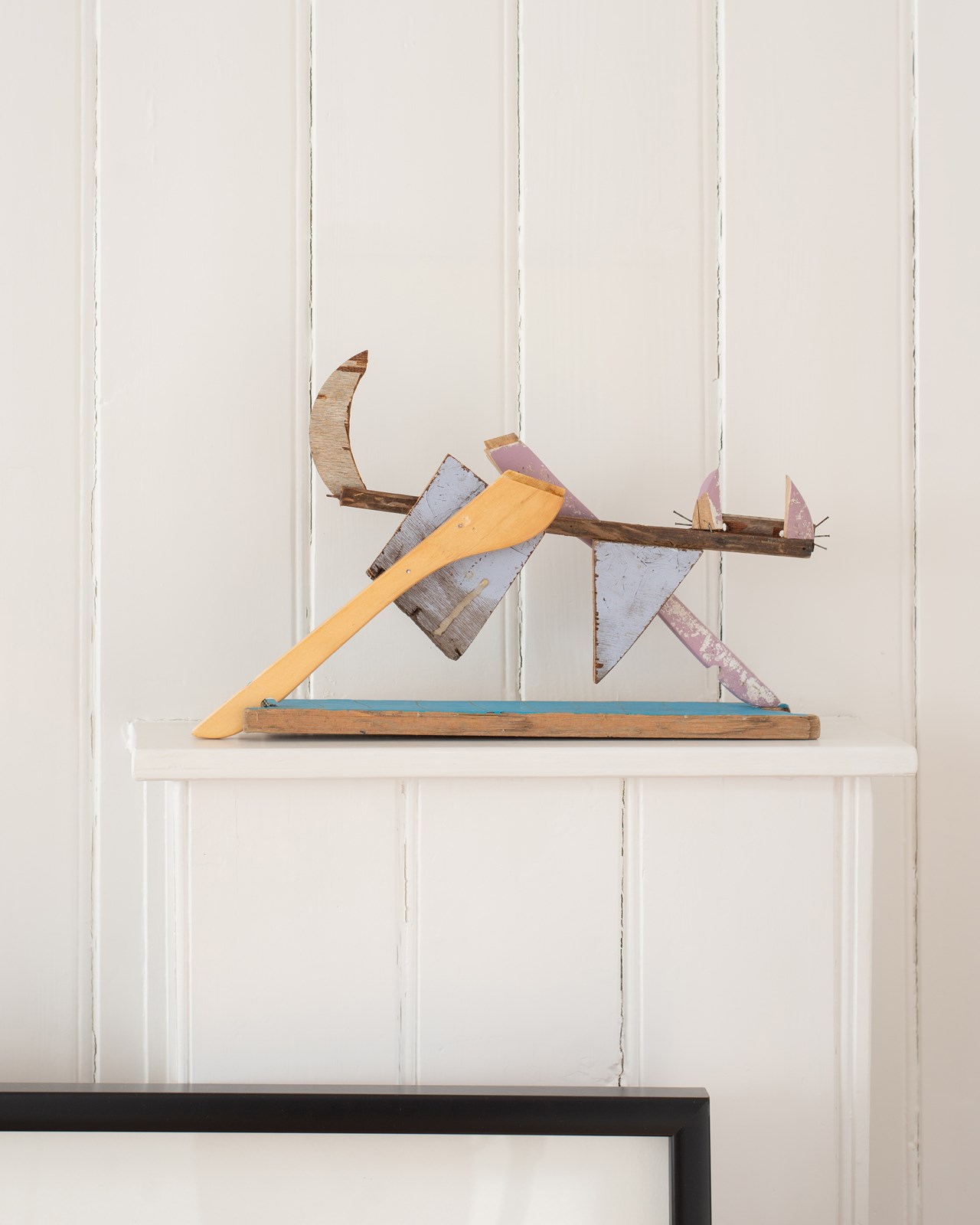 A renowned designer who has always created personal work alongside his illustrious commercial career. He revels in the medium of collage using the 'found form' of old and recycled materials. Carter creates just one of each of his unique sculptures with a name and background that adds to their soulful charm.