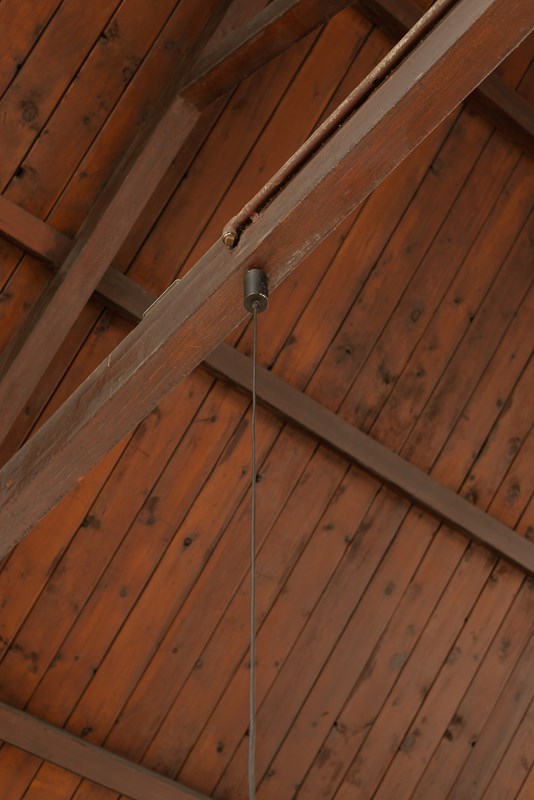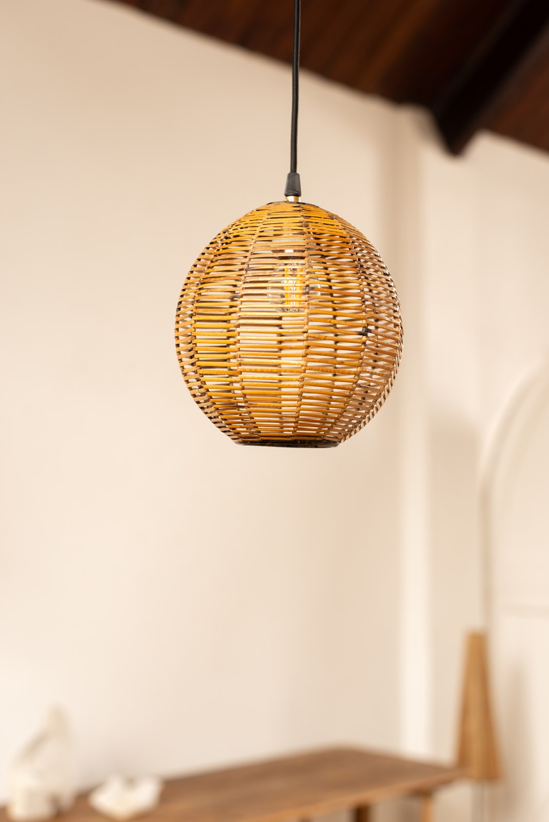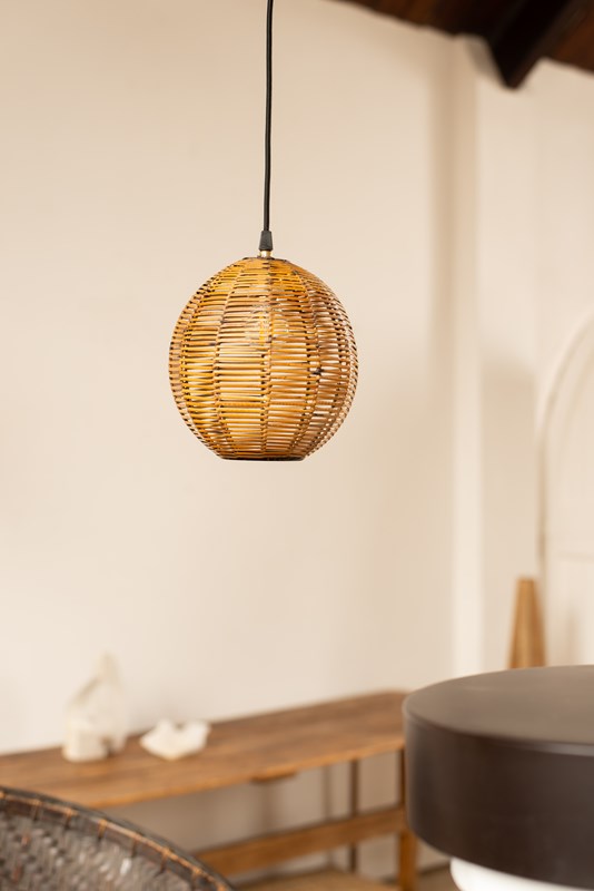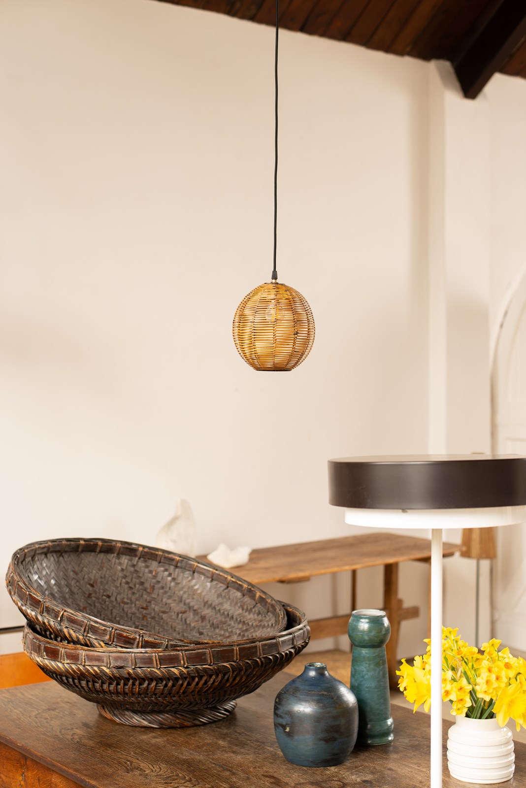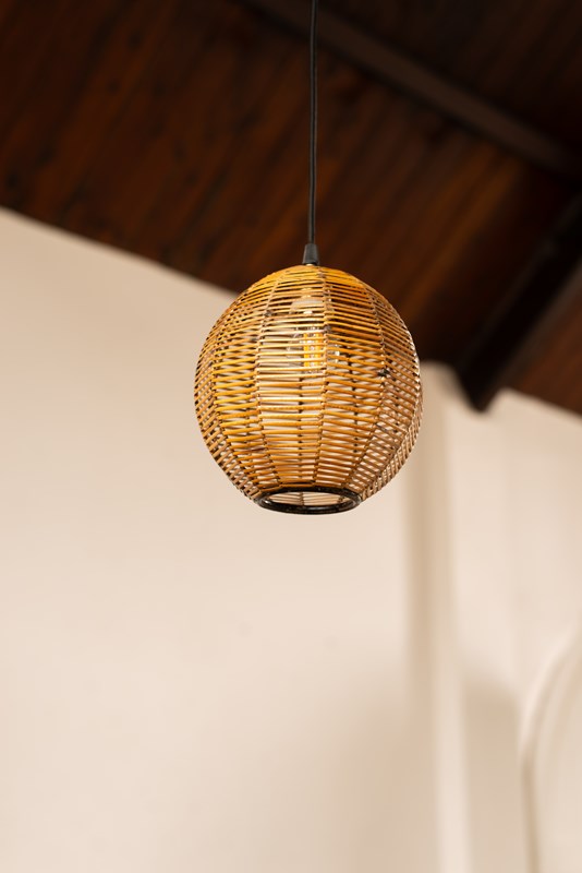 Woven Cane Ceiling Globe With Black Metal Rose C1950