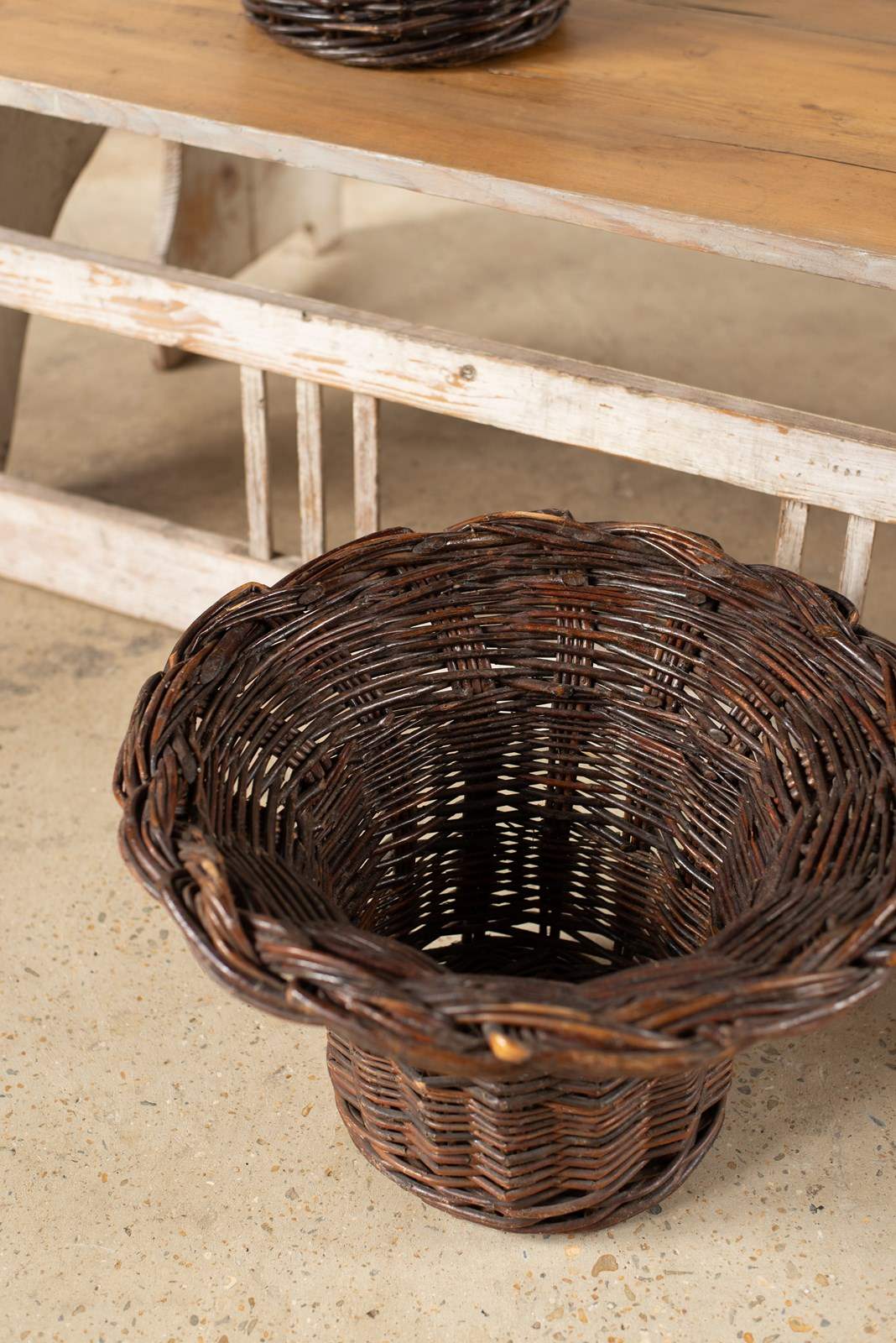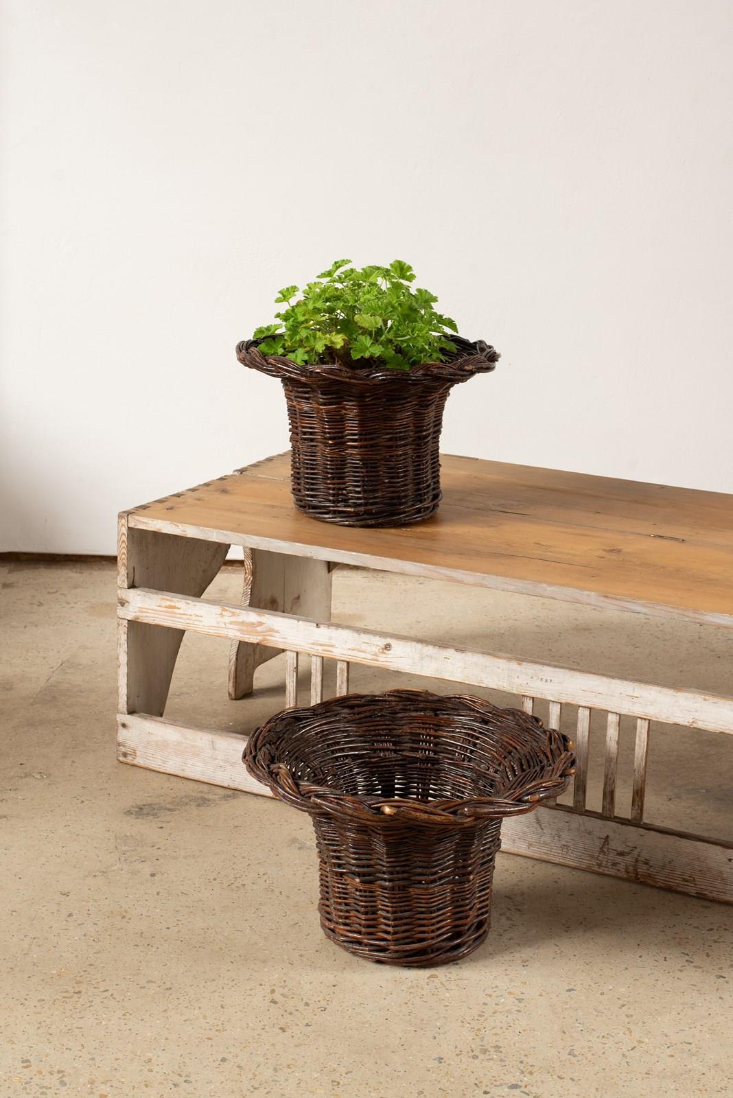 We have two of these vintage woven cane baskets, shaped like top hats.  They make wonderful planters, with a tray in the bottom or with a large jar for cut flowers.  They are being sold separately.