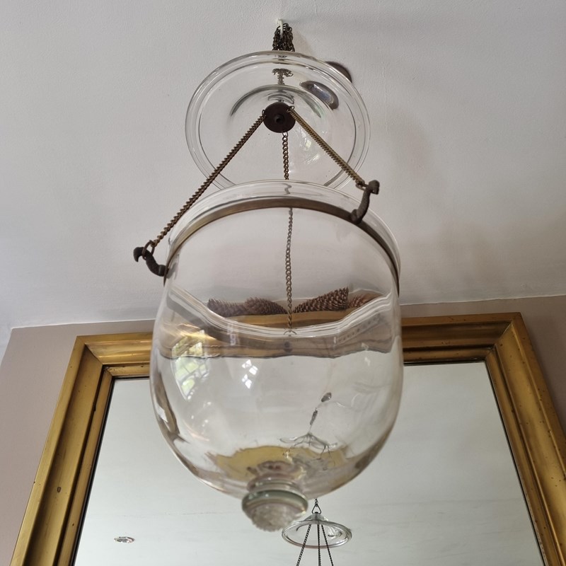Story: These glass lanterns are known in India as Handis or Hundis, taking their name from traditional cooking vessels. First produced in Europe and exported to India in the 19th century, they were a popular lighting choice for palaces and manor homes. The lamps were designed with a glass lid to trap soot from the candles or oil burners inside, preventing damage to the ceilings.