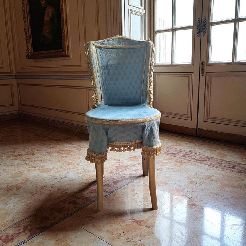 Story: Discovered in a Sussex antique shop, this piece beckons with its shabby chic disguise. We haven't dared to lift the cover and reveal the chair hidden beneath. Will you be the one to unveil its potential – and perhaps a rare find? Personally, we'd leave it just the way it is.