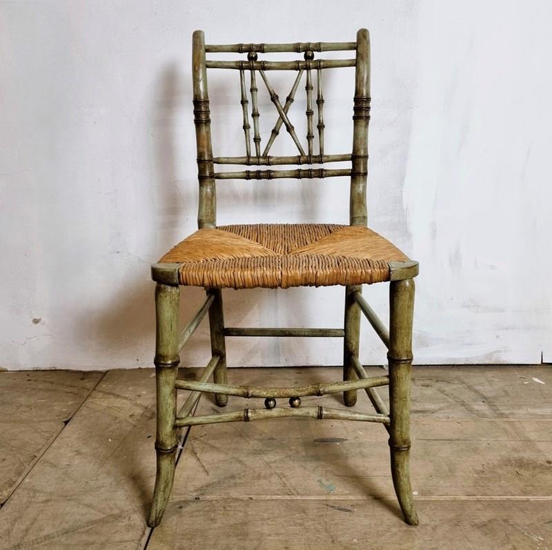 Story: Prized for their light, informal elegance, Regency faux bamboo chairs were a fashionable choice in Britain from approximately 1800. Their popularity stemmed from the Prince Regent's fondness for Asian styles and John Nash's design for Brighton's Royal Pavilion. These distinctive chairs were crafted from wood, skilfully turned and painted to mimic real bamboo.