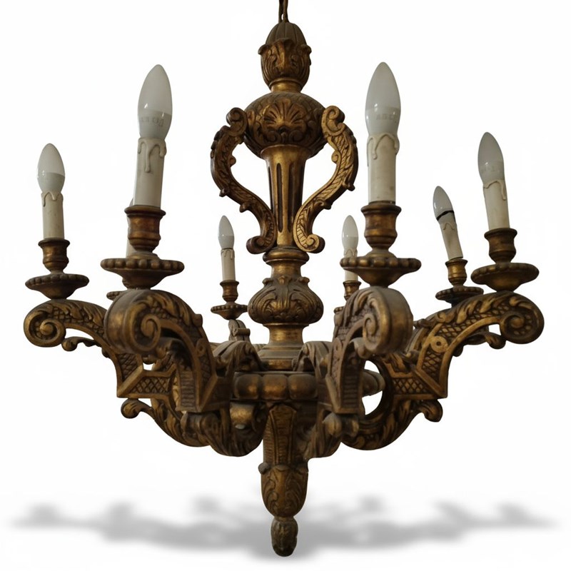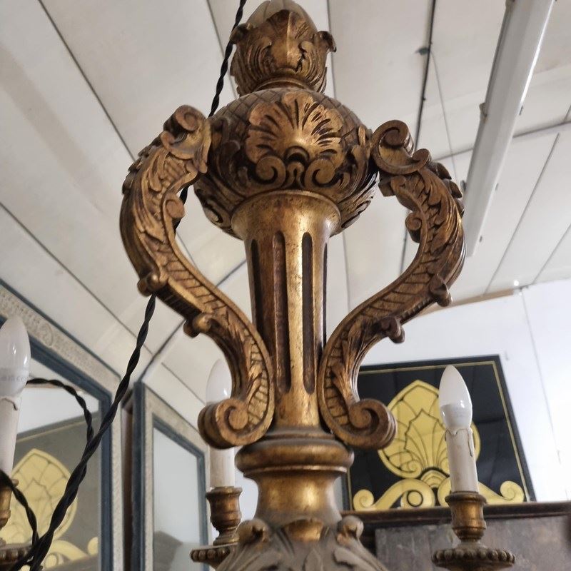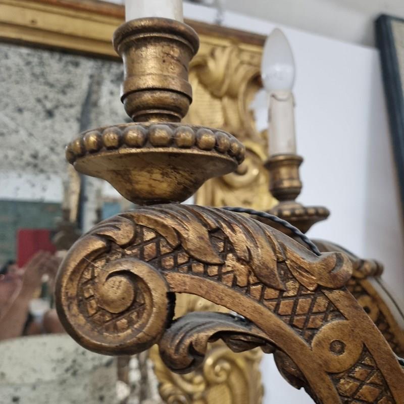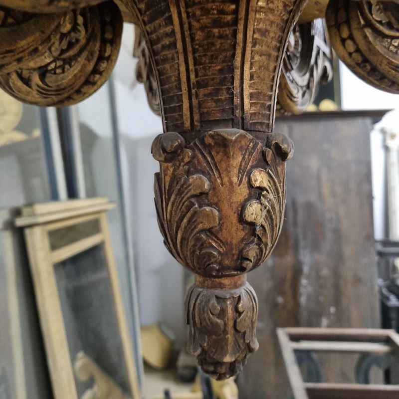 Large 19Th Century Carved Giltwood Italian Chandelier