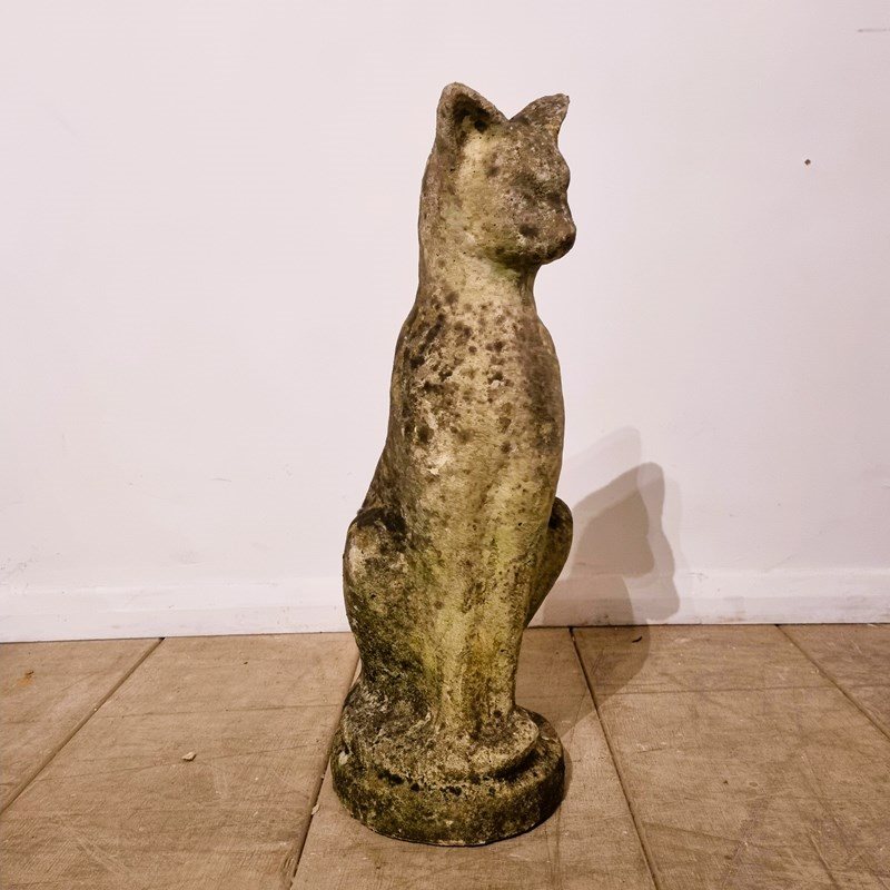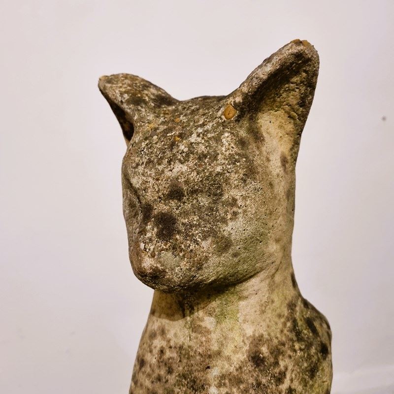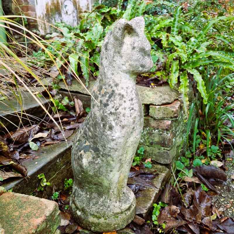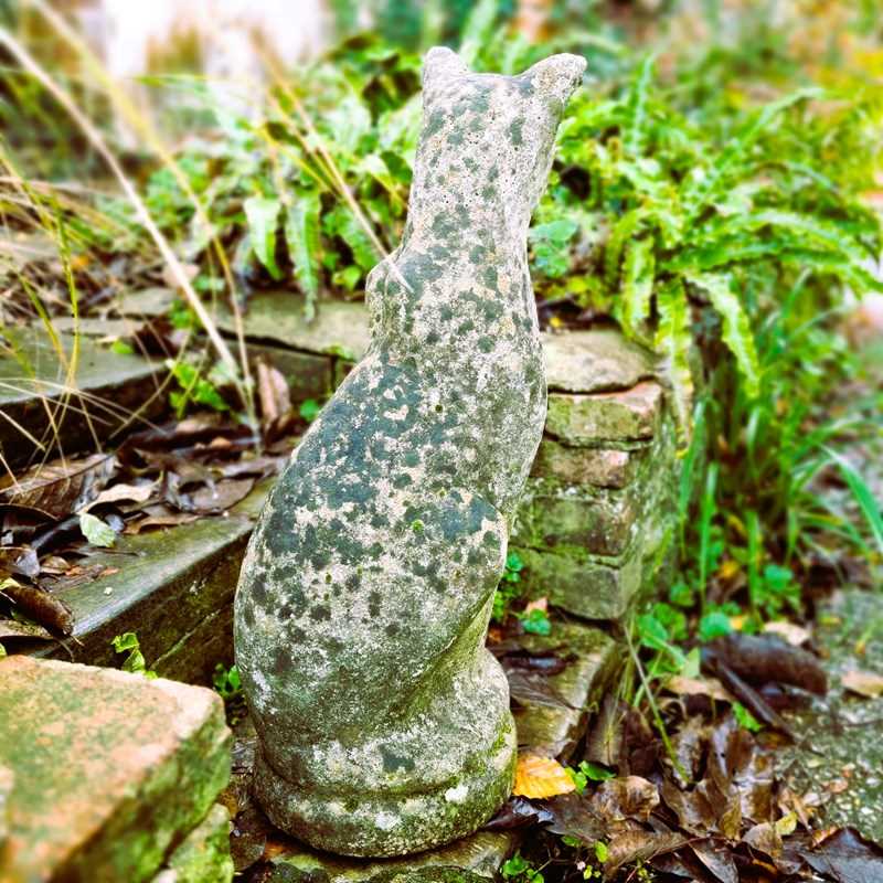 Style: An enchanting cat sculpture, gracefully poised and imbued with a truly magnificent weathered patina. Its slender, elegant silhouette rests on a subtle round base, creating a distinguished profile. Crafted from sturdy composite, this delightful statue is designed to bring a touch of charm to your garden or to offer a welcoming presence inside your home, perhaps in a hallway or sunroom.