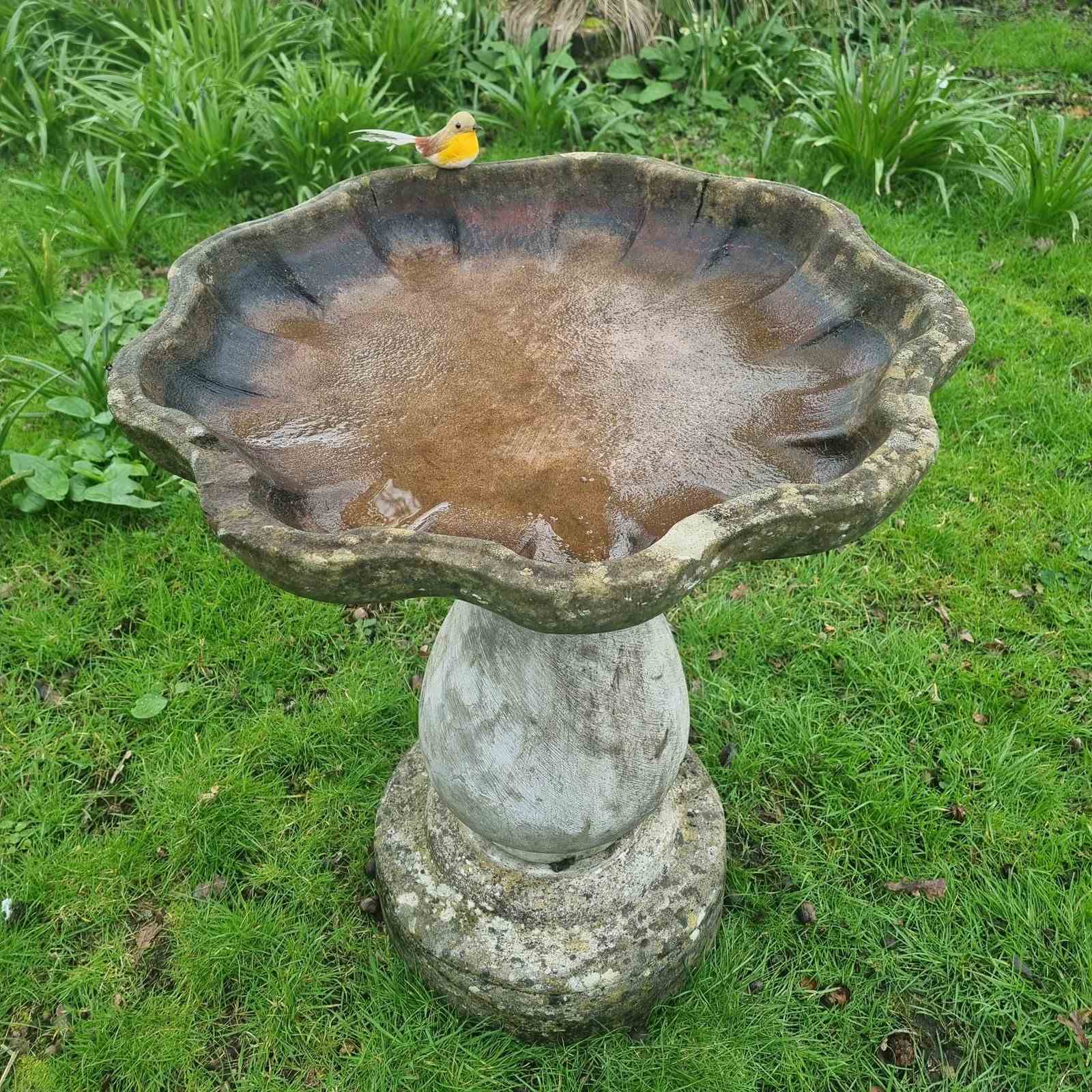 Story: Bird baths began as natural puddles and shallow rock depressions, later becoming decorative garden elements in Roman times. It wasn’t until the 1830's that the first purpose‑made bird baths were crafted.