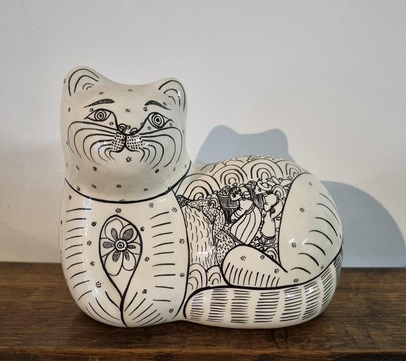 Story: Defined by bold glazing and sculptural forms, Mexican folk cat pottery became a mid-century staple for collectors. The artisanal nature of the work - hand-shaping and meticulous hand-painting, ensures that every cat hold its own distinct personality.