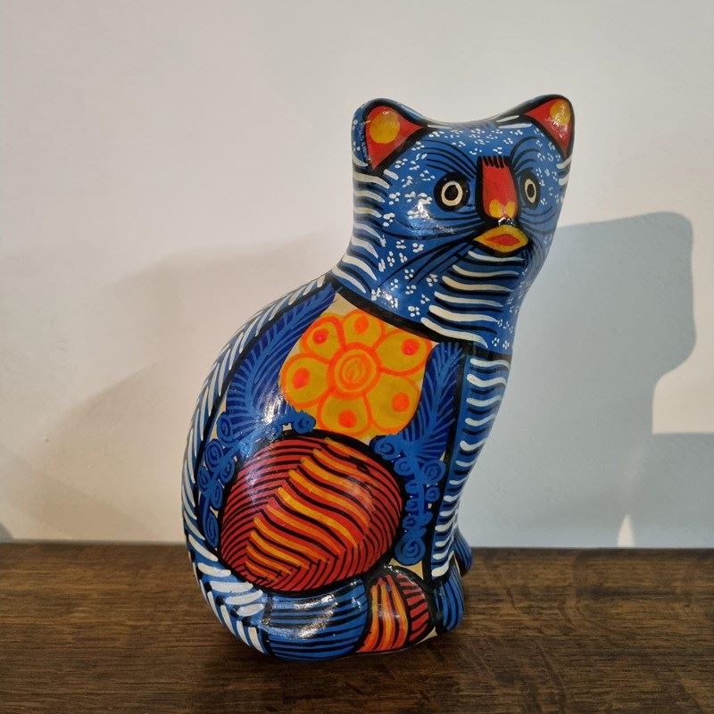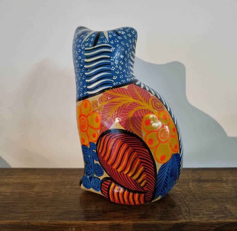 Story: Defined by bold glazing and sculptural forms, Mexican folk cat pottery became a mid-century staple for collectors. The artisanal nature of the work - hand-shaping and meticulous hand-painting, ensures that every cat hold its own distinct personality.
