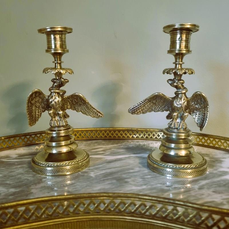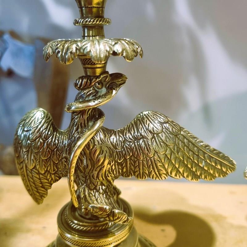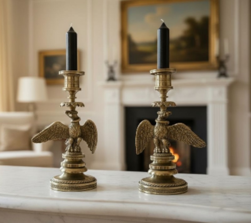 Story: With roots in ancient times where eagles symbolised power and divine messengers, brass candle holders featuring these motifs later developed distinct styles in 19th-century America and Europe, frequently incorporating patriotic or religious symbolism.