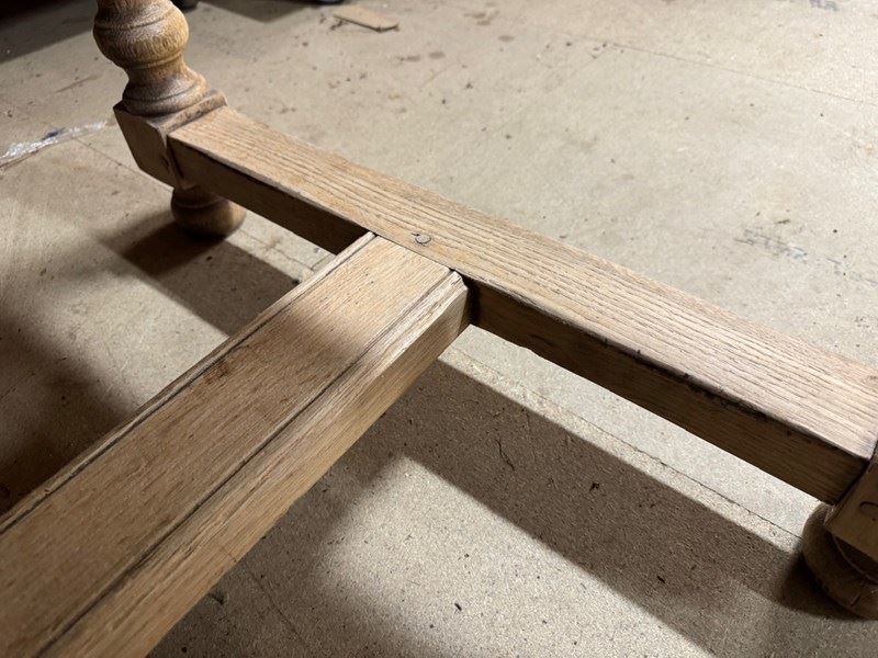 A good quality Solid Oak Farmhouse Dining Table dating to the early 1900s. Of good quality construction with pegged joints. We have lightly bleached it for a lighter look. Will comfortably seat 8 people and in excellent original condition for the home.