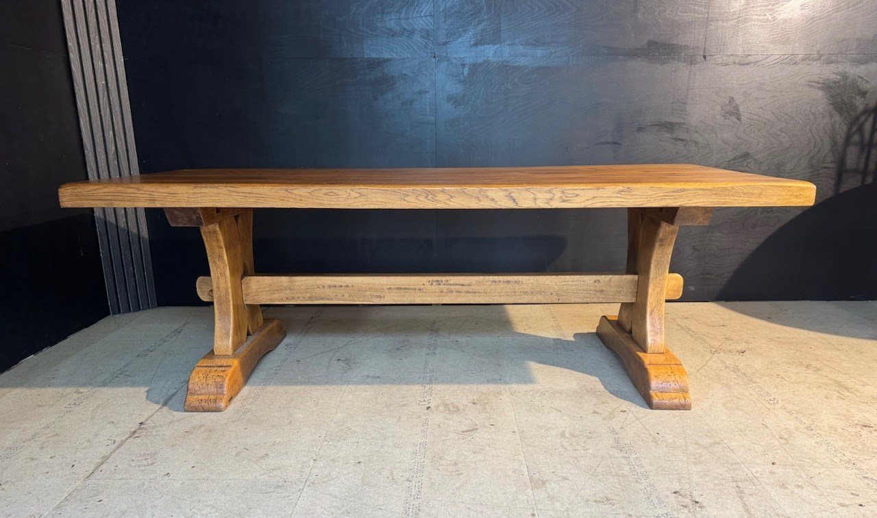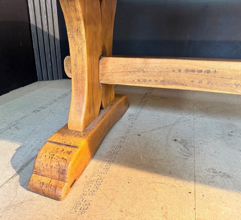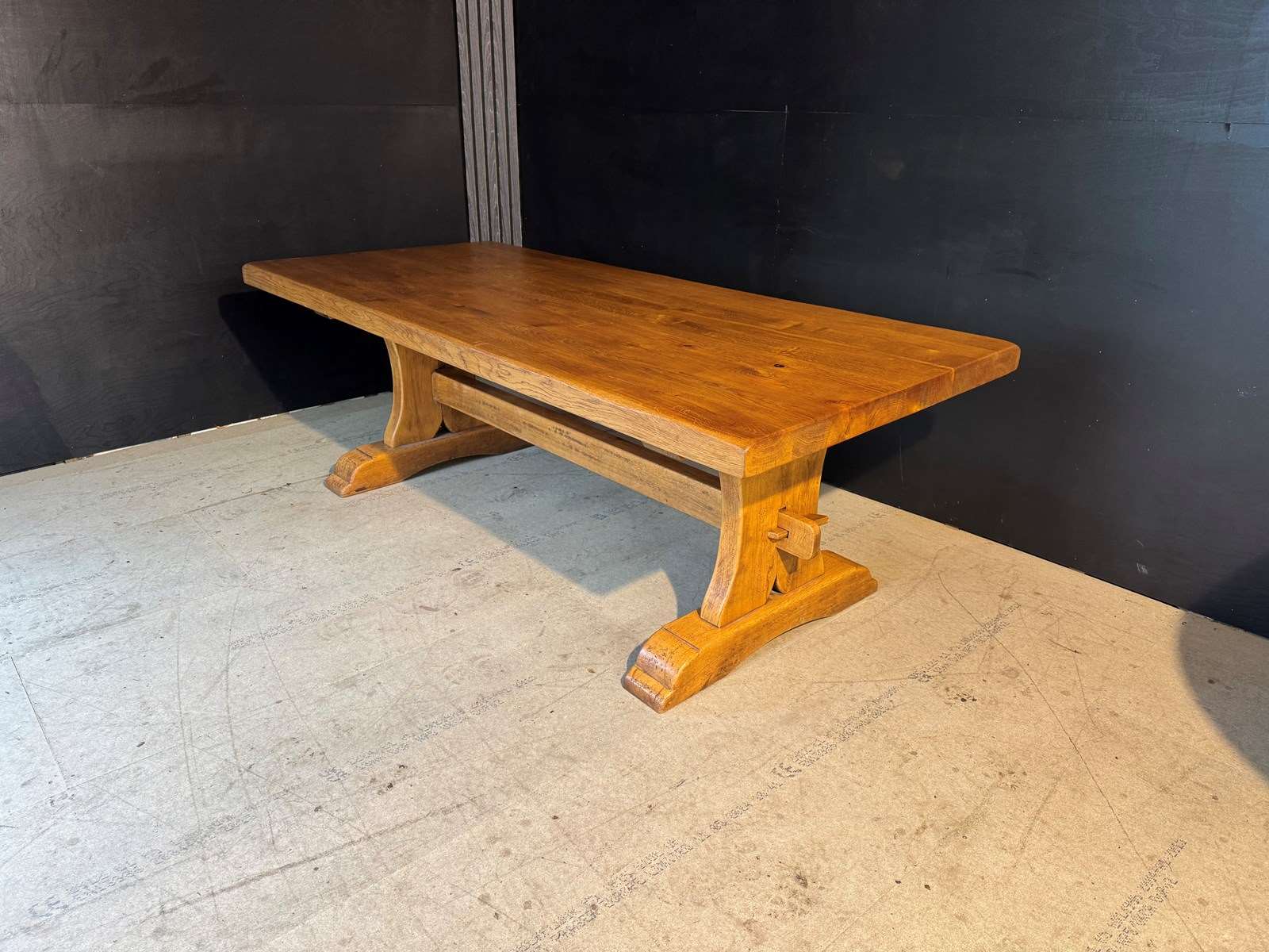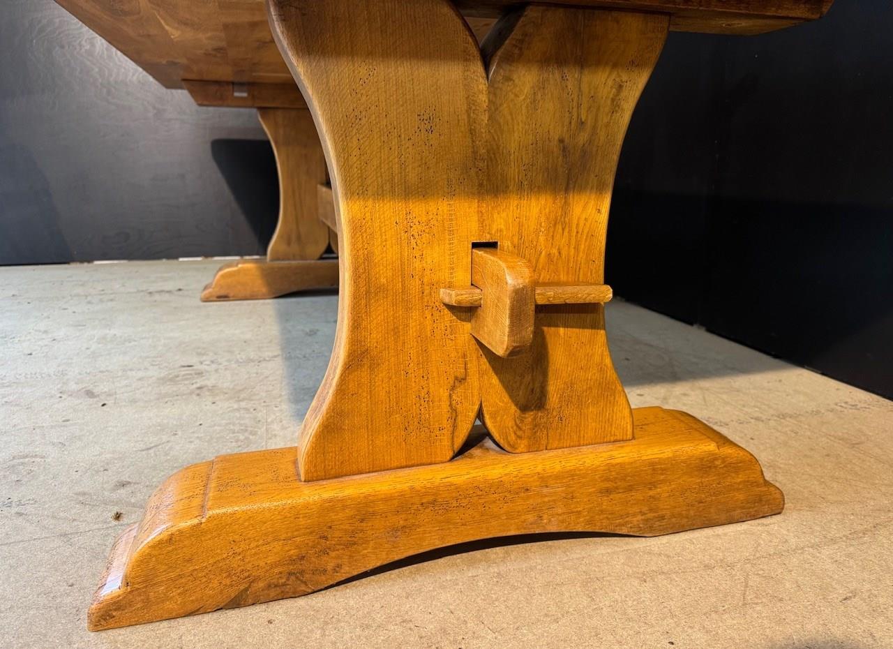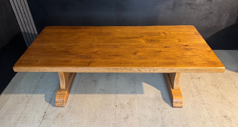 A hard to find deeper (100cm) solid Oak Farmhouse Dining Table. French in origin and dating to the 1920s, of excellent quality construction and completely comes apart for easy access into the home. Nice warm Oak colour and in overall excellent condition.