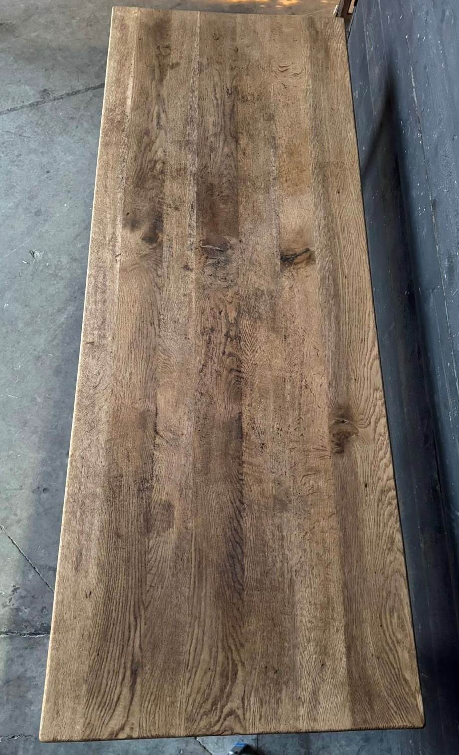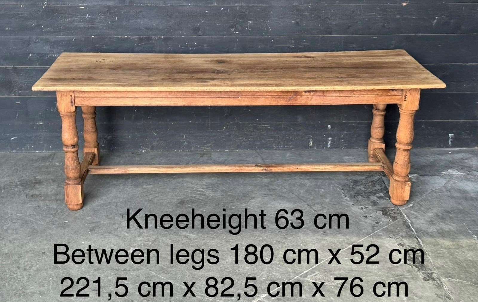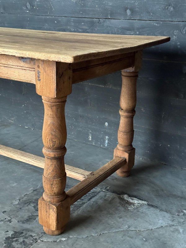 A good solid Oak Farmhouse Dining Table dating to the early 1900s. French in origin and of good quality construction with peg joints. We have bleached it for a lighter look and to bring out the beauty of the Oak. In overall excellent original condition for the home.