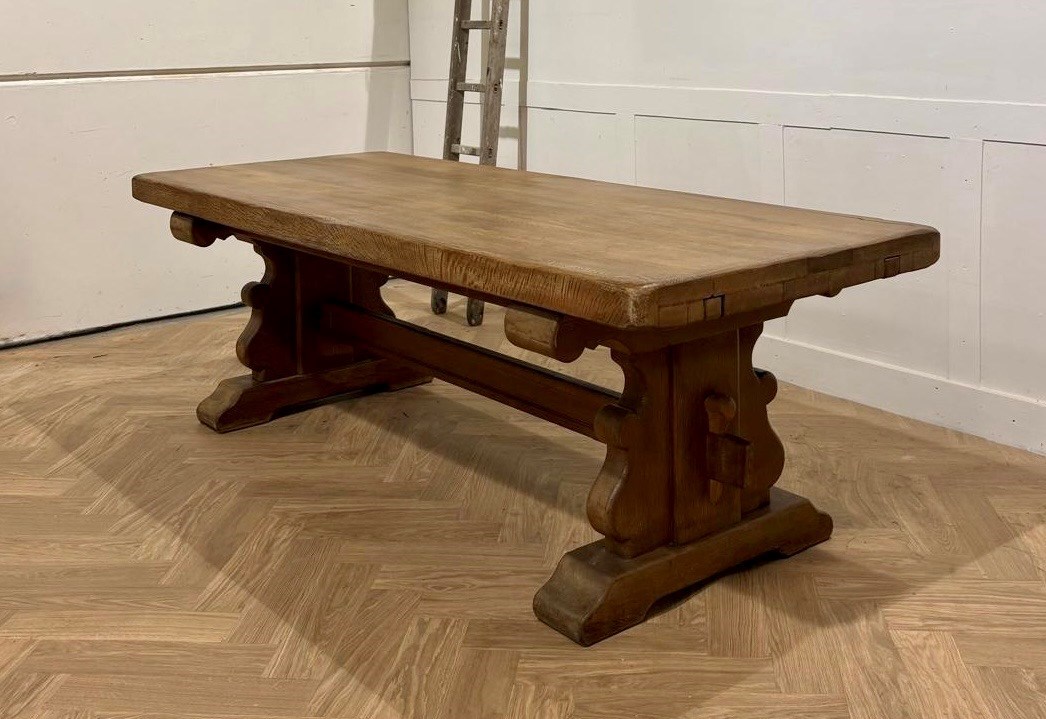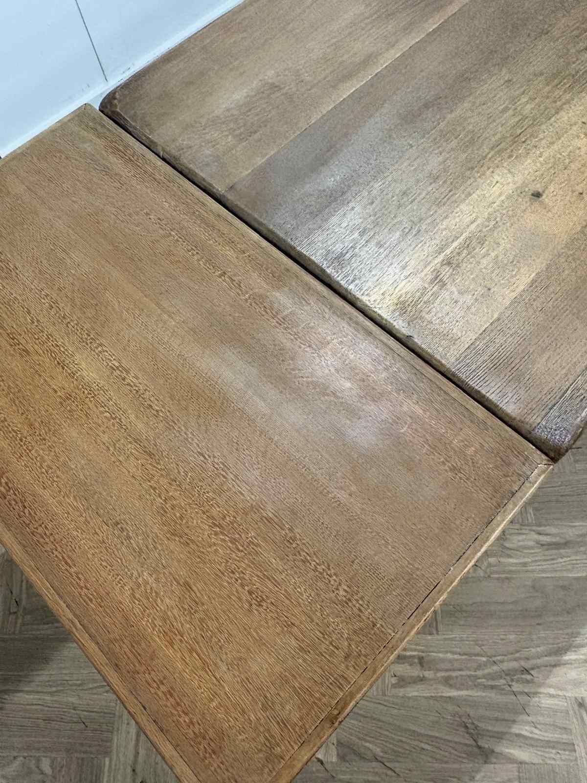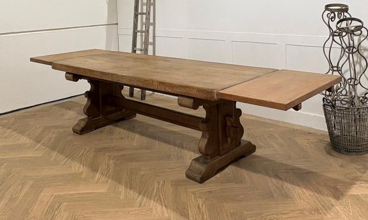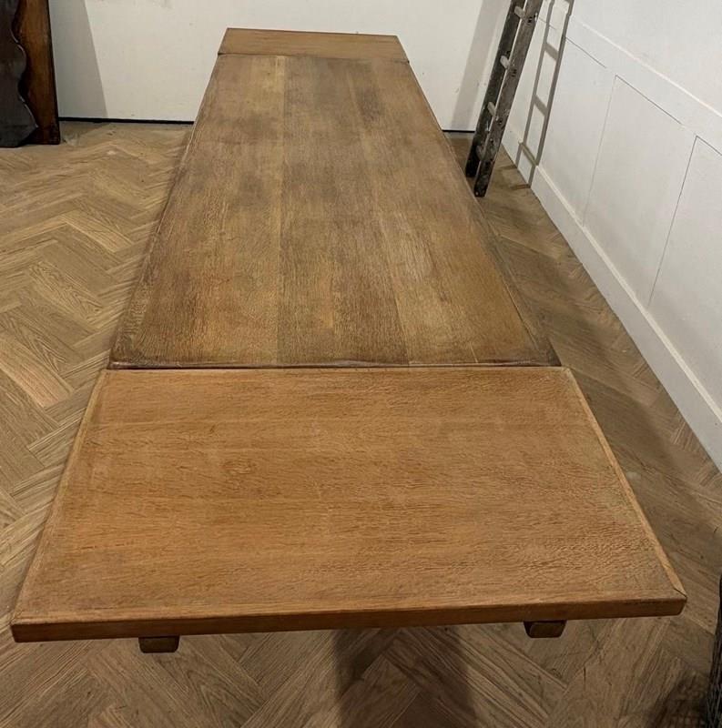 A very good quality French Oak Farmhouse Dining Table, having 2 extension leaves each end. Dating to the early 1900s and of excellent quality construction. Runners pull out from either end to support the leaves. It comes completely apart for easy access into the home and in excellent overall condition.