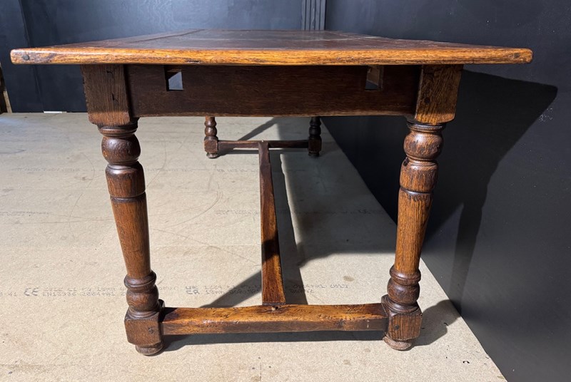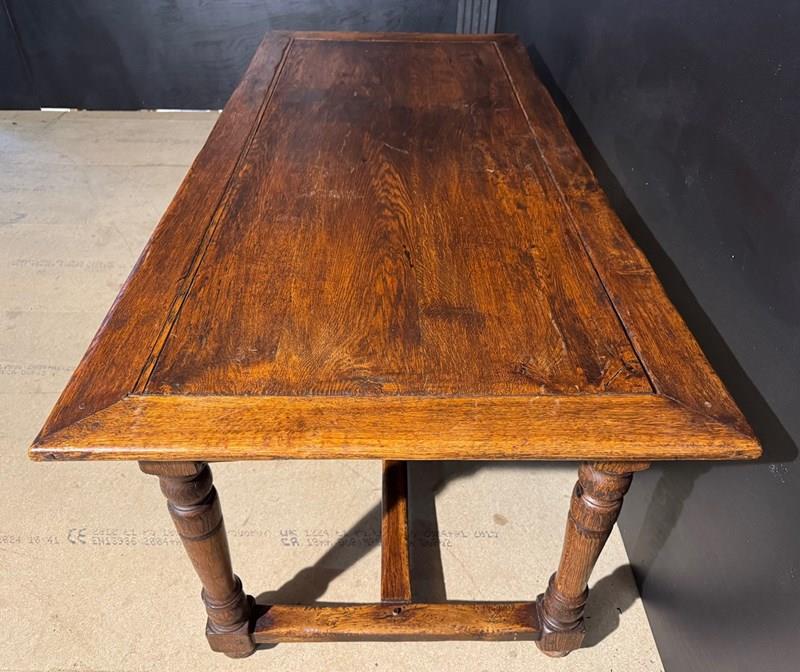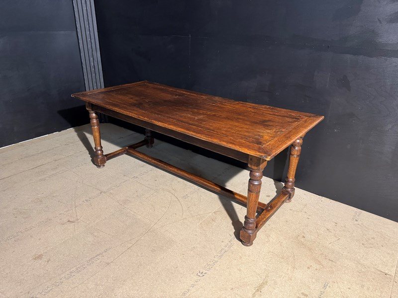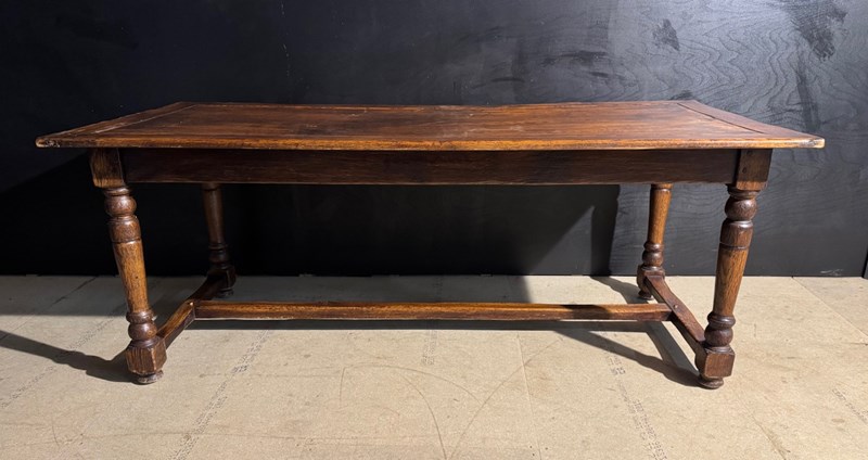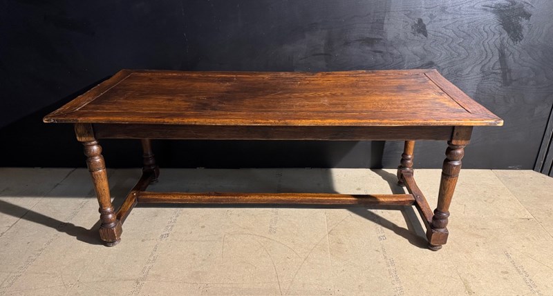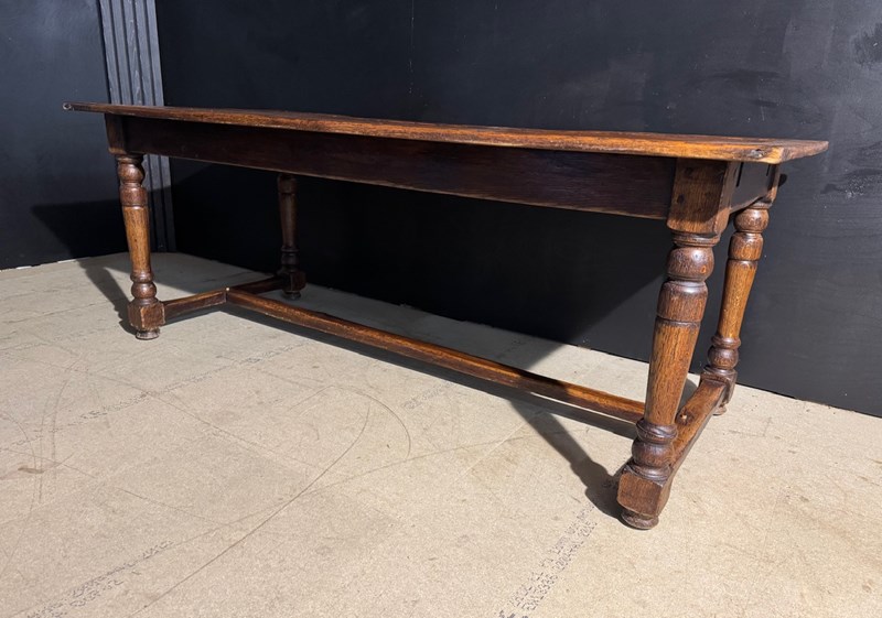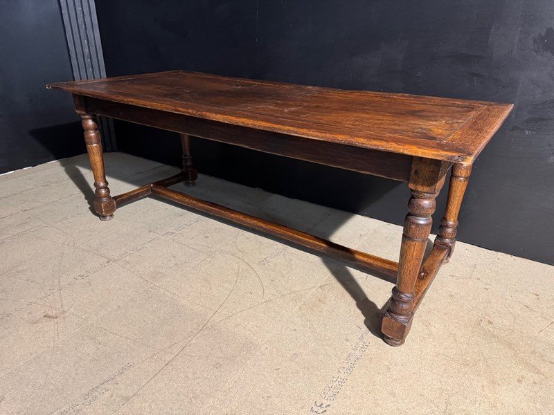 A late 19th Century Solid Oak Farmhouse Dining Table having a lovely original warm colour and patina. Originating from France and in overall excellent original condition for the home. Length 195.5 cm Depth 90 cm Height 75.5 cm Between Legs 162 cm Knee Clearance 62 cm