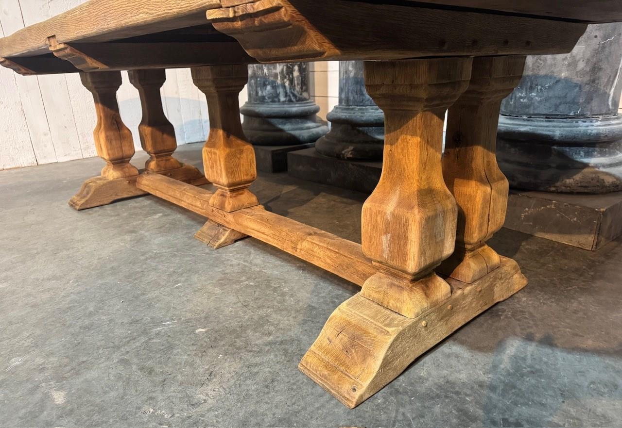 A lovely French Solid Oak Farmhouse Table 3 Meters in Length and a very good Depth at 100cm. Dating to the early 1900s and of good quality construction. We have bleached it for a lighter look and in excellent original condition. The top comes off for easy access into the home.