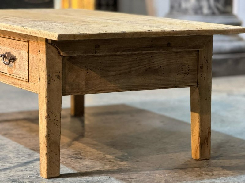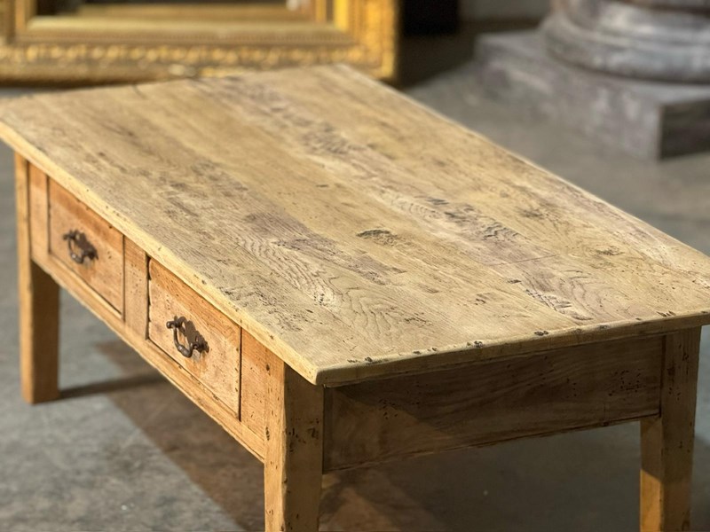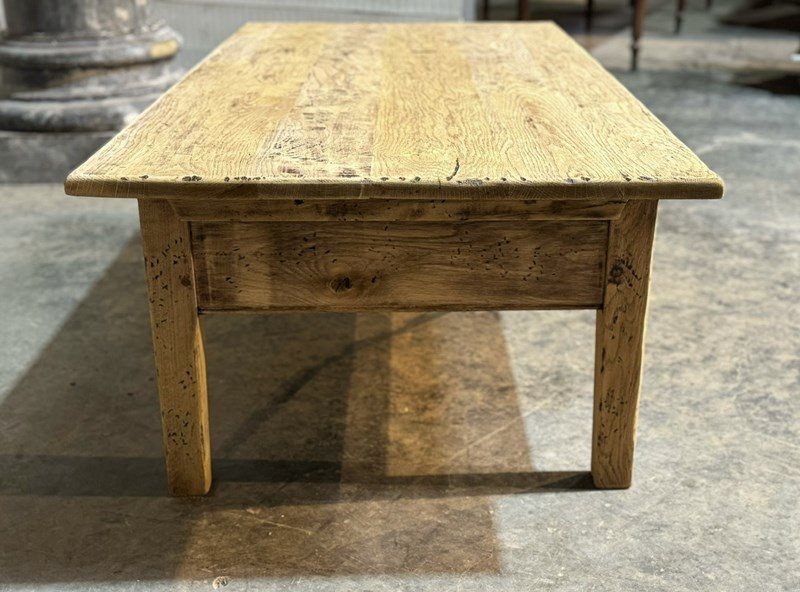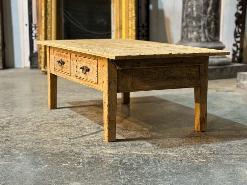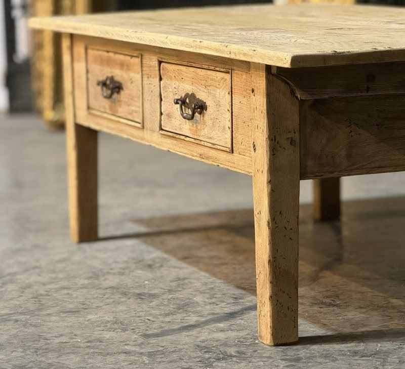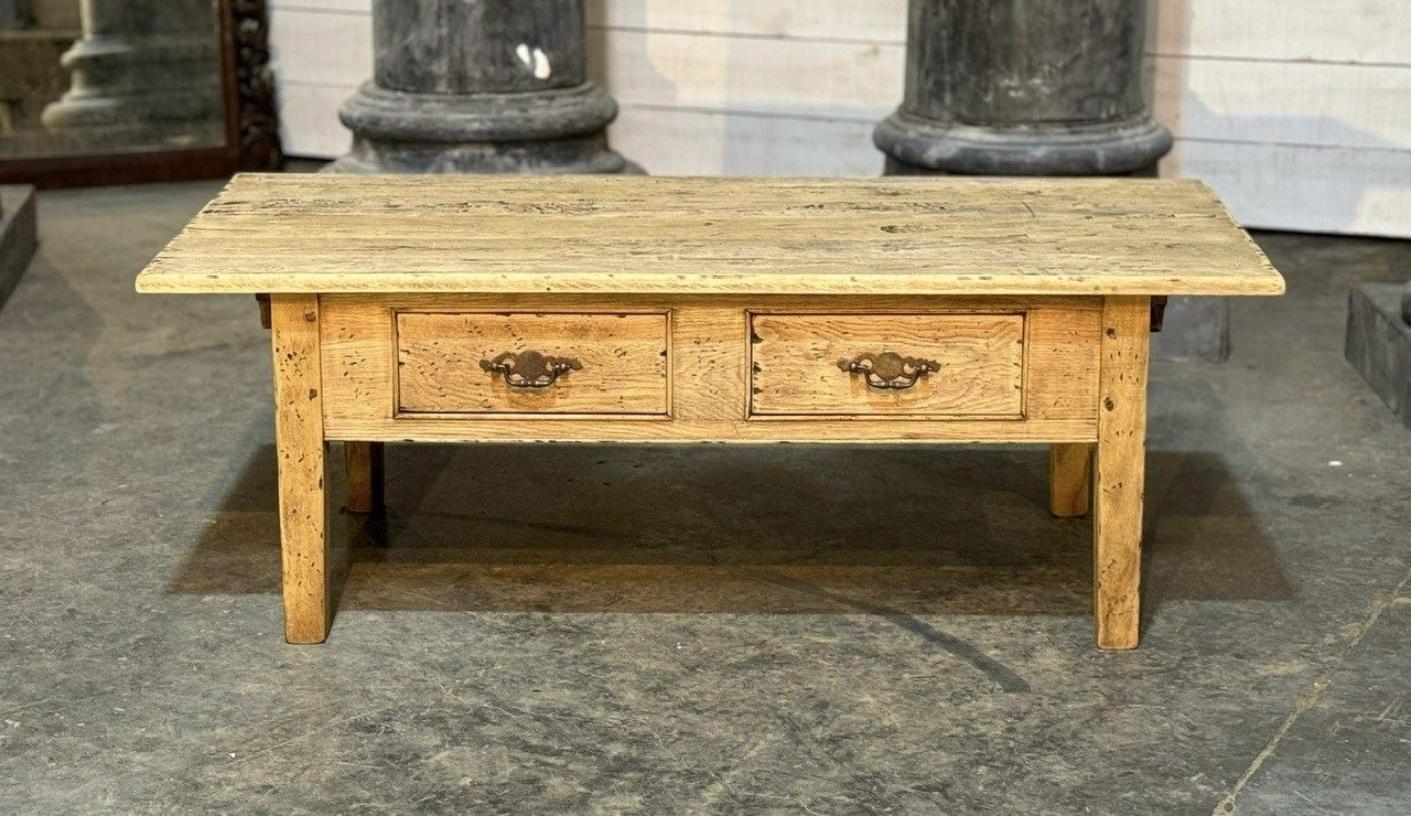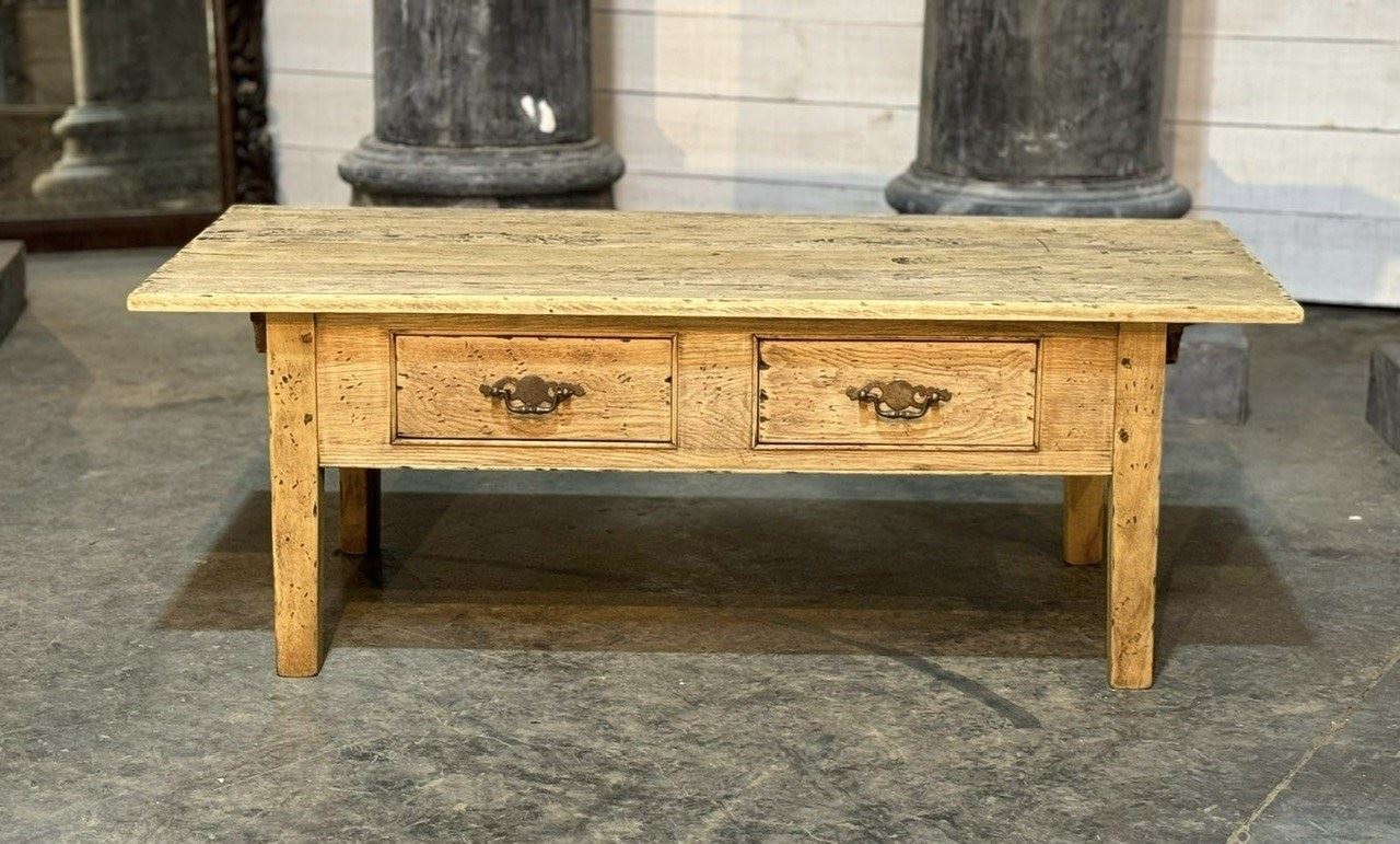 A good quality larger sized French Bleached Oak Farmhouse Coffee Table, dating to the early 1900s and of good quality construction. Having 2 drawer to the front and we have bleached it first a lighter look and to bring out the beauty of the oak.